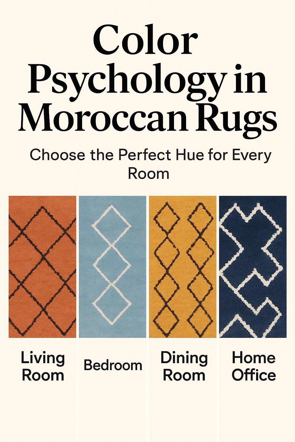 Discover how Moroccan rug colors influence mood and energy. From calming blues in bedrooms to vibrant terracottas in living rooms, choose the perfect hue for every space.