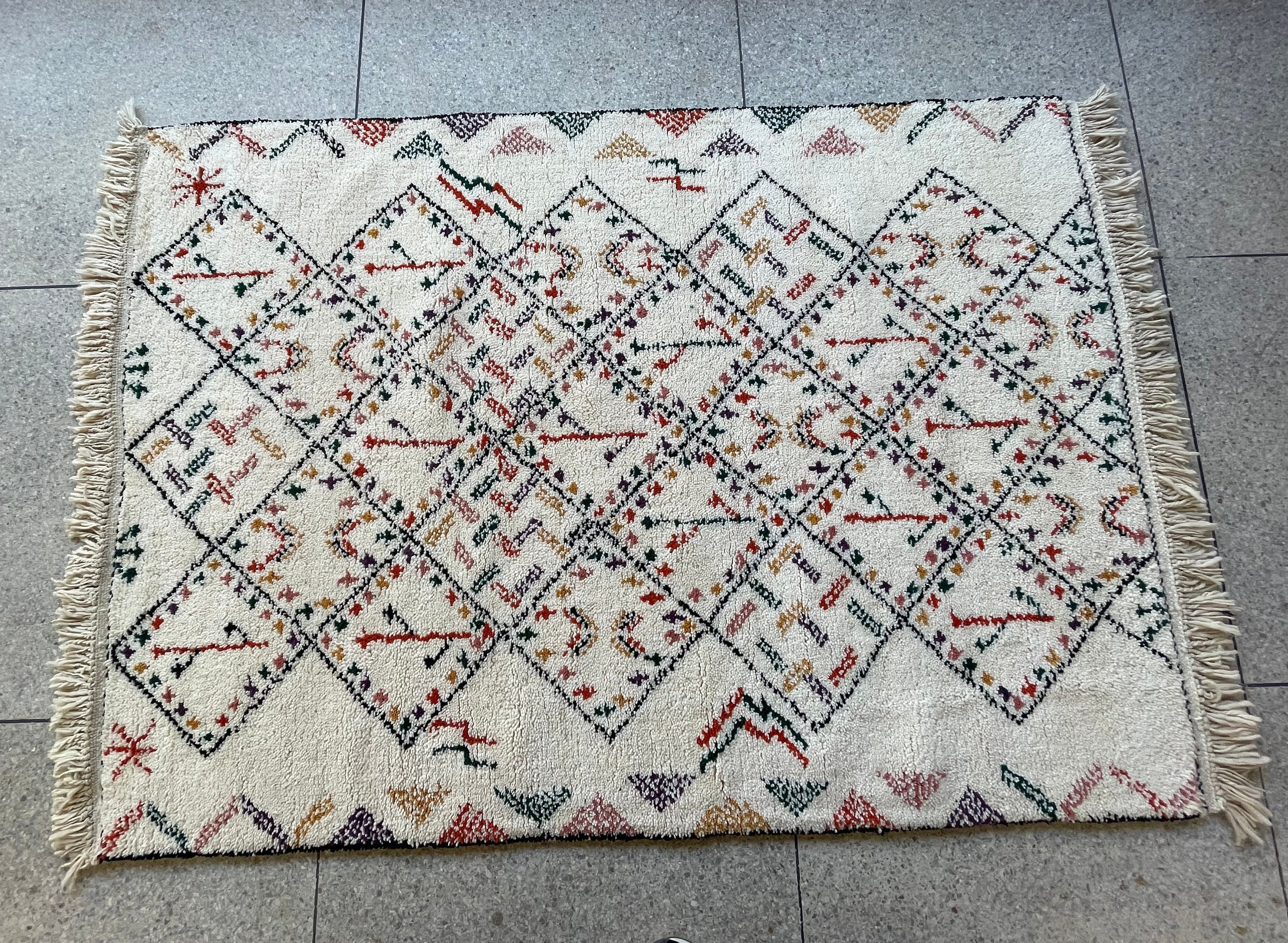 Elevate your space with our stunning BENI OURAIN RUG, a beautifully crafted artisan made wool rug that adds warmth and character to any room. Featuring a unique geometric design, this colorful Berber carpet effortlessly complements modern interiors. Handwoven with care, each rug showcases the rich heritage of Moroccan artistry, making it a perfect statement piece for your home. Transform your living area with this exquisite area rug that balances tradition and contemporary style. Add it to your collection today!