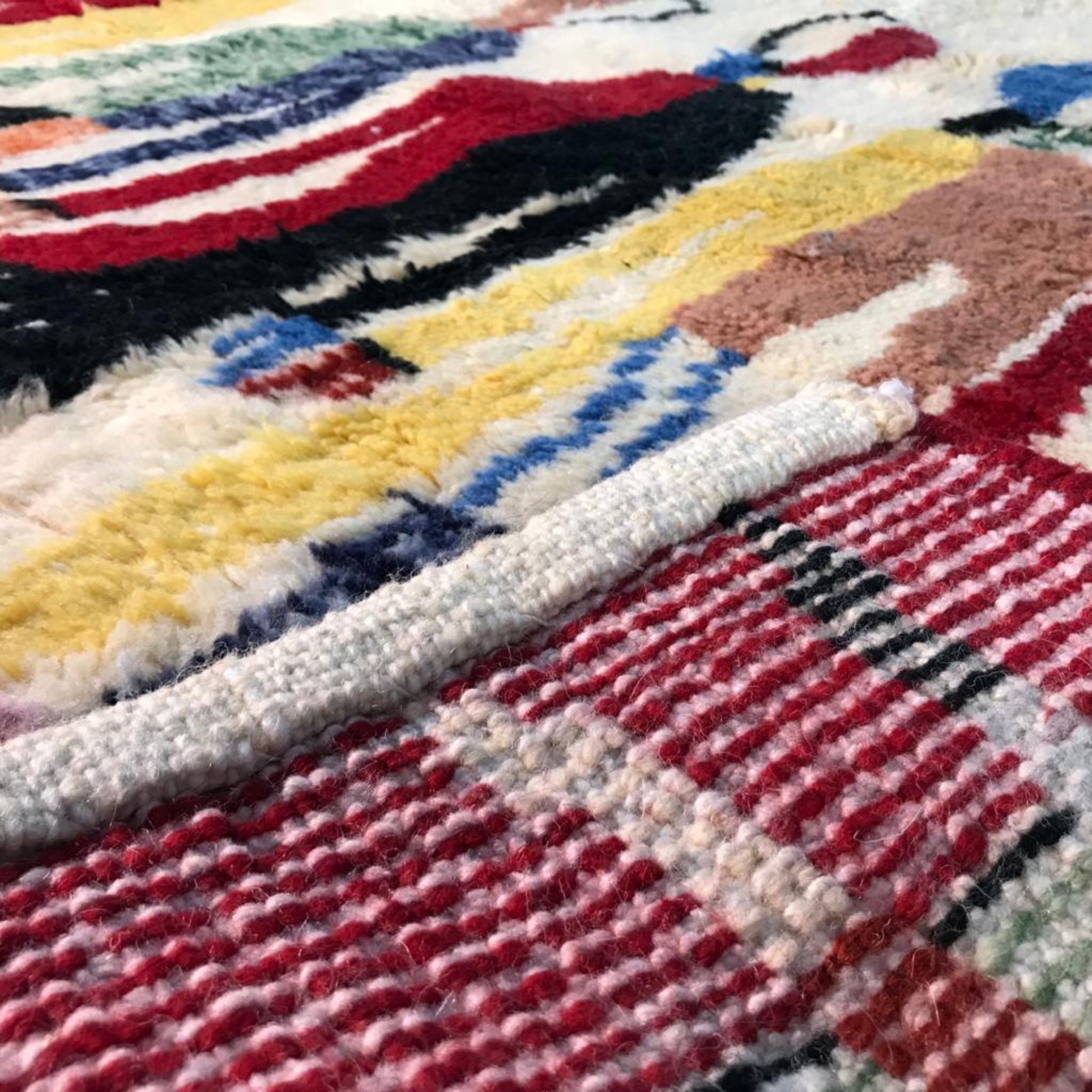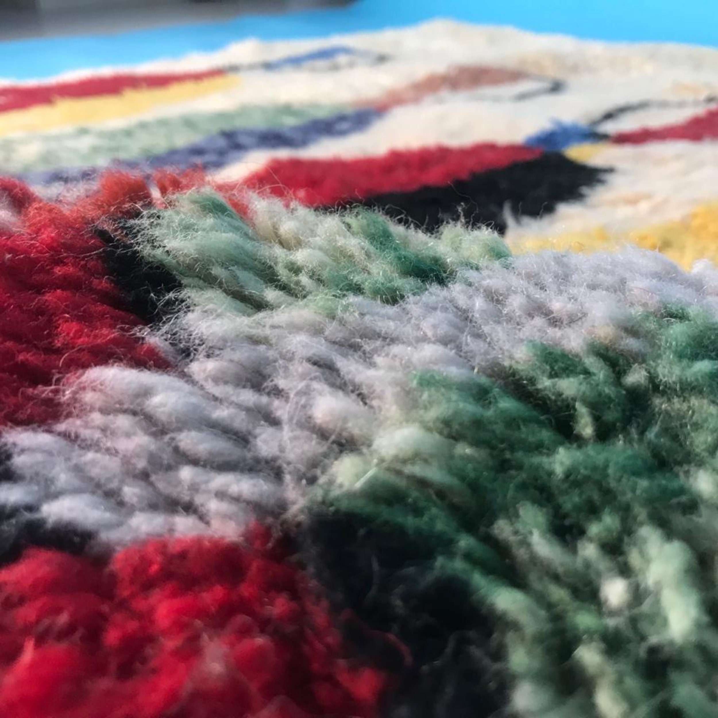 This fabulous Moroccan Rug that will give your room both a cozy feeling and stylish is made from 100% Natural sheep wool, It's Very plush and comfy to walk on, actually It's Heaven for your feet.
