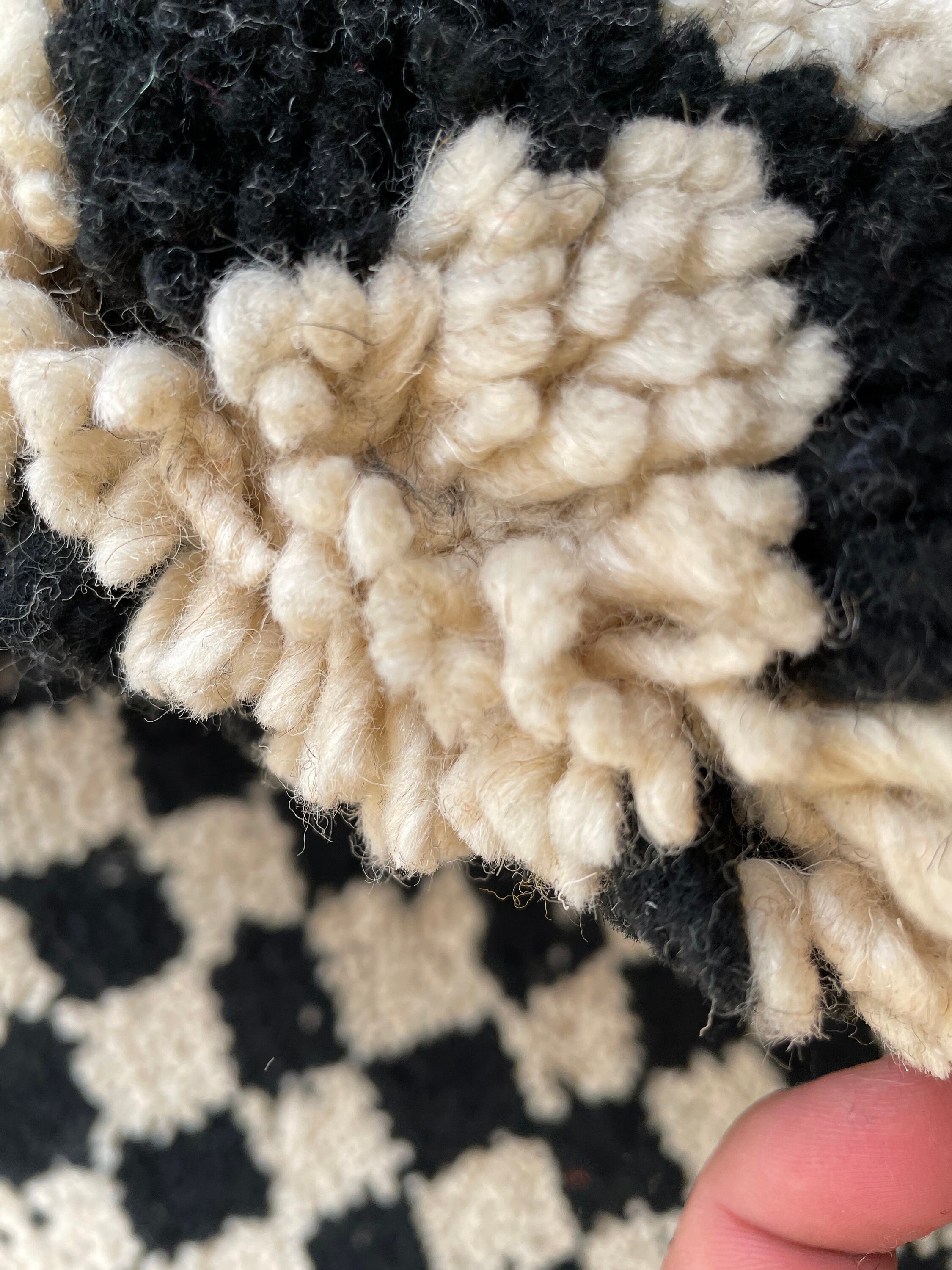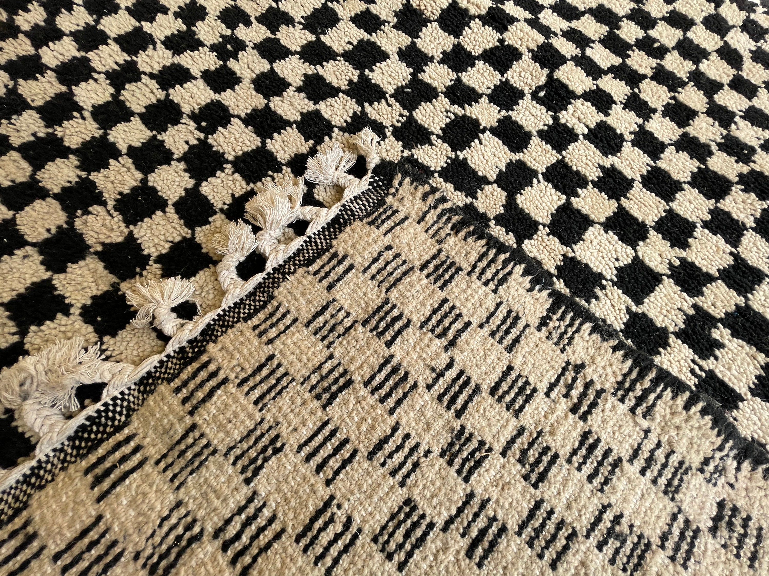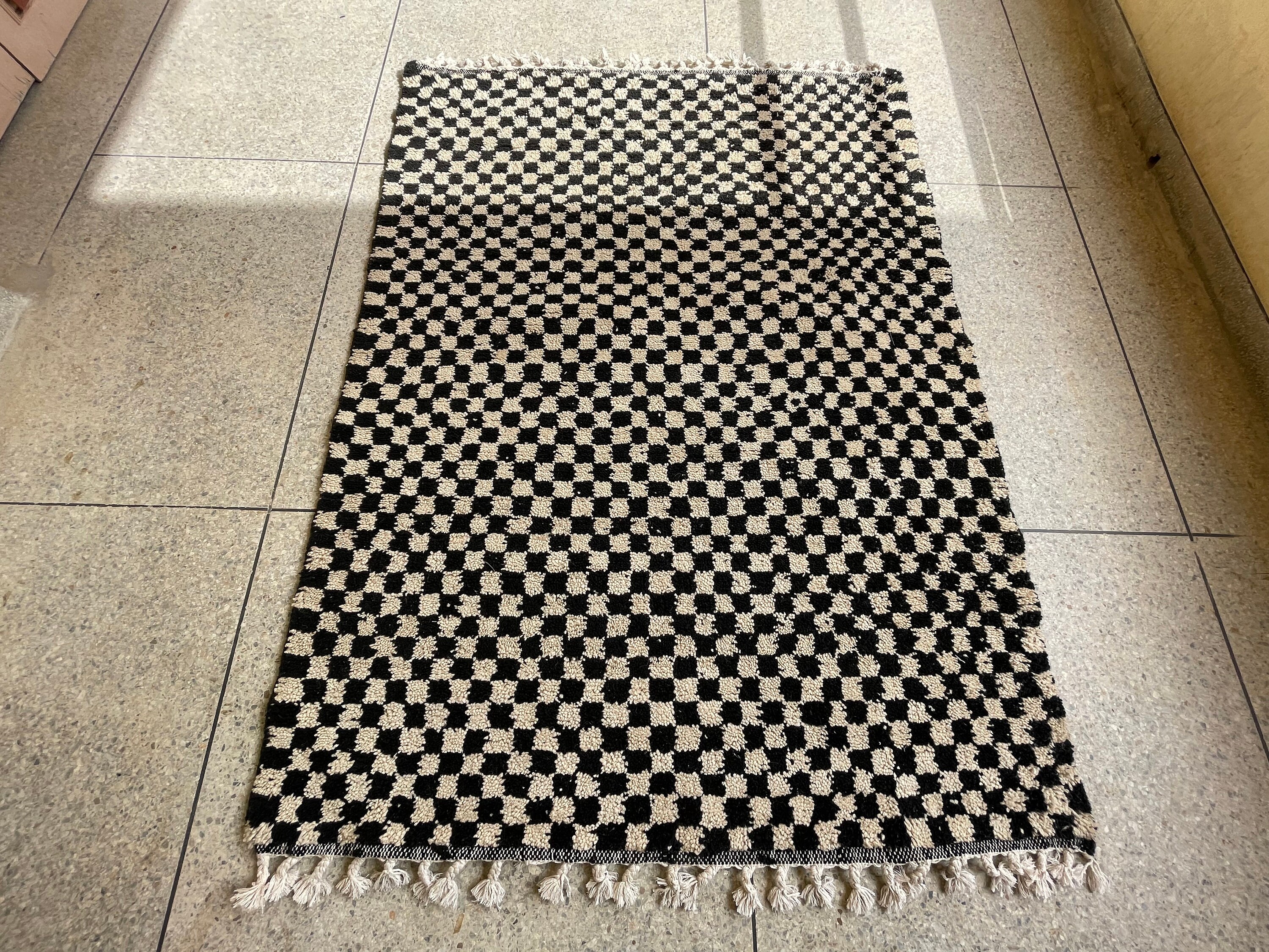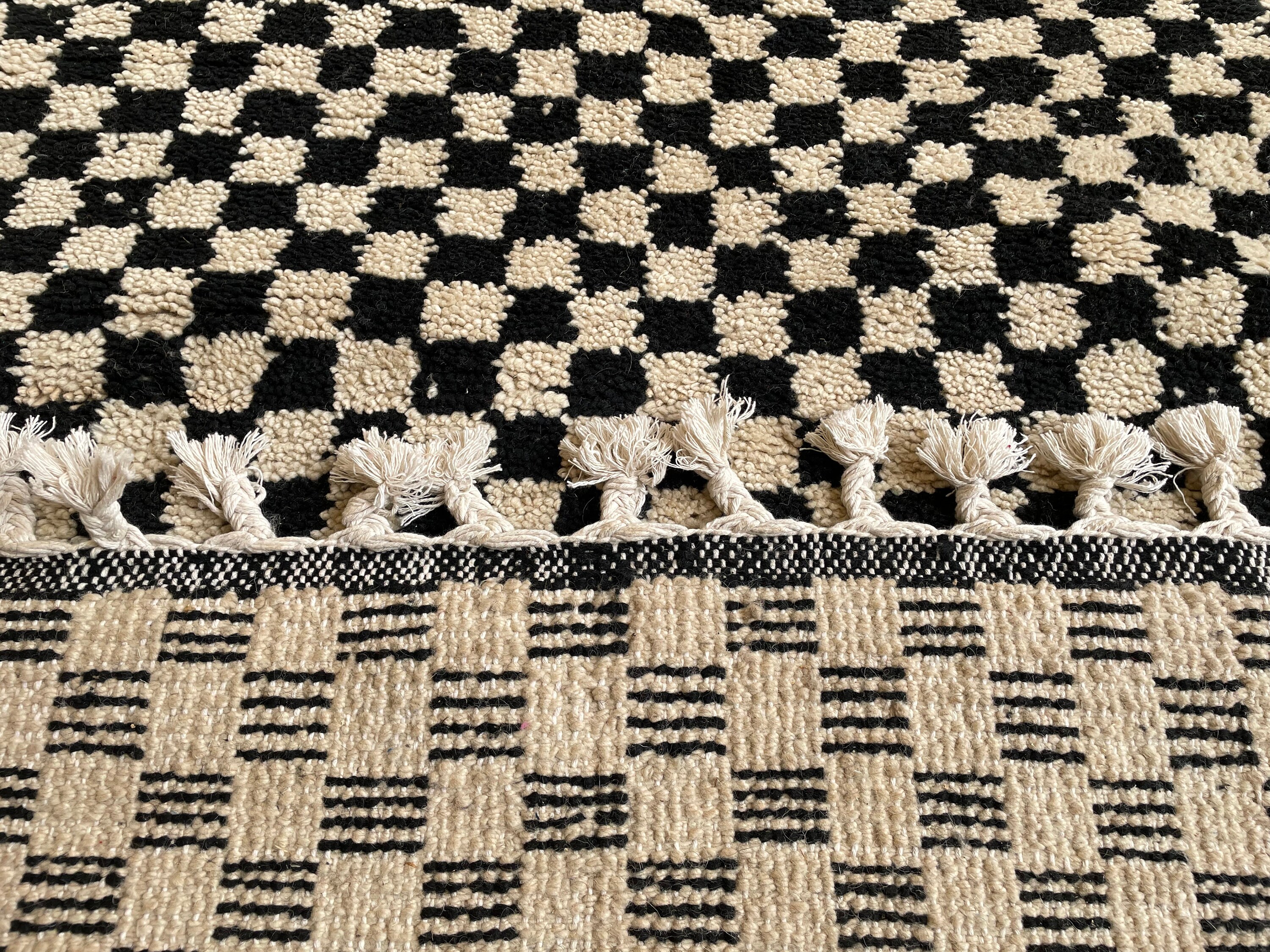 Transform your space with our stunning Beni Ourain Moroccan Rug, a handmade masterpiece that combines traditional craftsmanship with a modern twist. This exquisite wool carpet features a custom checkered design in striking black and white, perfect for adding a chic touch to any room. Durable and soft, our modern area rug is ideal for both living rooms and bedrooms. Elevate your home decor with this unique Berber area rug; each piece is a testament to artisanal quality and style. Order yours today!