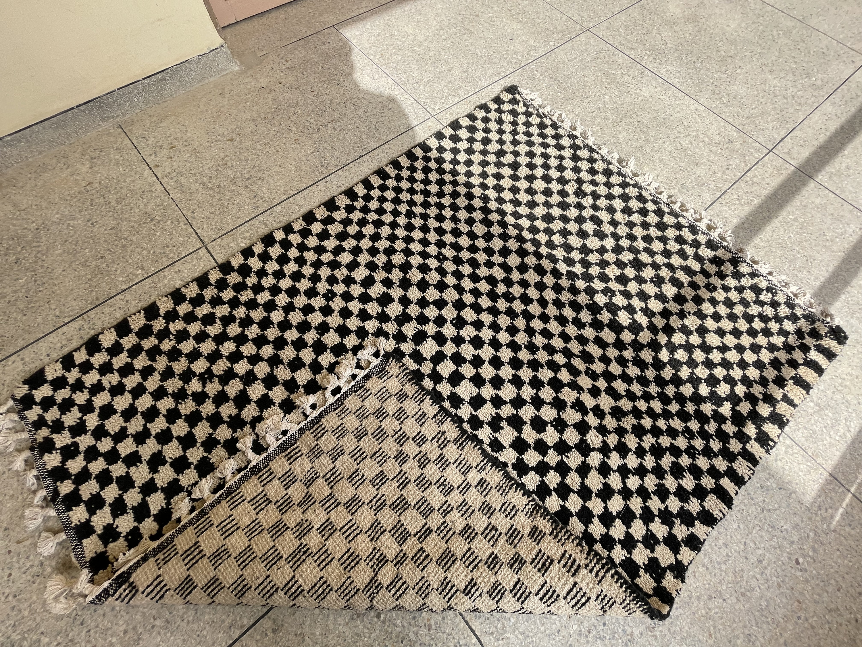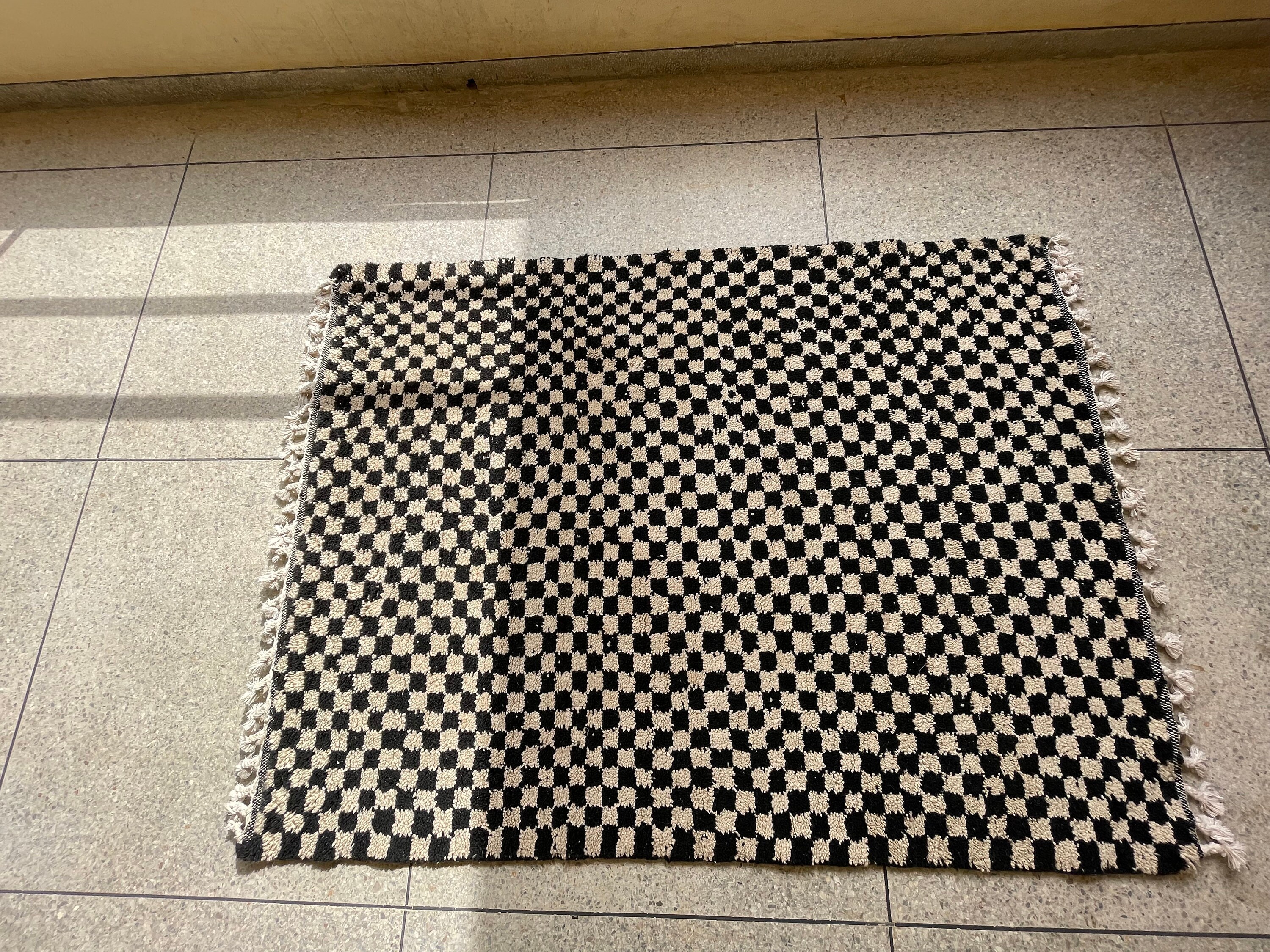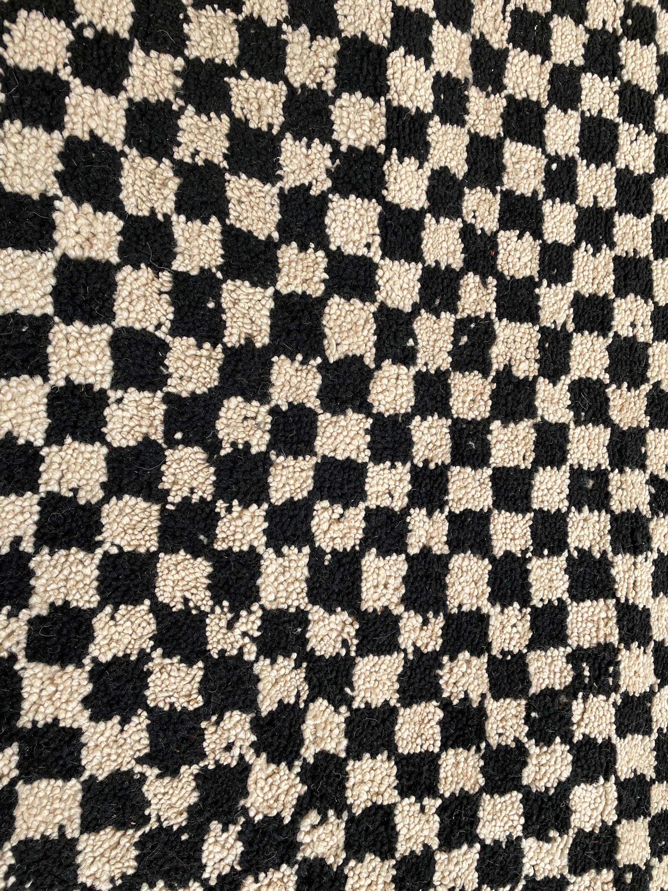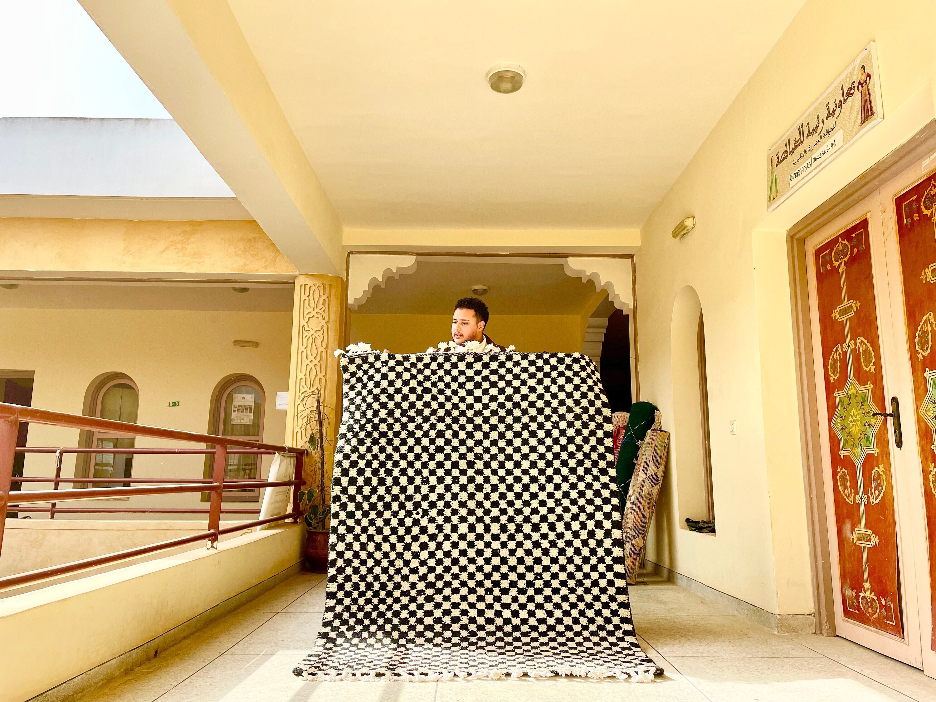 Transform your space with our stunning Beni Ourain Moroccan Rug, a handmade masterpiece that combines traditional craftsmanship with a modern twist. This exquisite wool carpet features a custom checkered design in striking black and white, perfect for adding a chic touch to any room. Durable and soft, our modern area rug is ideal for both living rooms and bedrooms. Elevate your home decor with this unique Berber area rug; each piece is a testament to artisanal quality and style. Order yours today!