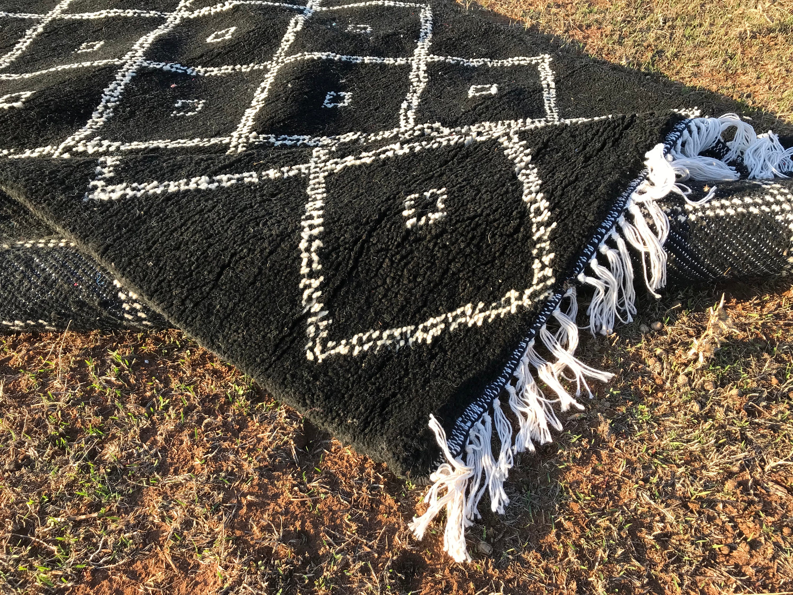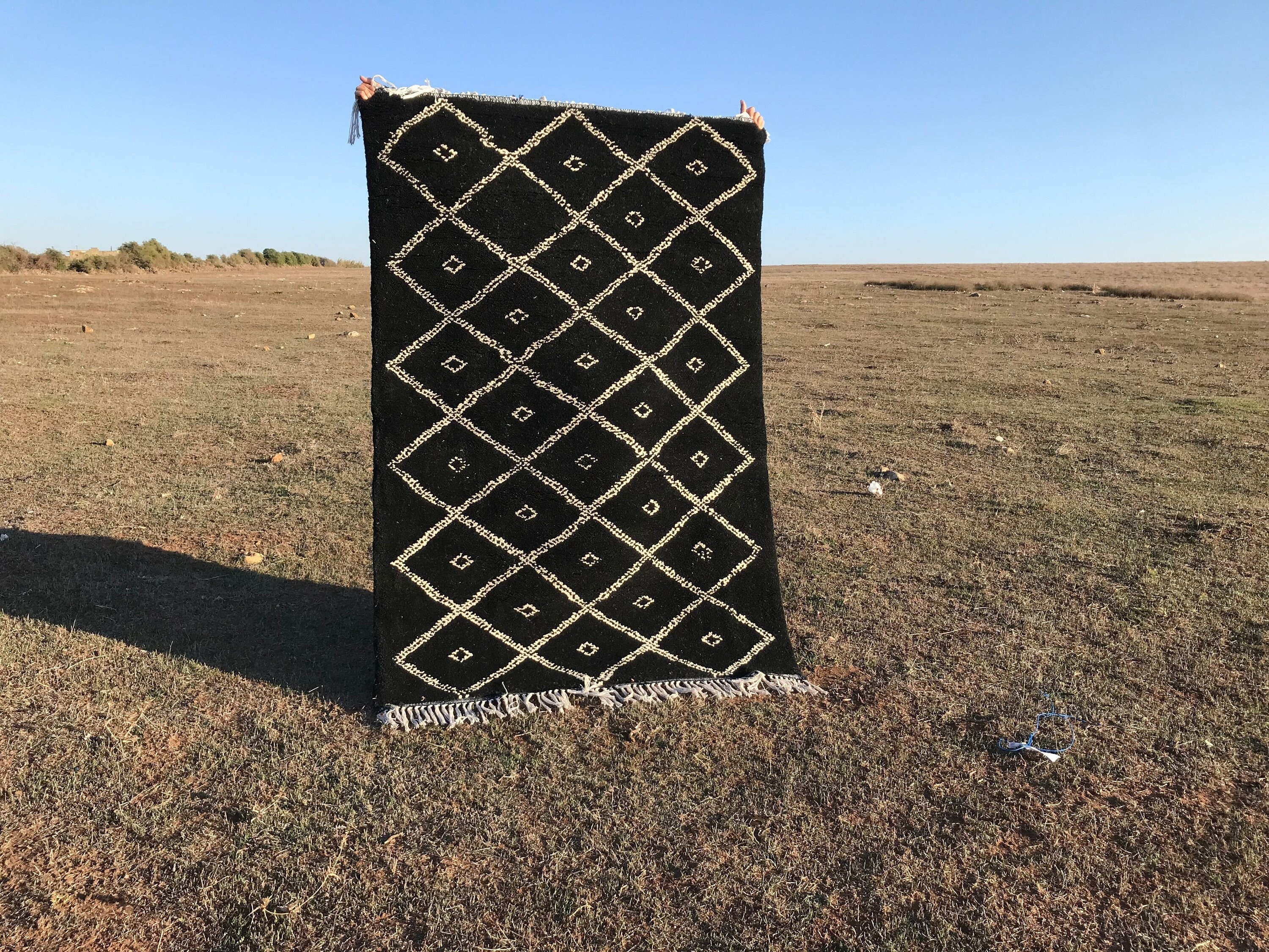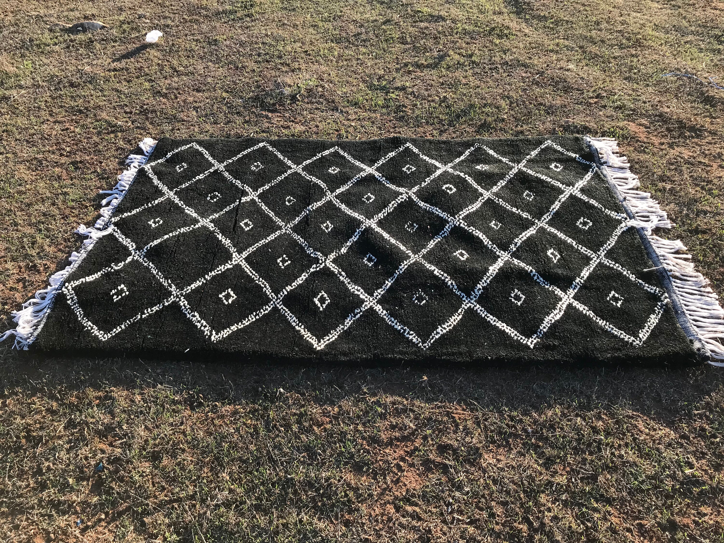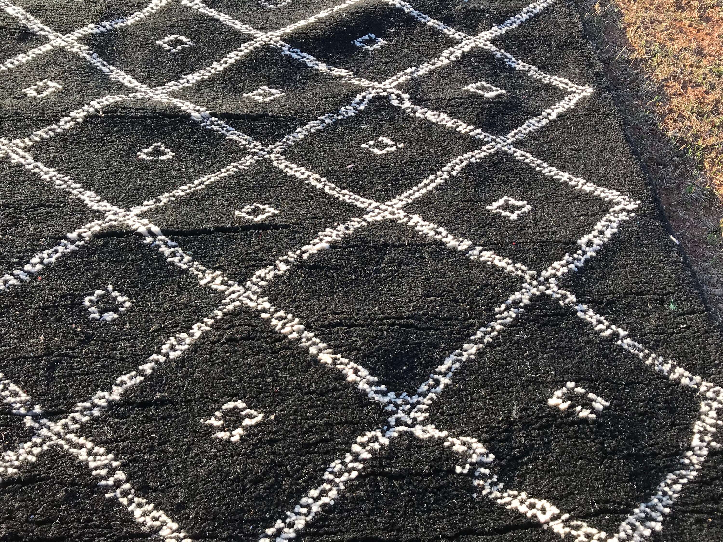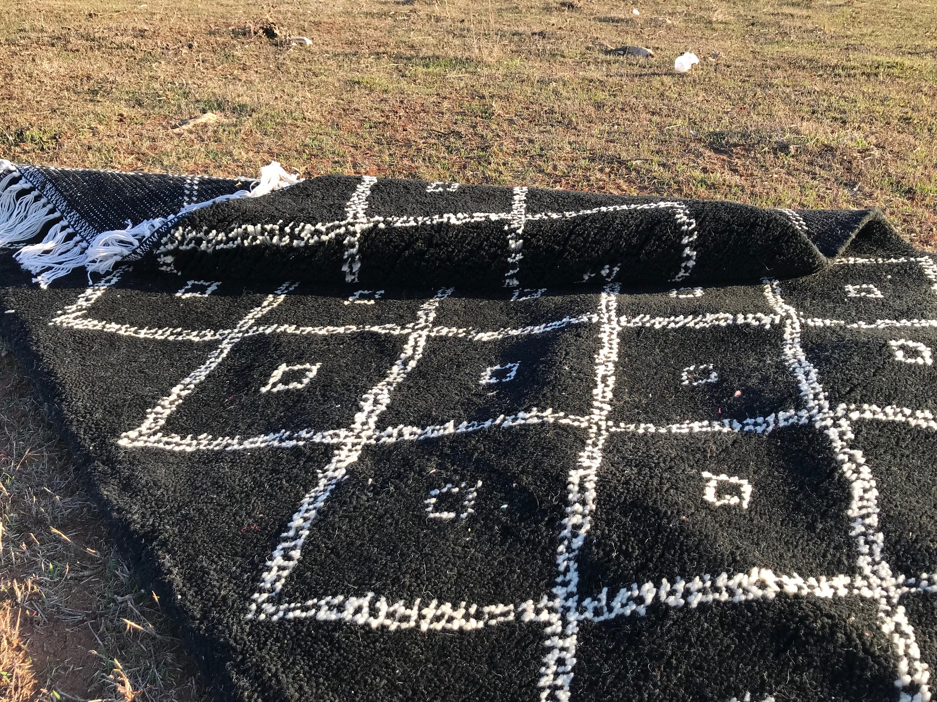 Add timeless elegance to your home with this authentic black and white Beni Ourain rug! Handwoven by Berber artisans using 100% sheep wool, this geometric Moroccan rug is the perfect blend of tradition and modern style. Soft, plush, and durable, it creates a cozy atmosphere in any living room, bedroom, or office. Elevate your space with this stunning minimalist statement piece!