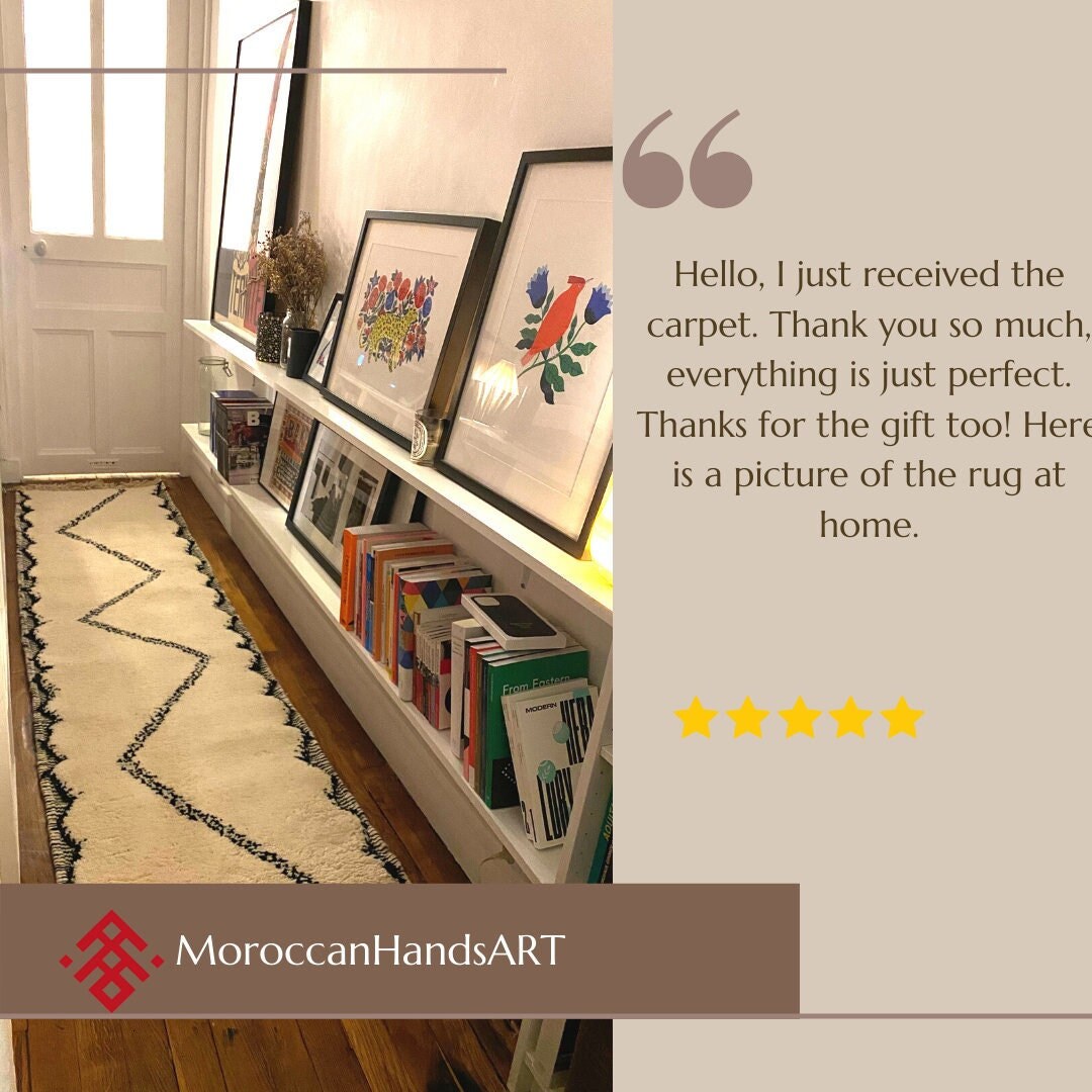 I had a wonderful experience purchasing from MoroccanhandsART. First, communication with the seller was excellent. His responses were clear and timely which I think is really important when ordering from overseas. Also, my rug shipped within the expected shipping period and arrived well packaged with a special gift. Finally, I adore the rug. It's beautiful and the craftsmanship is excellent. I would purchase from MoroccanhandsART again in the future and have no reservations about recommending them to others.