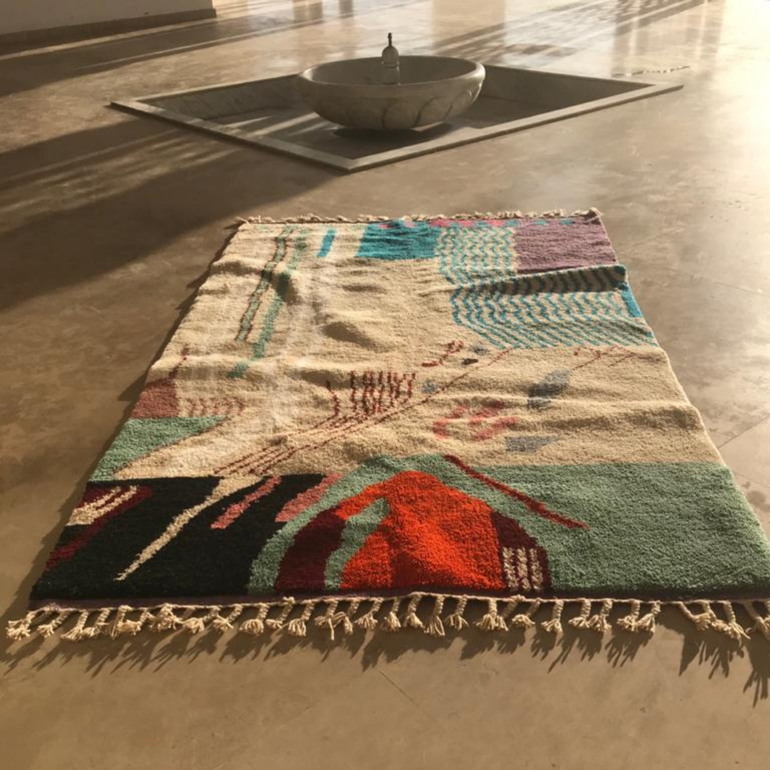 "Transform your home with a piece of Moroccan heritage that exudes both elegance and warmth 🌟. Whether placed under your sofa 🛋️, in your bedroom 🛏️, or even as a wall hanging 🖼️, these rugs invite a sense of history, style, and comfort 🧶✨ Explore our full collection of Beni Ourain, Azilal, and Boucherouite rugs for unique pieces that tell a story 📚💫.”