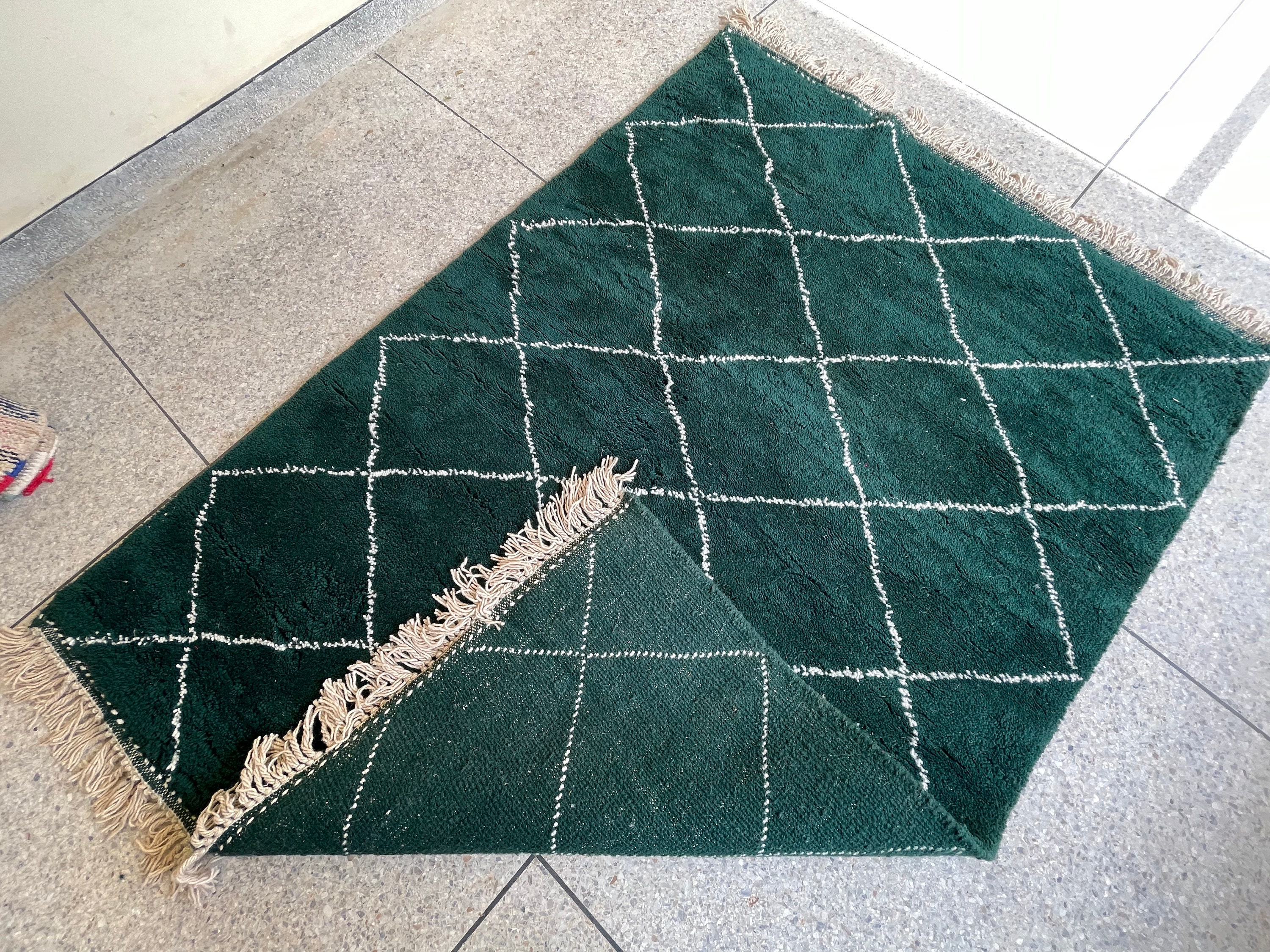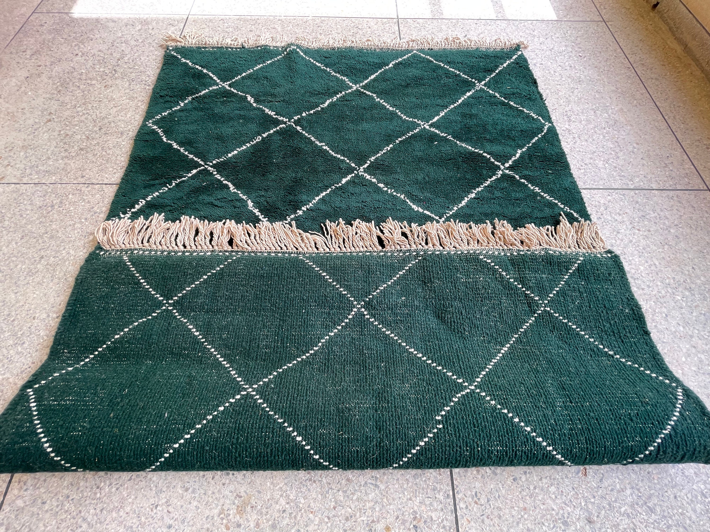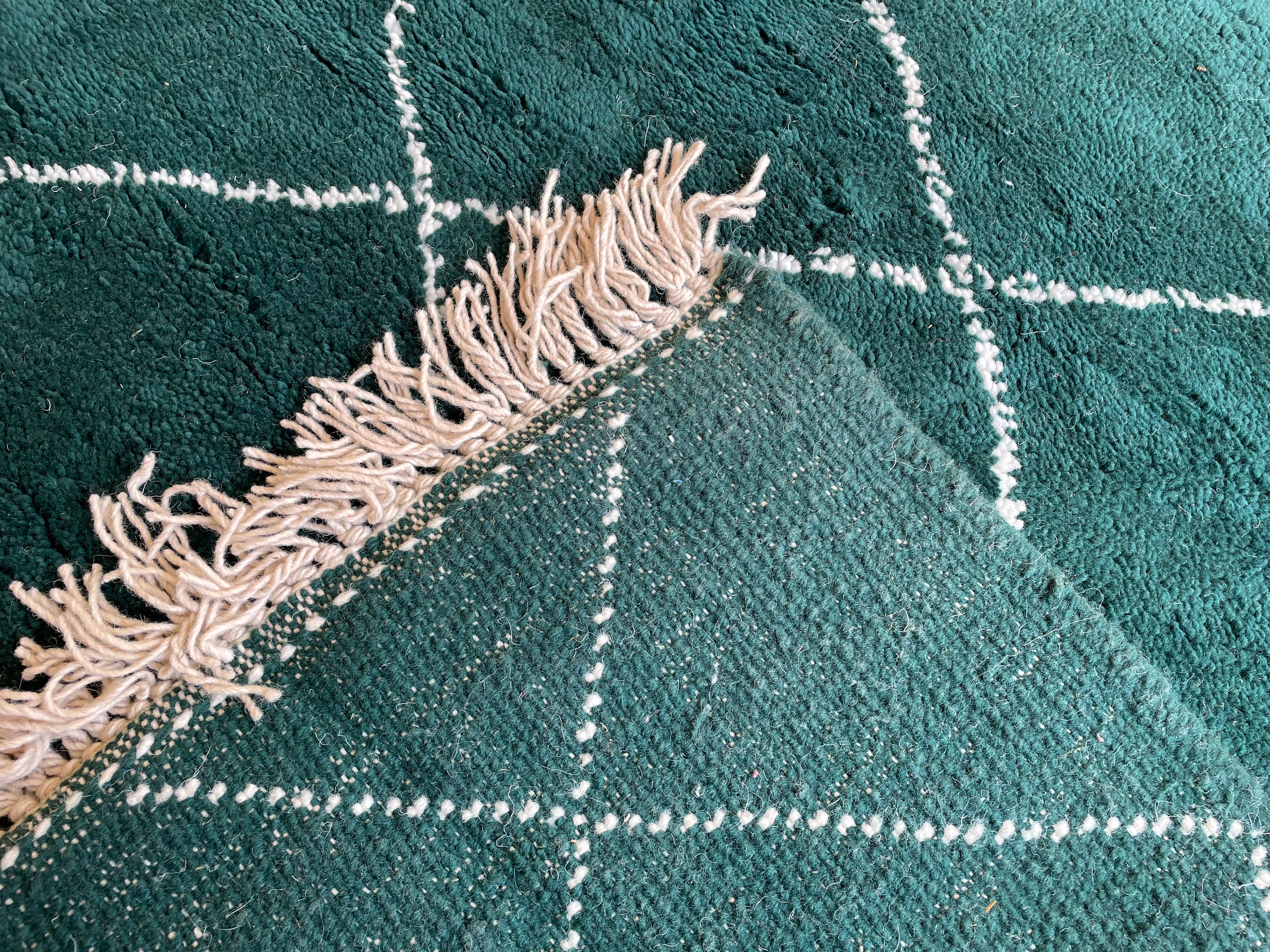 .ARTISTIC GREEN RUG, Moroccan Green & White Rug for Your Living Room, Tribal Hand-Woven Rug From Wool of Sheep, Berber Abstract Plain Rug