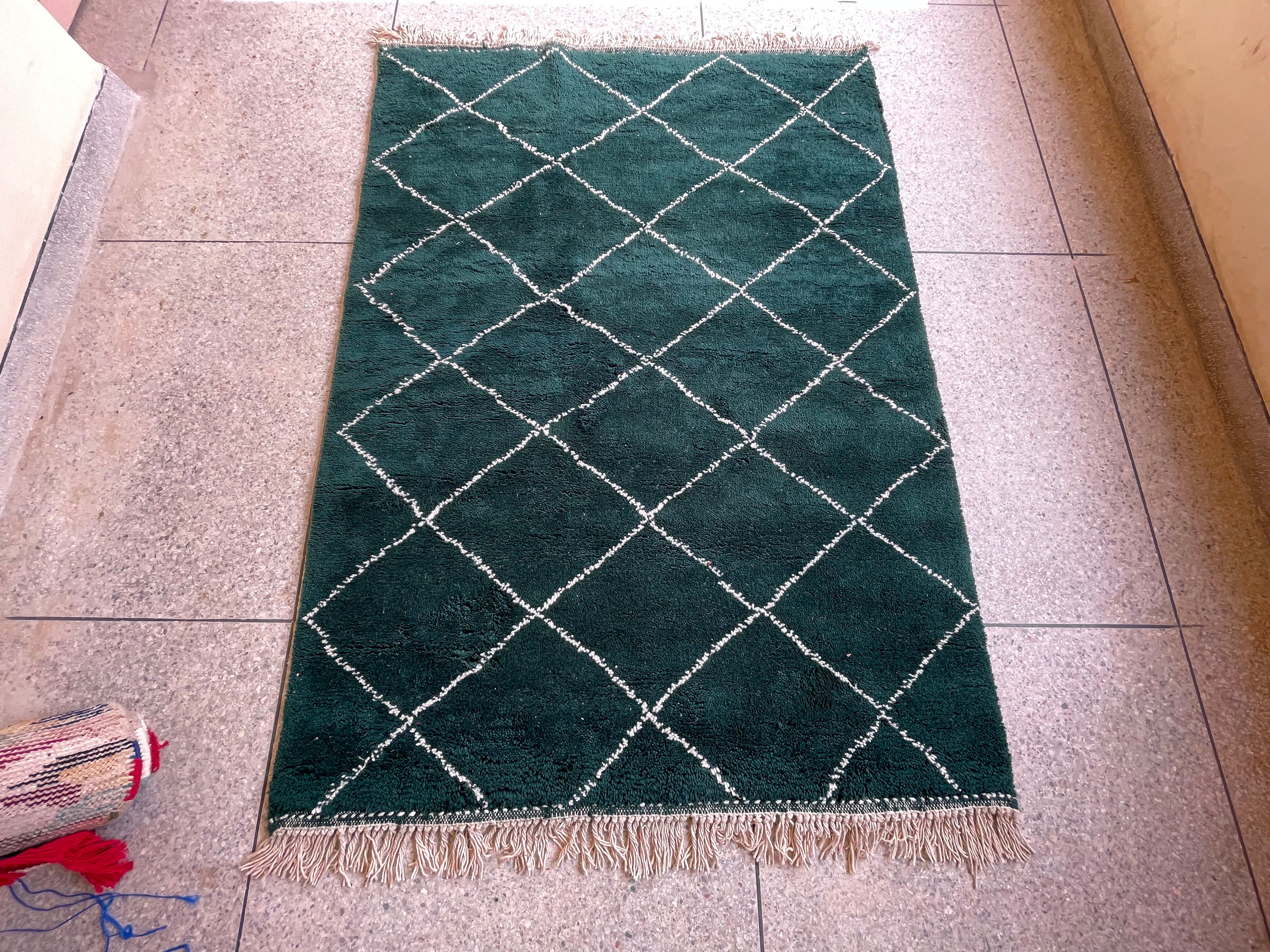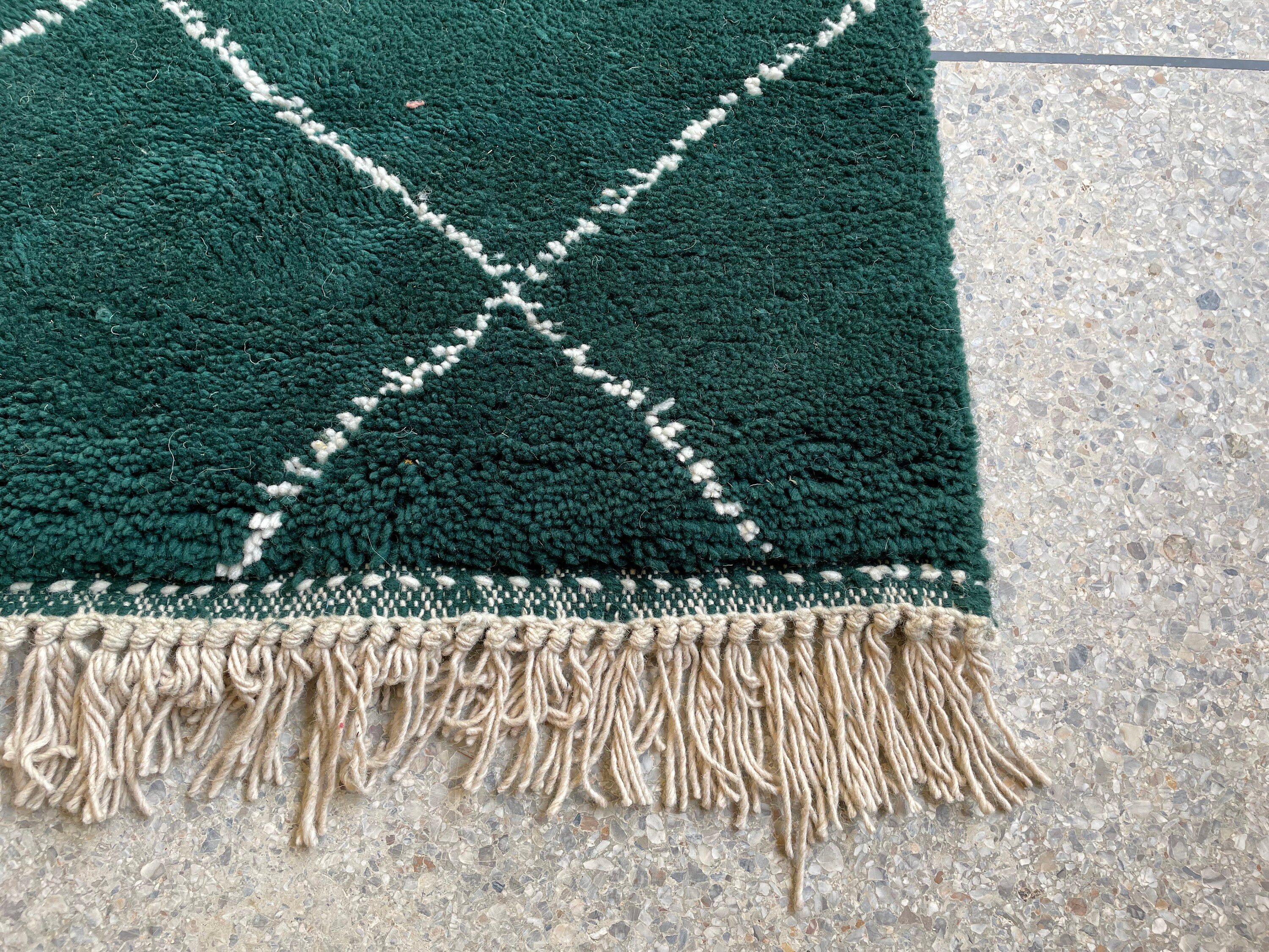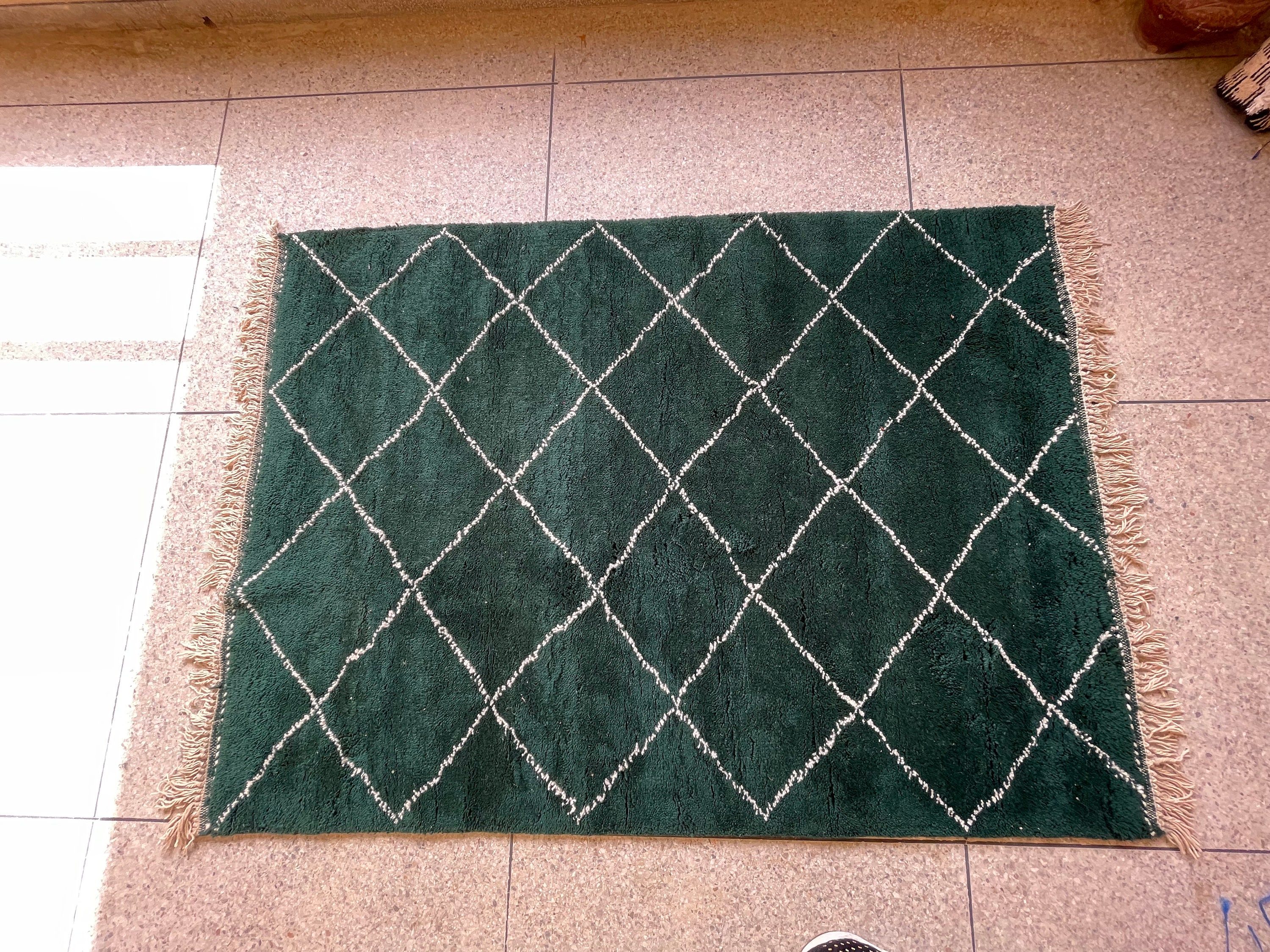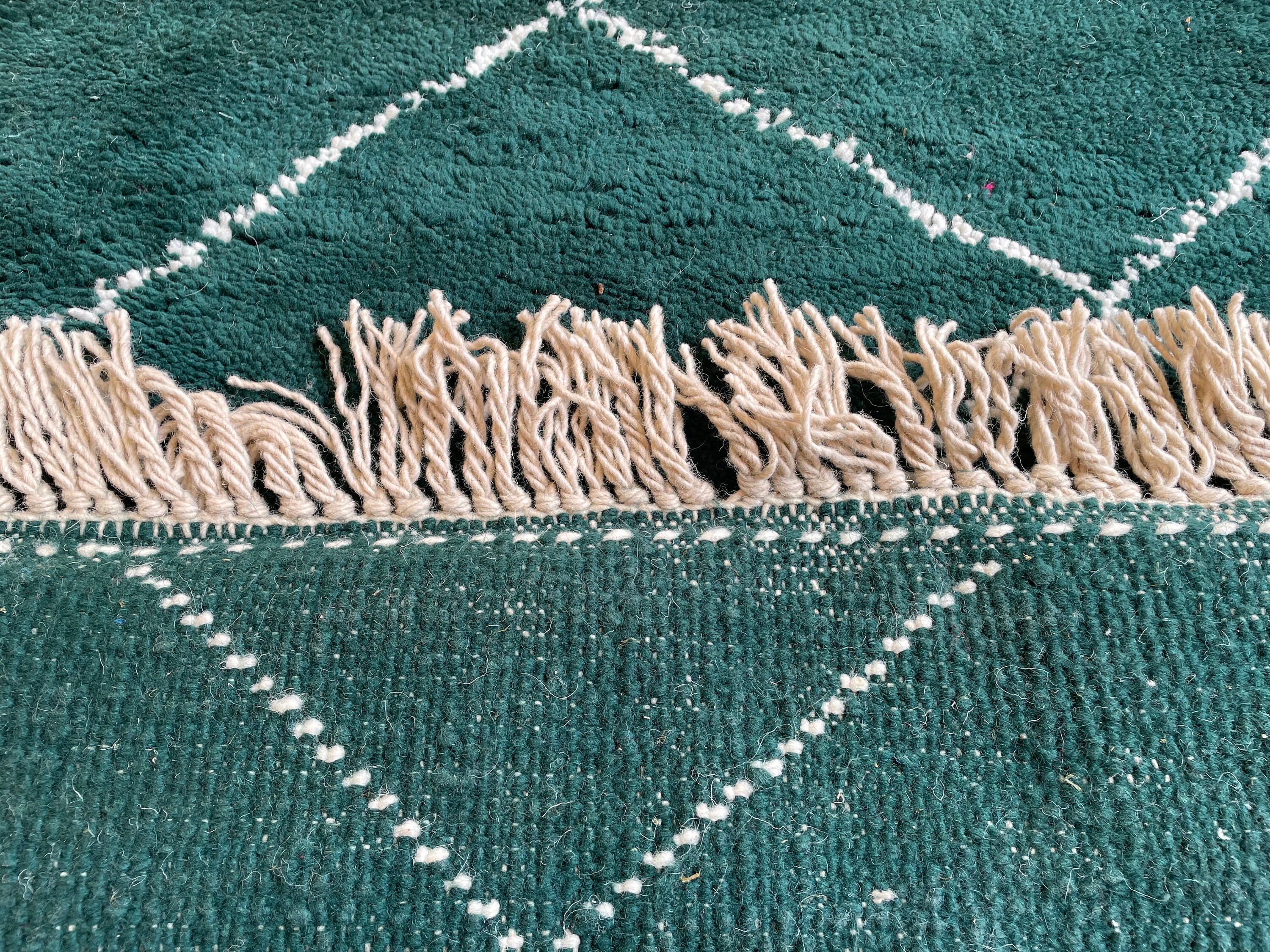 .ARTISTIC GREEN RUG, Moroccan Green & White Rug for Your Living Room, Tribal Hand-Woven Rug From Wool of Sheep, Berber Abstract Plain Rug