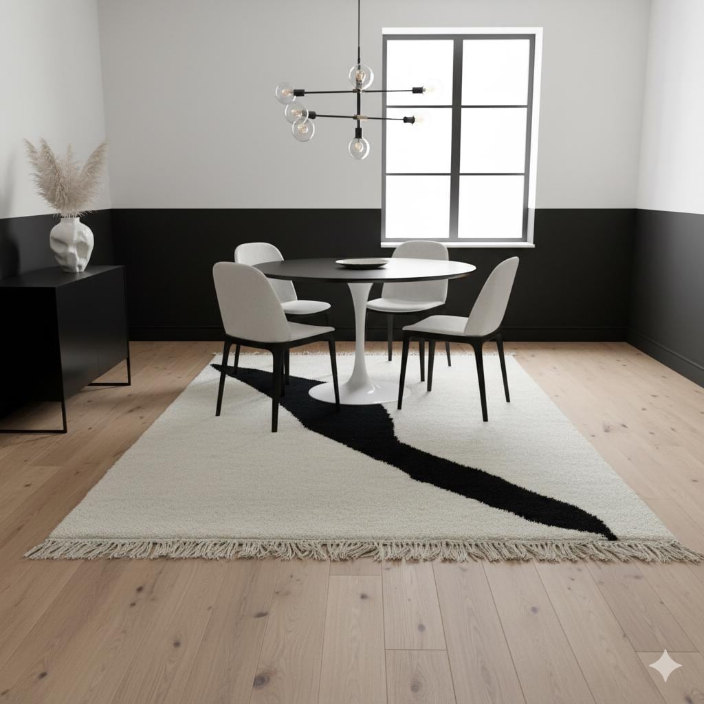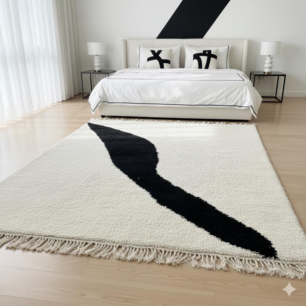 Transform your space with this stunning Abstract Moroccan rug, inspired by traditional Beni Ourain designs. Handcrafted from soft, high-quality wool, this customizable Berber area rug brings warmth and elegance to any room. Its unique black and white patterns effortlessly complement various decors. Enjoy free shipping on your order! Elevate your home aesthetics with a handmade rug that showcases artisanal craftsmanship and sophistication. Perfect for living rooms, bedrooms, or offices. Order yours today!