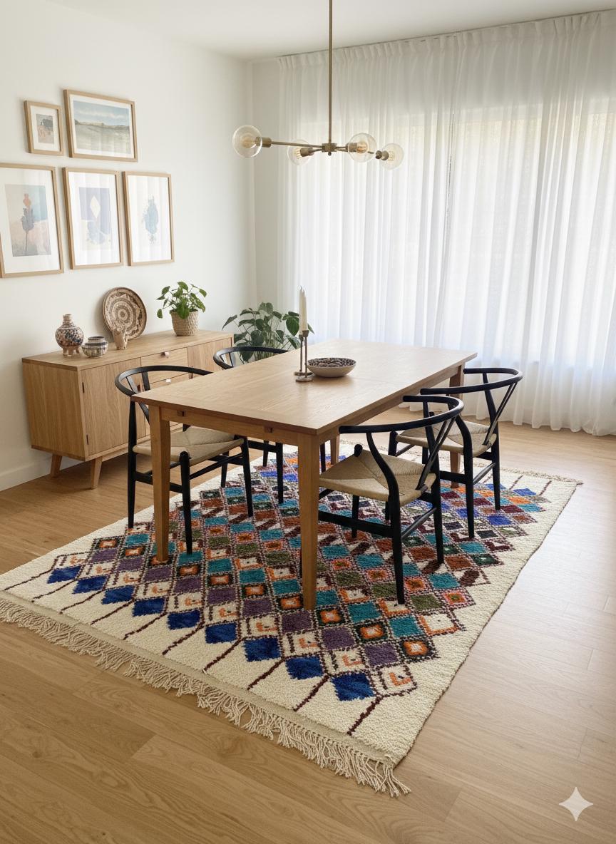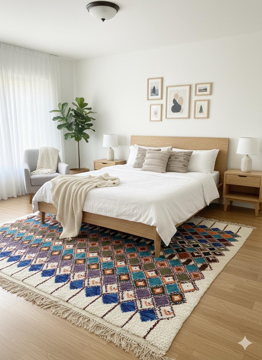 Versatile & Timeless Design: With their minimalist, geometric diamond patterns and natural colors, Beni Ourain rugs blend seamlessly with Traditional, Bohemian, Minimalist, Modern, and Scandinavian styles.