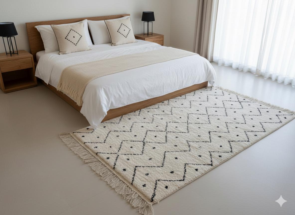 Versatile & Timeless Design: With their minimalist, geometric diamond patterns and natural colors, Beni Ourain rugs blend seamlessly with Traditional, Bohemian, Minimalist, Modern, and Scandinavian styles.