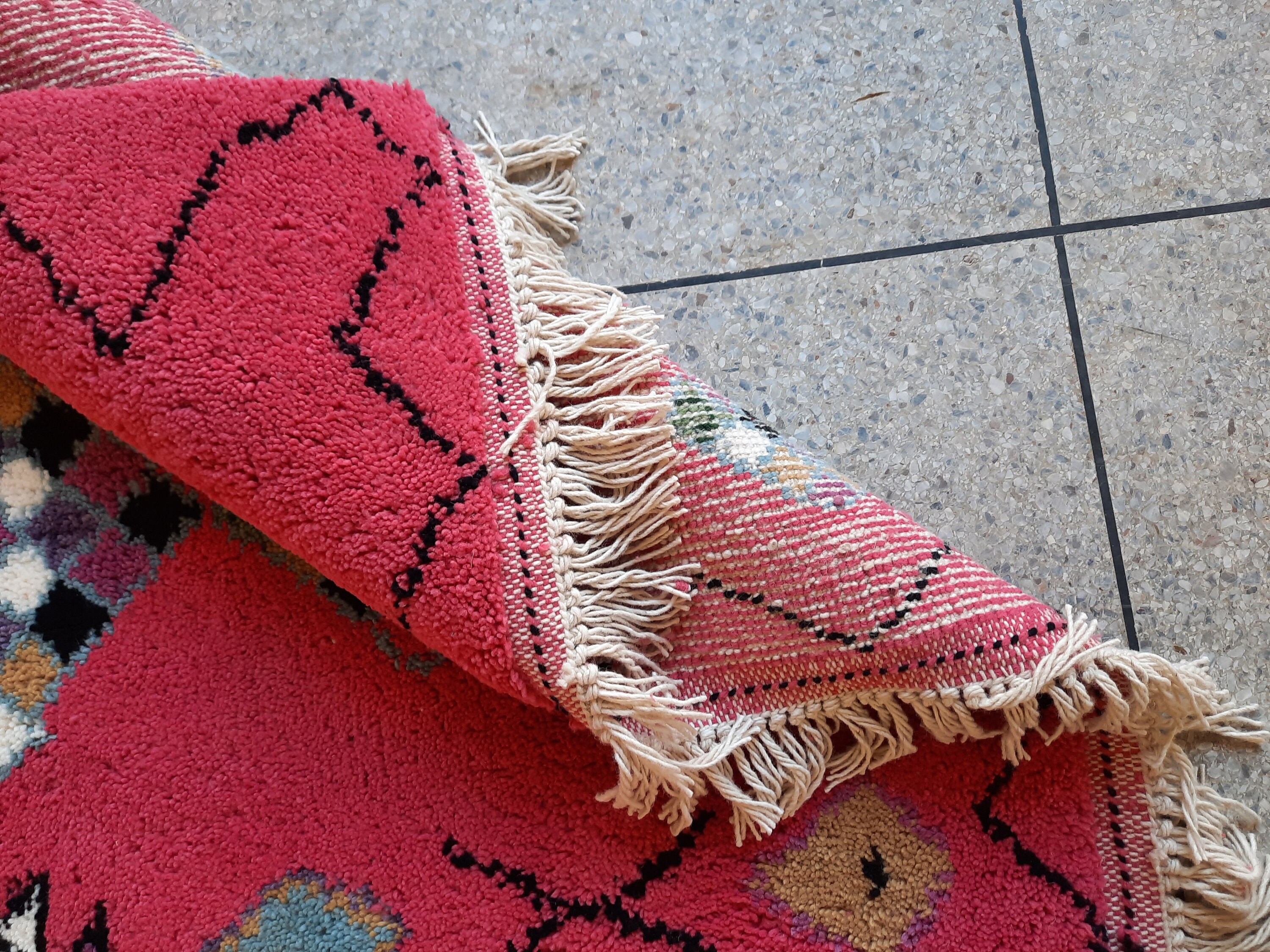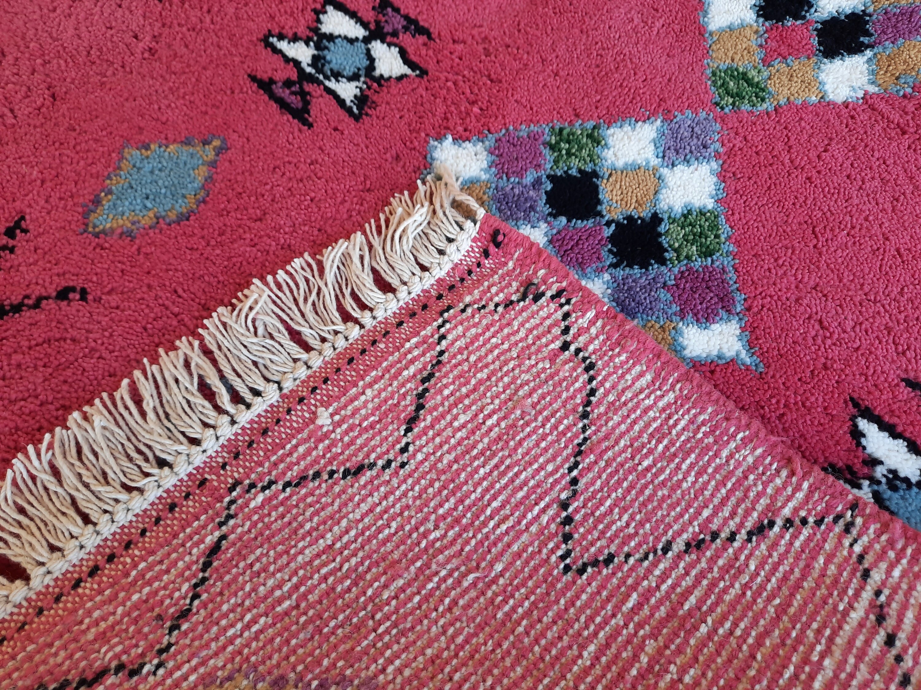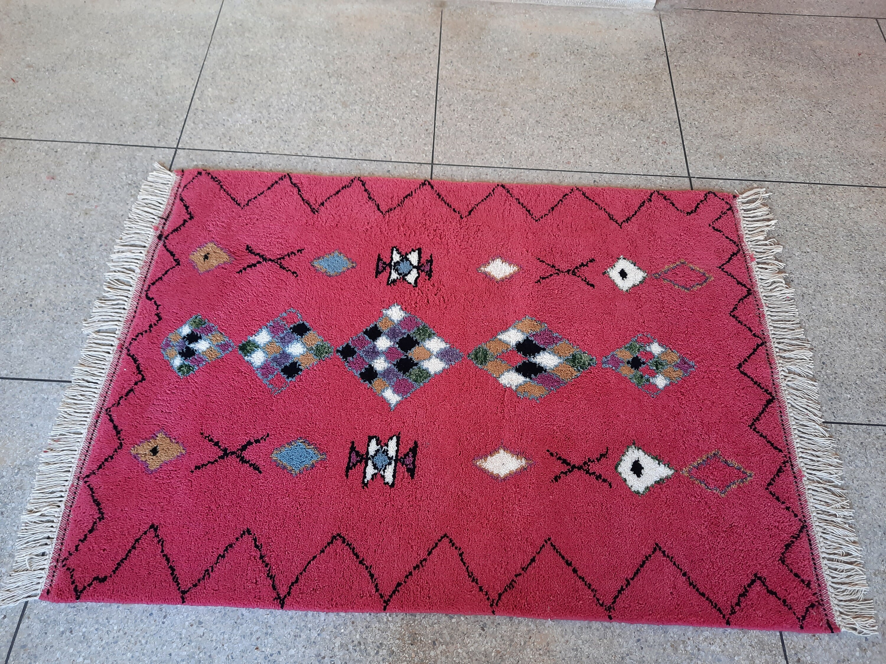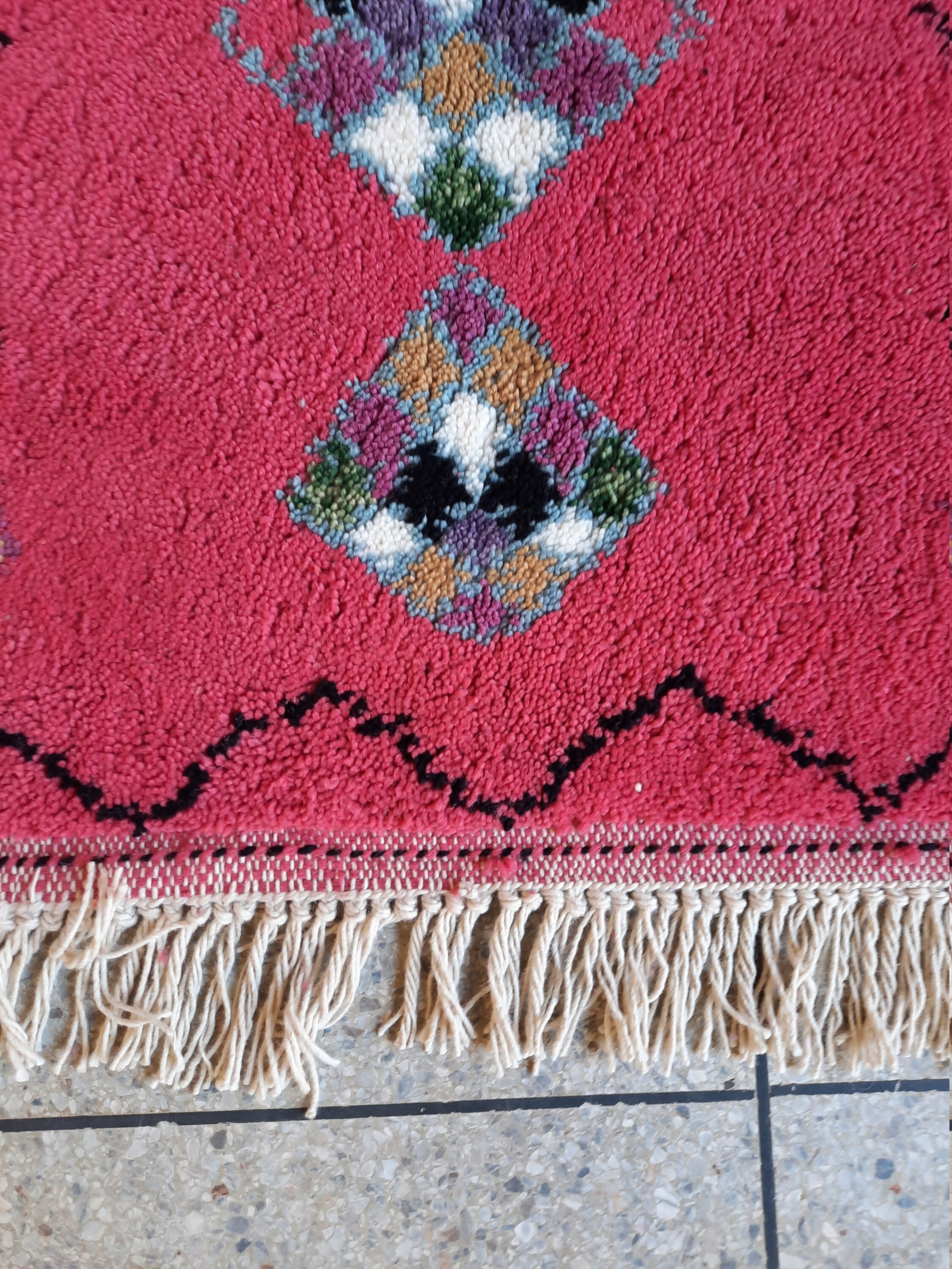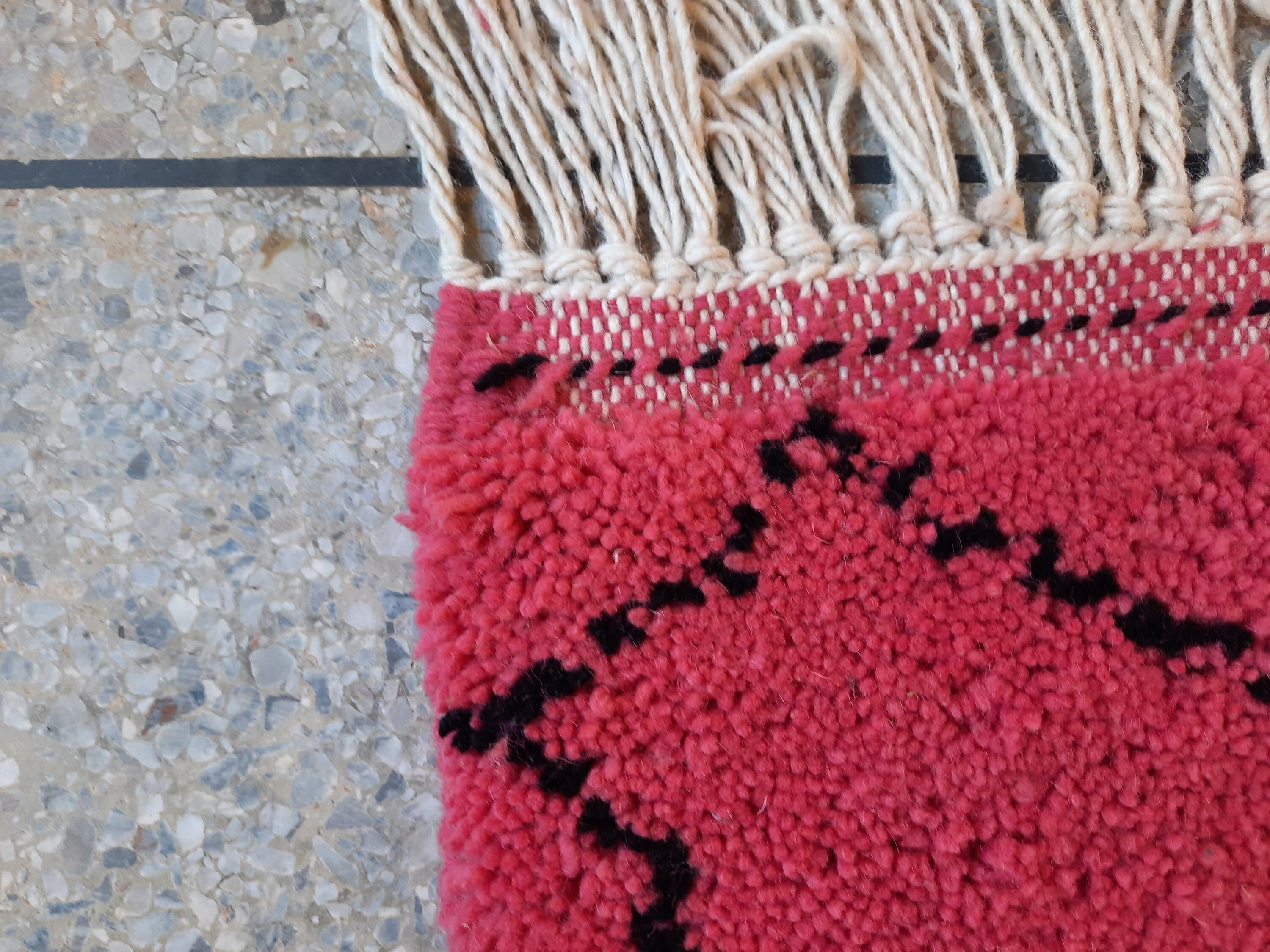 Add a bold statement to your space with this Pink and Black Abstract Beni Ourain Rug, a custom handmade Moroccan wool carpet designed for bohemian living rooms, bedrooms, or kids' rooms. Made from soft, high-quality wool, this unique Berber rug brings warmth, comfort, and an artistic touch to your home.
