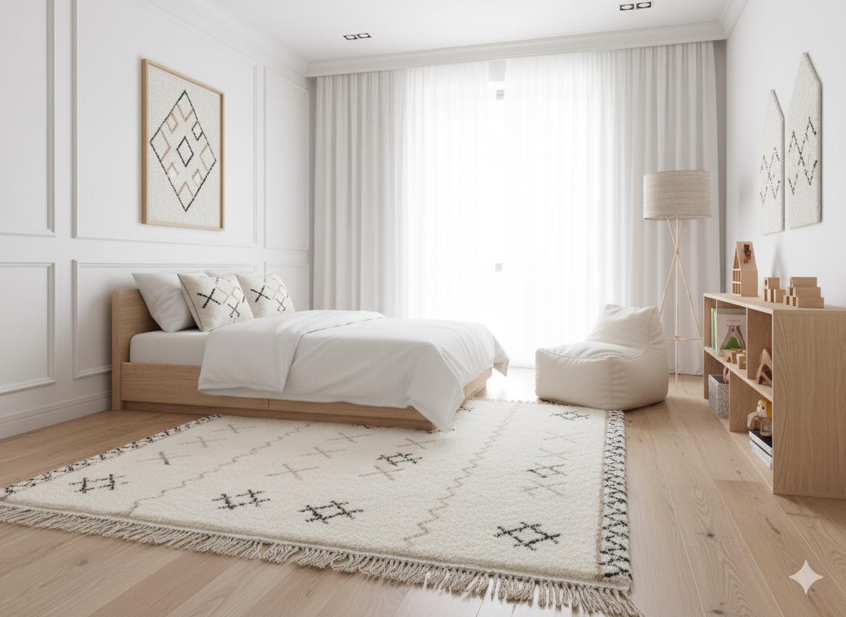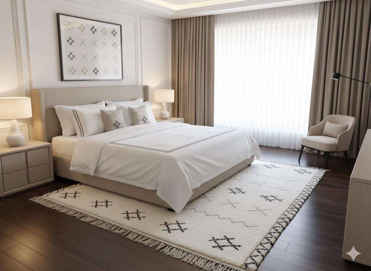 Versatile & Timeless Design: With their minimalist, geometric diamond patterns and natural colors, Beni Ourain rugs blend seamlessly with Traditional, Bohemian, Minimalist, Modern, and Scandinavian styles.