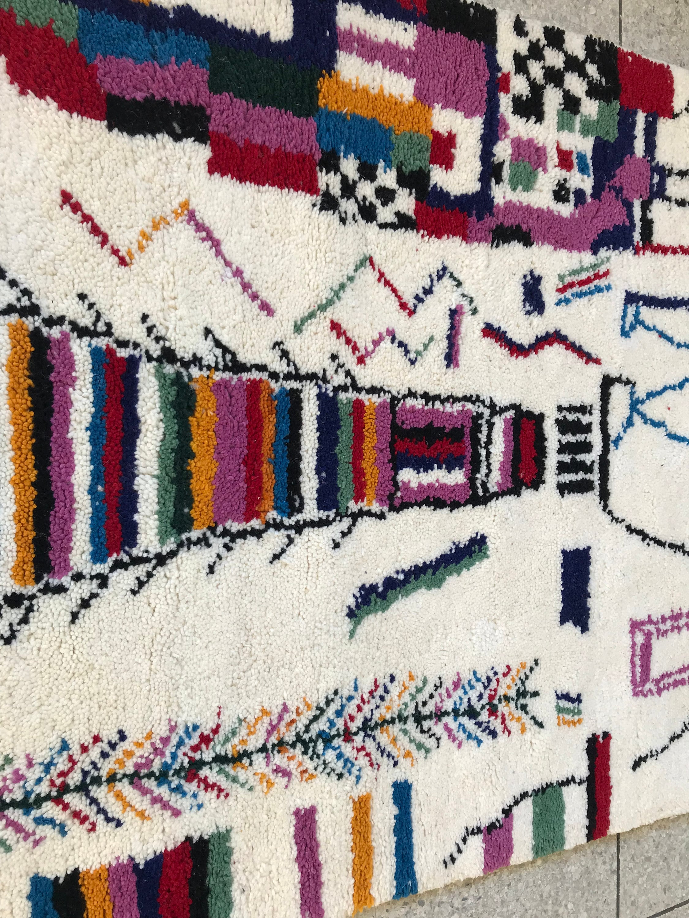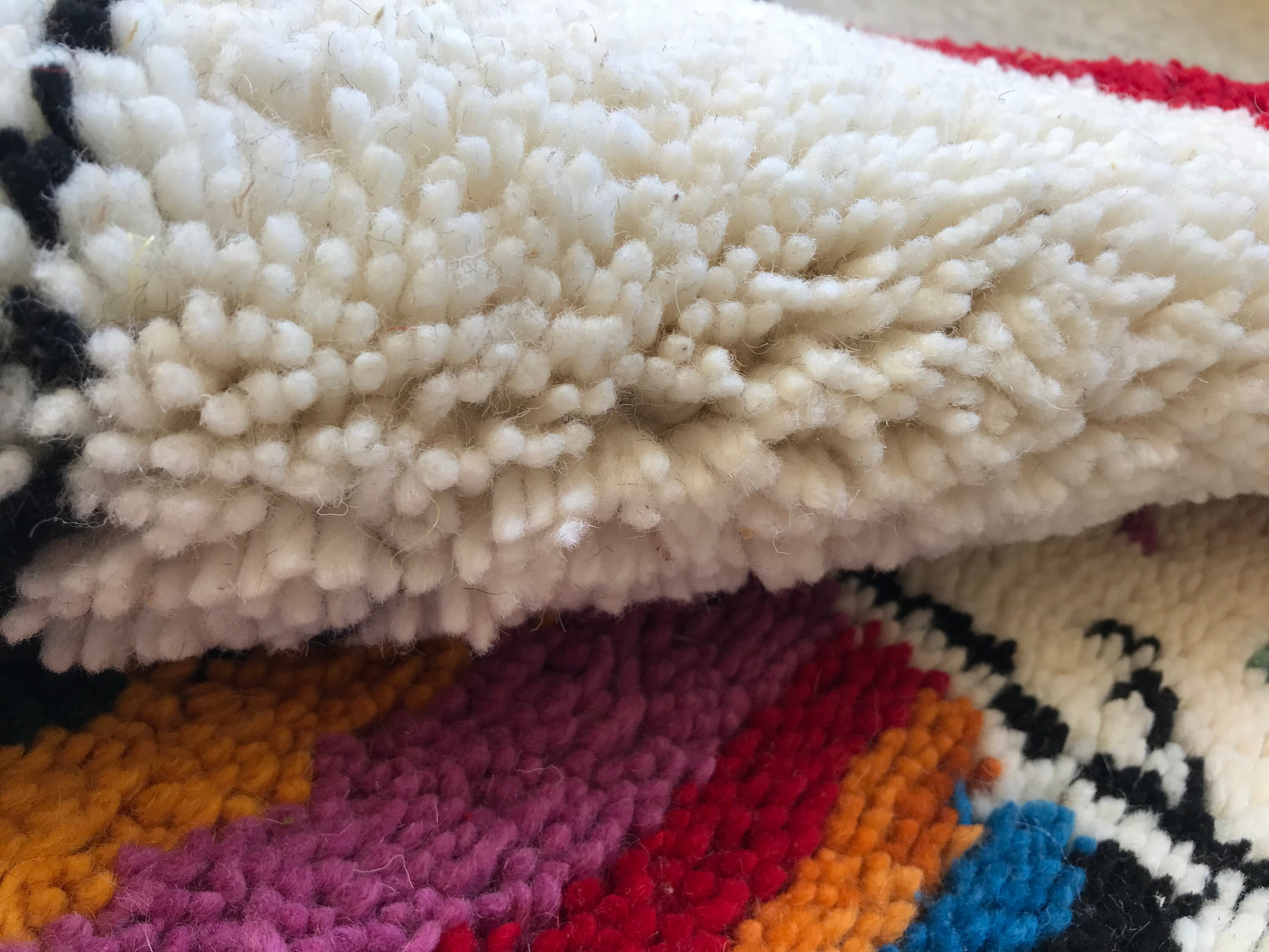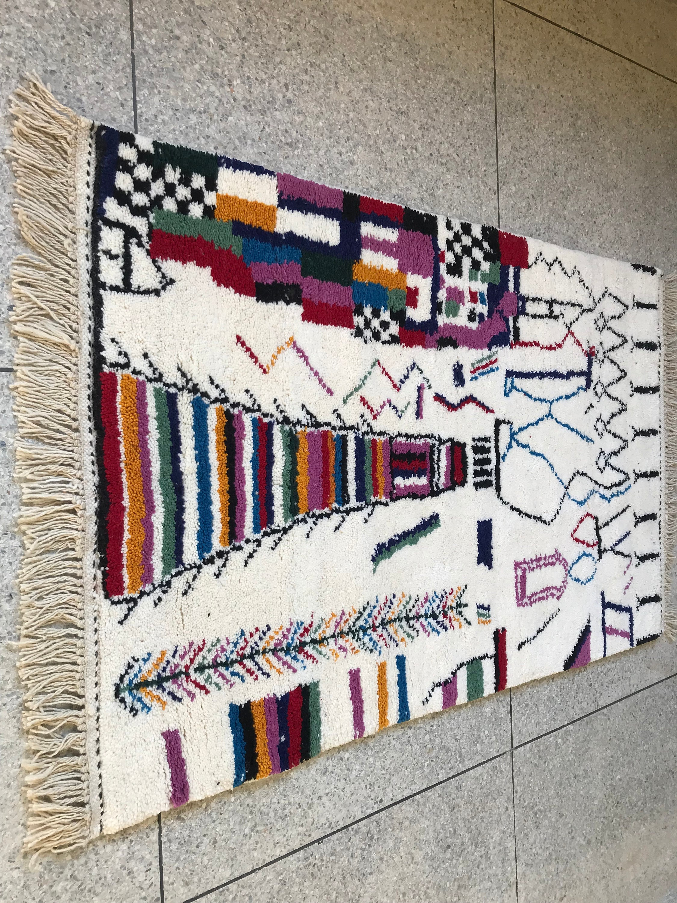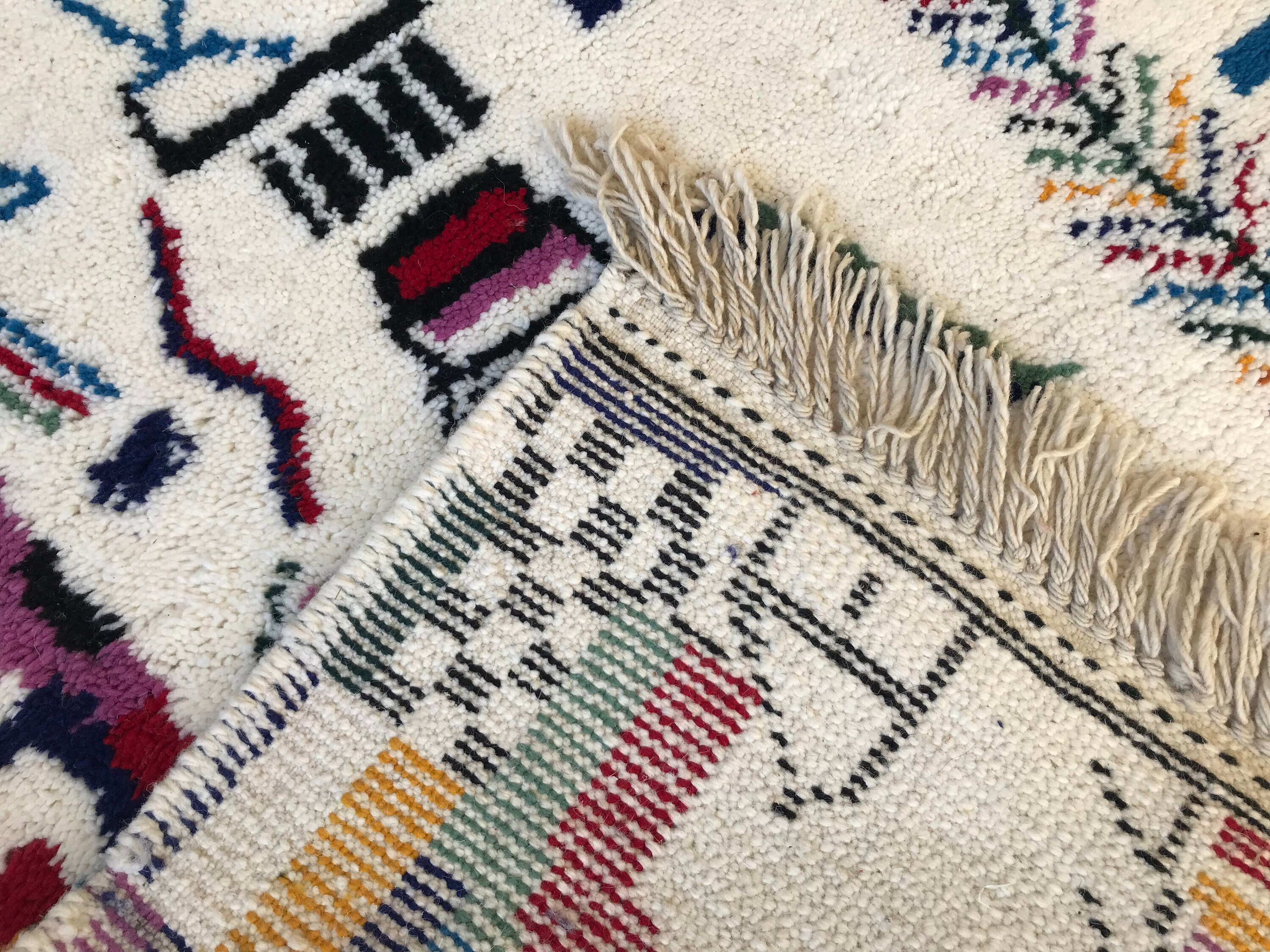 Add vibrant Moroccan charm to your space with this handmade multicolor Beni Ourain rug — soft wool, abstract patterns, and perfect for boho decor.