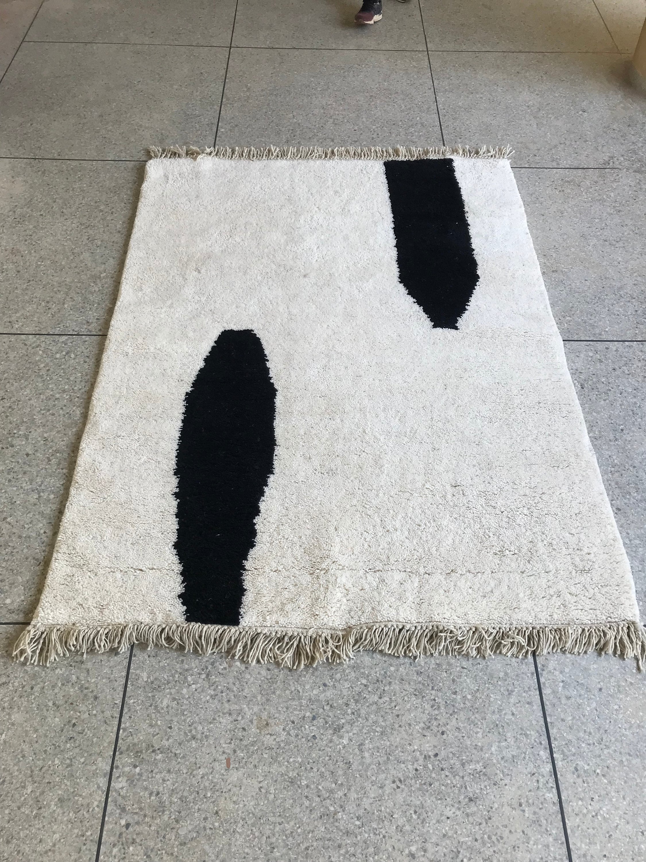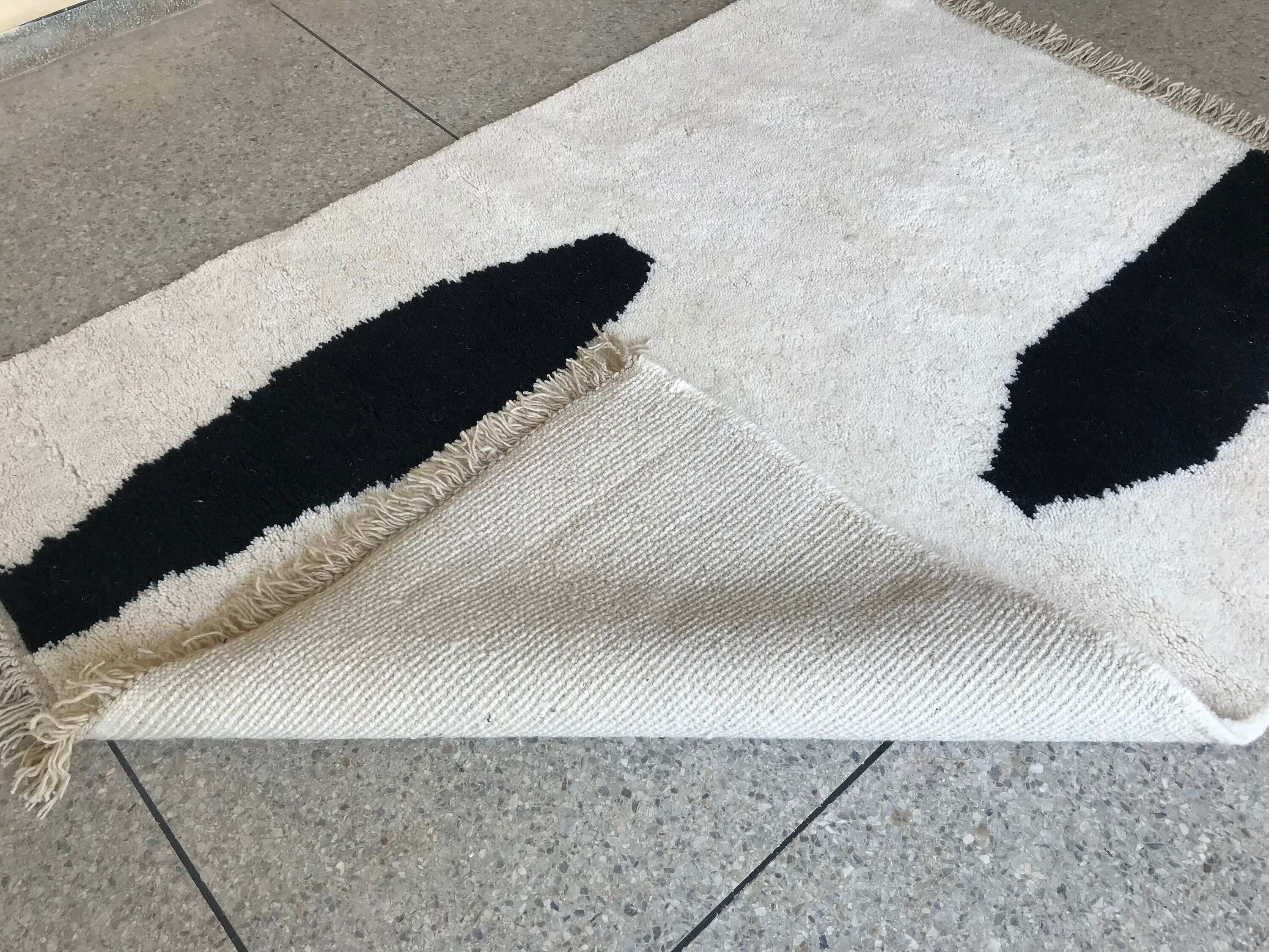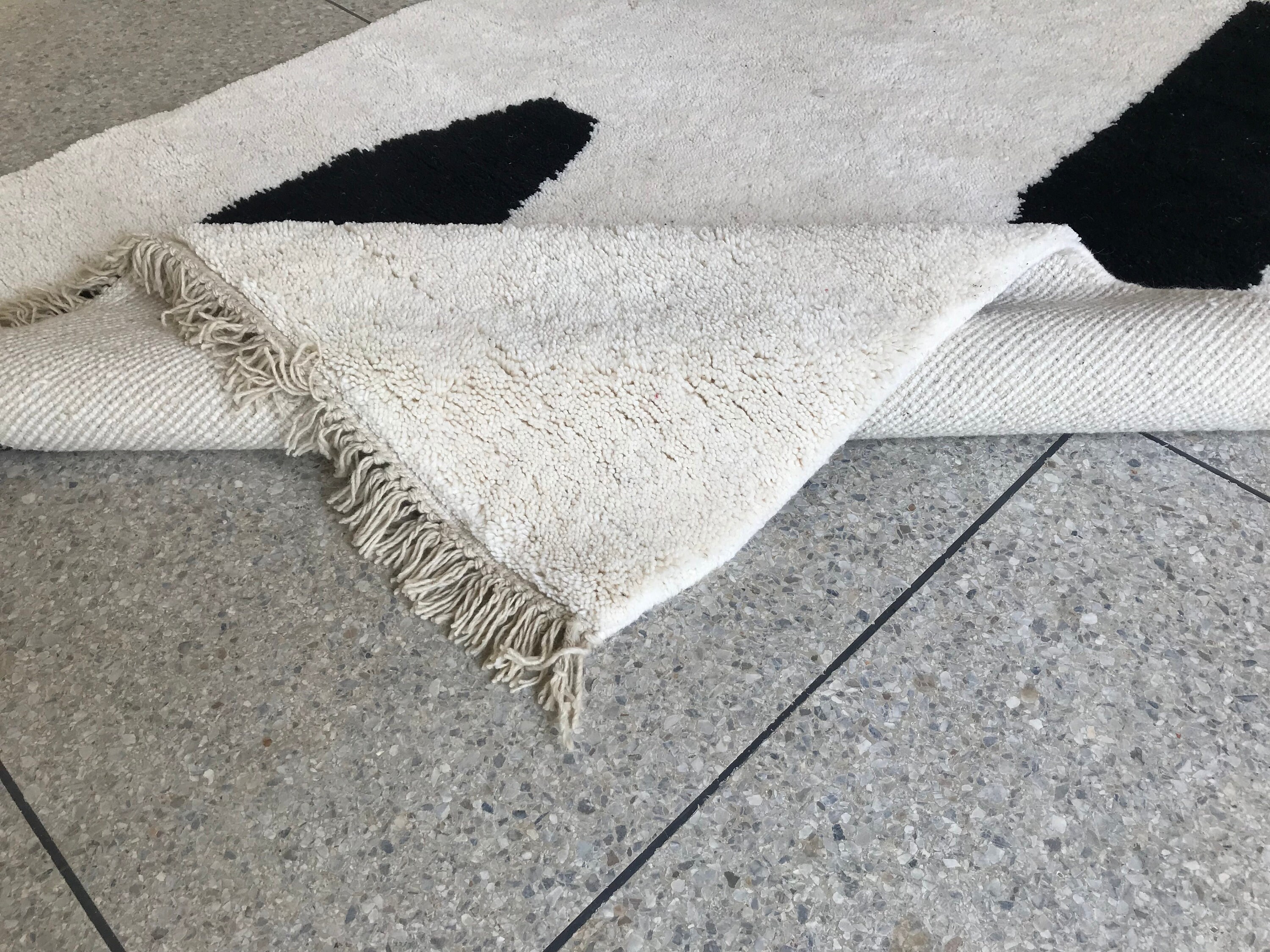 Transform your space with our Abstract Moroccan Rug, a stunning handmade Beni Ourain wool rug. This black and white area rug beautifully combines contemporary design with traditional Berber art decor, making it the perfect centerpiece for any room. Crafted from premium wool, it offers not only style but also underfoot comfort. Elevate your home decor with this unique wool rug that adds warmth and sophistication. Ideal for living rooms, bedrooms, or any area that needs a touch of elegance!