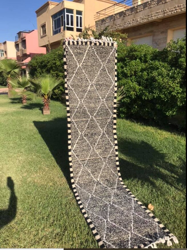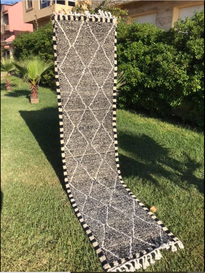 Elevate your space with our stunning Moroccan Runner, a Beni Ourain geometric masterpiece that adds a touch of tribal elegance to any room. Handwoven with care, this black handmade runner features intricate patterns and rich textures, making it the perfect wool area rug for your living room decor. Each piece is unique, bringing warmth and style to your home. Transform your floors with this exquisite tribal area rug that combines tradition with contemporary flair. Ideal for creating cozy, inviting spaces!