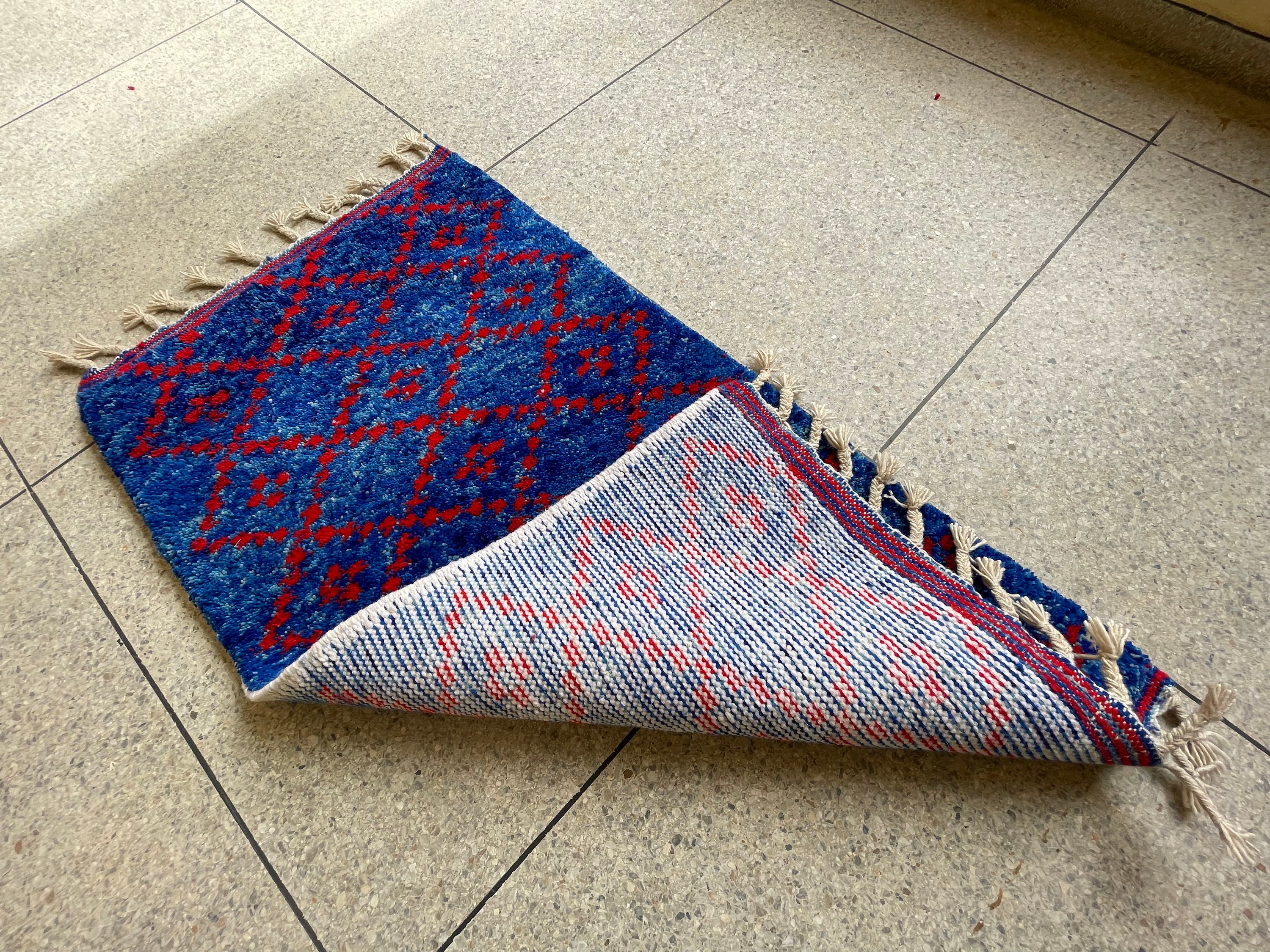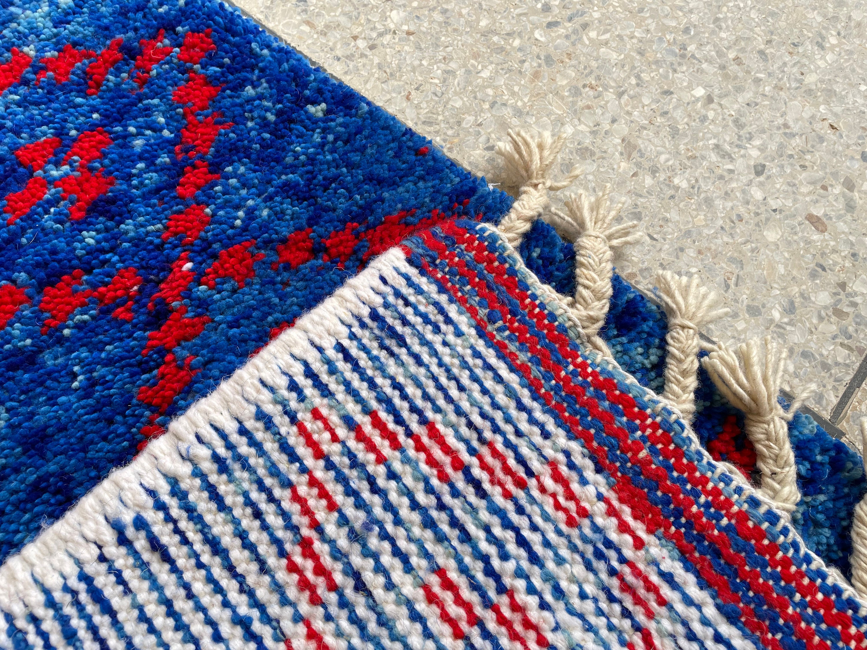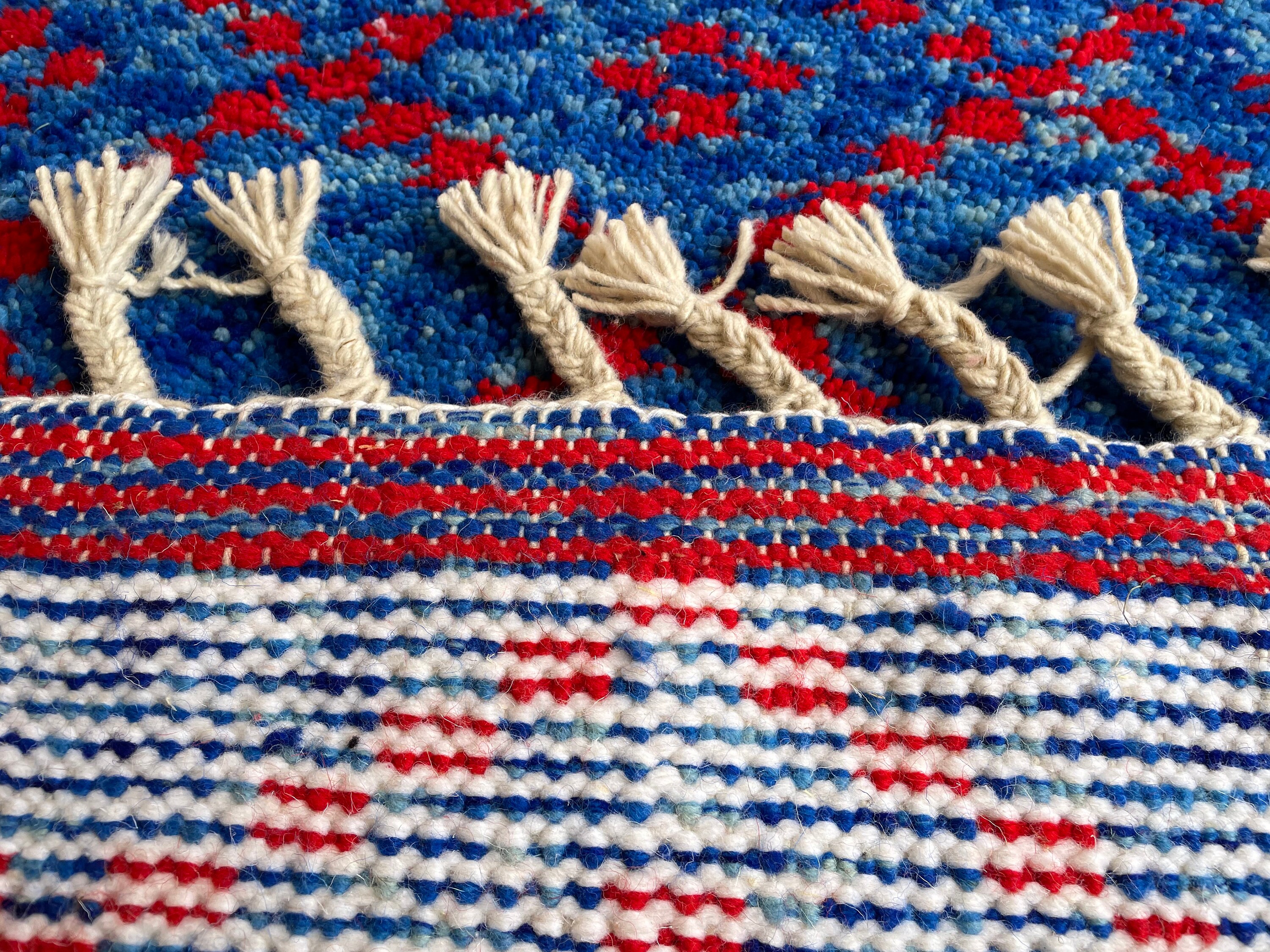 .Artistic Wool Rug, Custom Beni Ourain Rug, Blue and red Wool Rug, Azilal rug, Blue Berber Wool Rug, Unique Geometric Rug, Handwoven Rug.