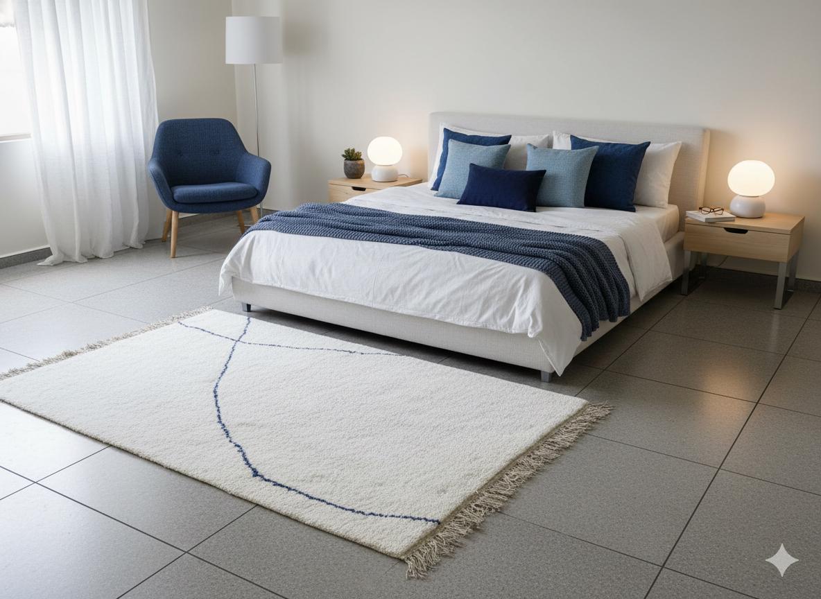 Transform your space with our stunning Moroccan Berber Rug! This exquisite handwoven White Beni Ourain Rug features striking geometric patterns and adds a touch of elegance to any room. Perfect as a blue area rug, it's a versatile choice for your living room or home office. Handcrafted with care, this rug brings warmth and sophistication to your decor while ensuring durability. Elevate your interior with this unique piece that blends tradition with modern design! Shop now and redefine your home ambiance.