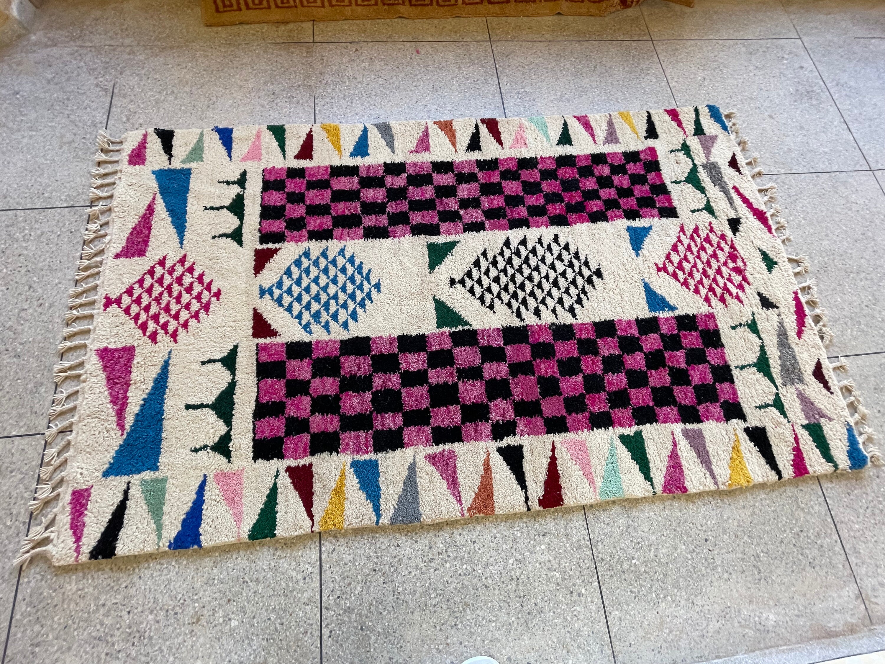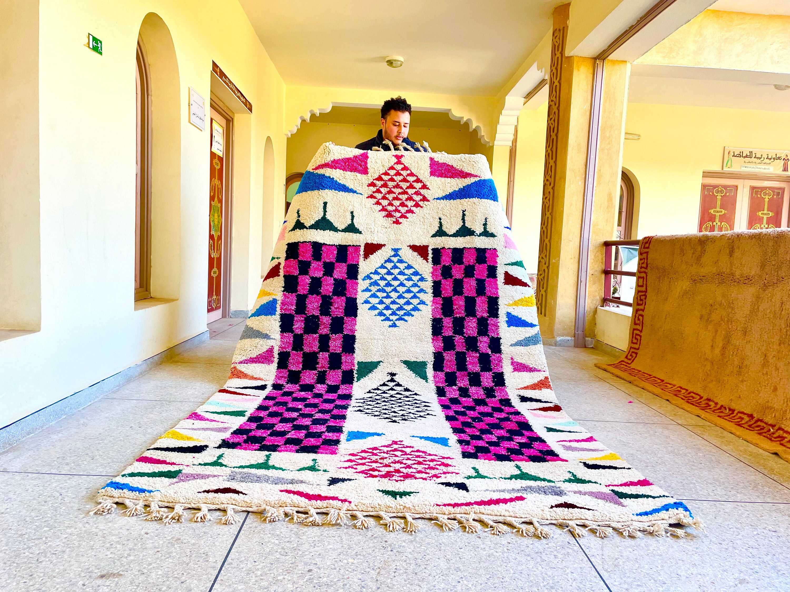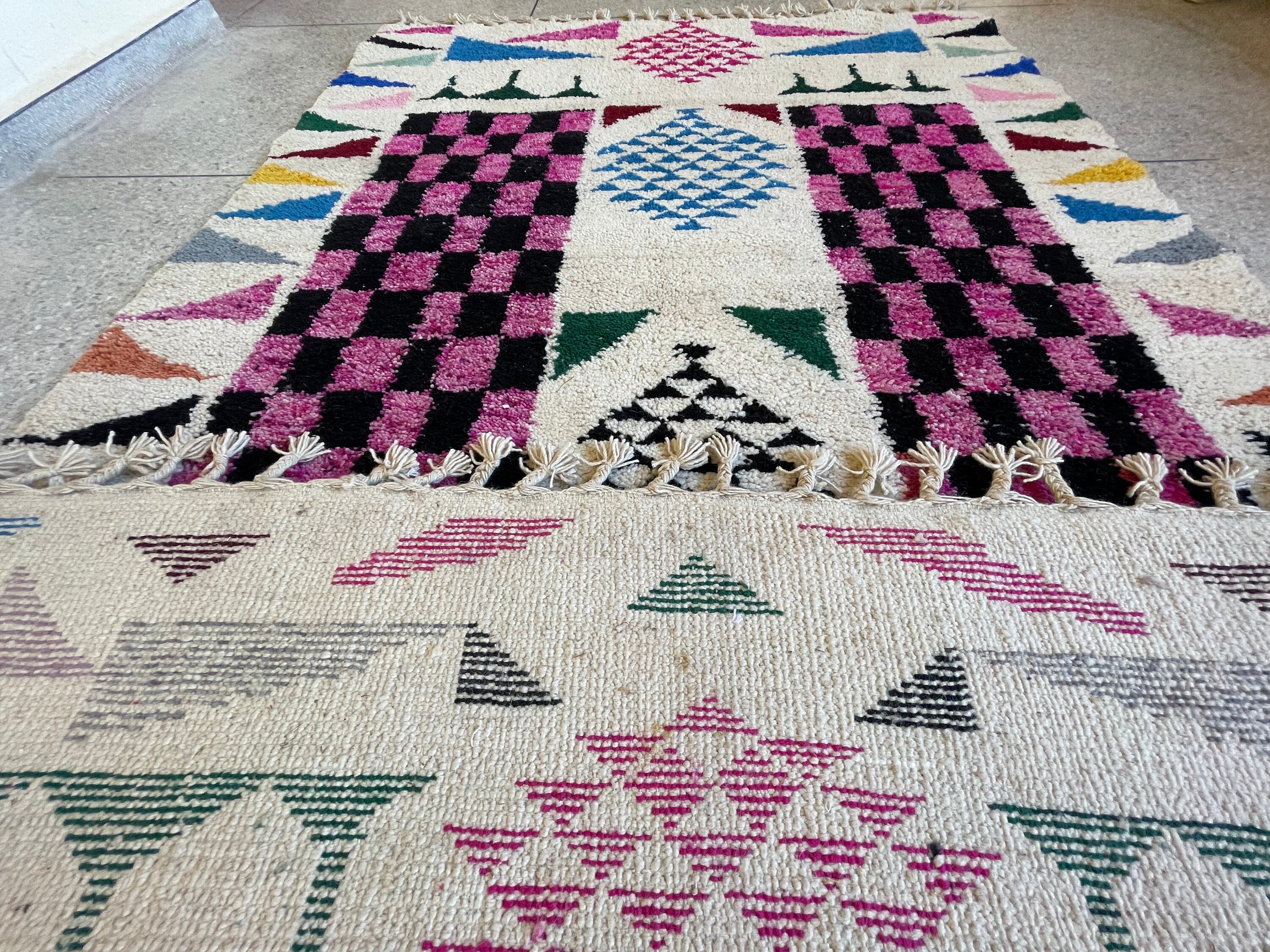 Transform your space with our stunning Multicolor Rug, a perfect blend of tradition and style. This Checkered Beni Ourain Rug is meticulously handmade from soft, durable wool, giving you a shaggy Berber carpet that feels amazing underfoot. Ideal as a bright area rug, it adds a pop of color and character to any room. Each Custom Moroccan Rug is unique, reflecting artisan craftsmanship. Elevate your home decor with our beautiful Beni Rugs – where comfort meets elegance! Perfect for living rooms, bedrooms, or cozy nooks.
