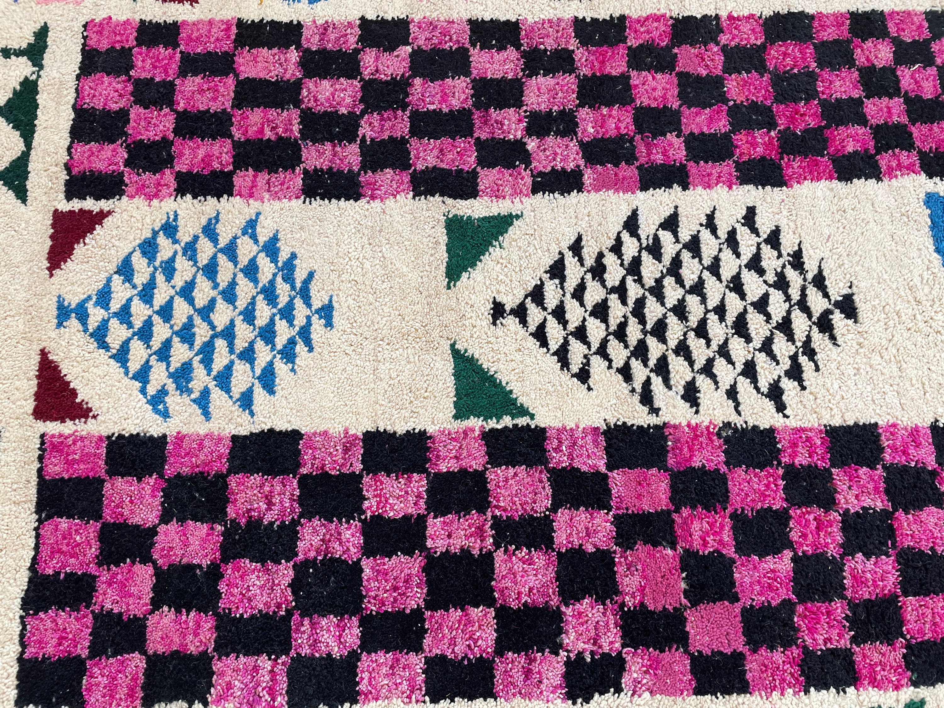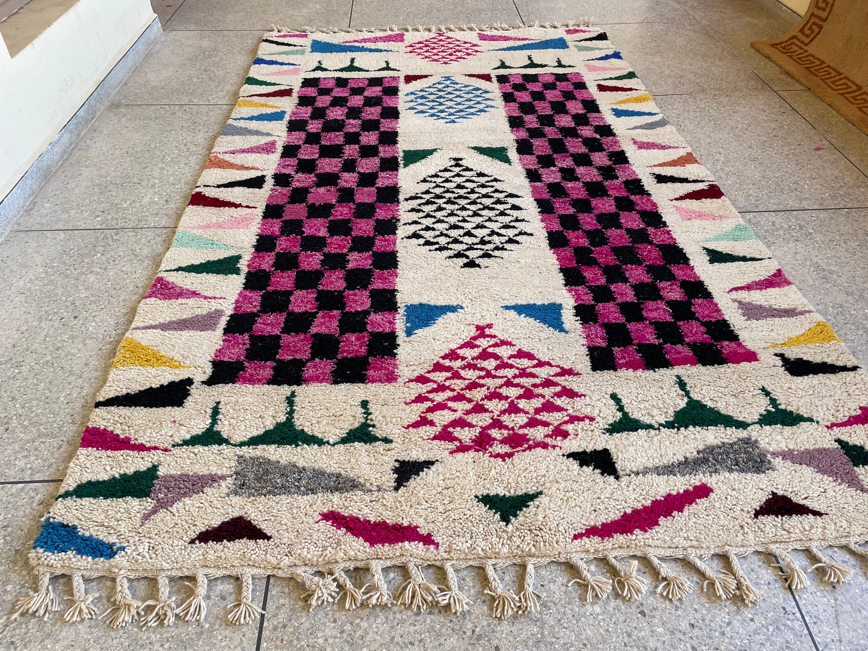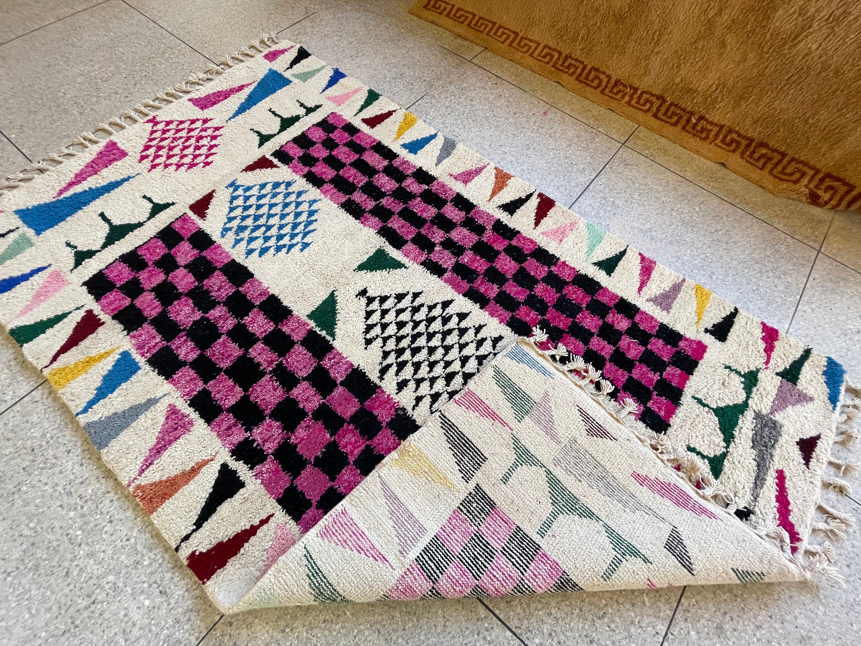 Transform your space with our stunning Multicolor Rug, a perfect blend of tradition and style. This Checkered Beni Ourain Rug is meticulously handmade from soft, durable wool, giving you a shaggy Berber carpet that feels amazing underfoot. Ideal as a bright area rug, it adds a pop of color and character to any room. Each Custom Moroccan Rug is unique, reflecting artisan craftsmanship. Elevate your home decor with our beautiful Beni Rugs – where comfort meets elegance! Perfect for living rooms, bedrooms, or cozy nooks.