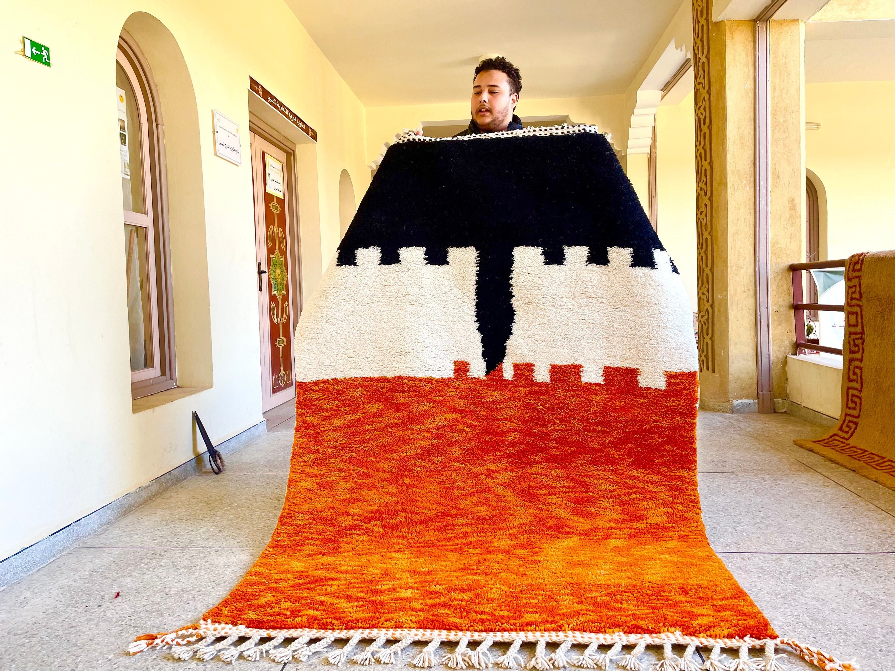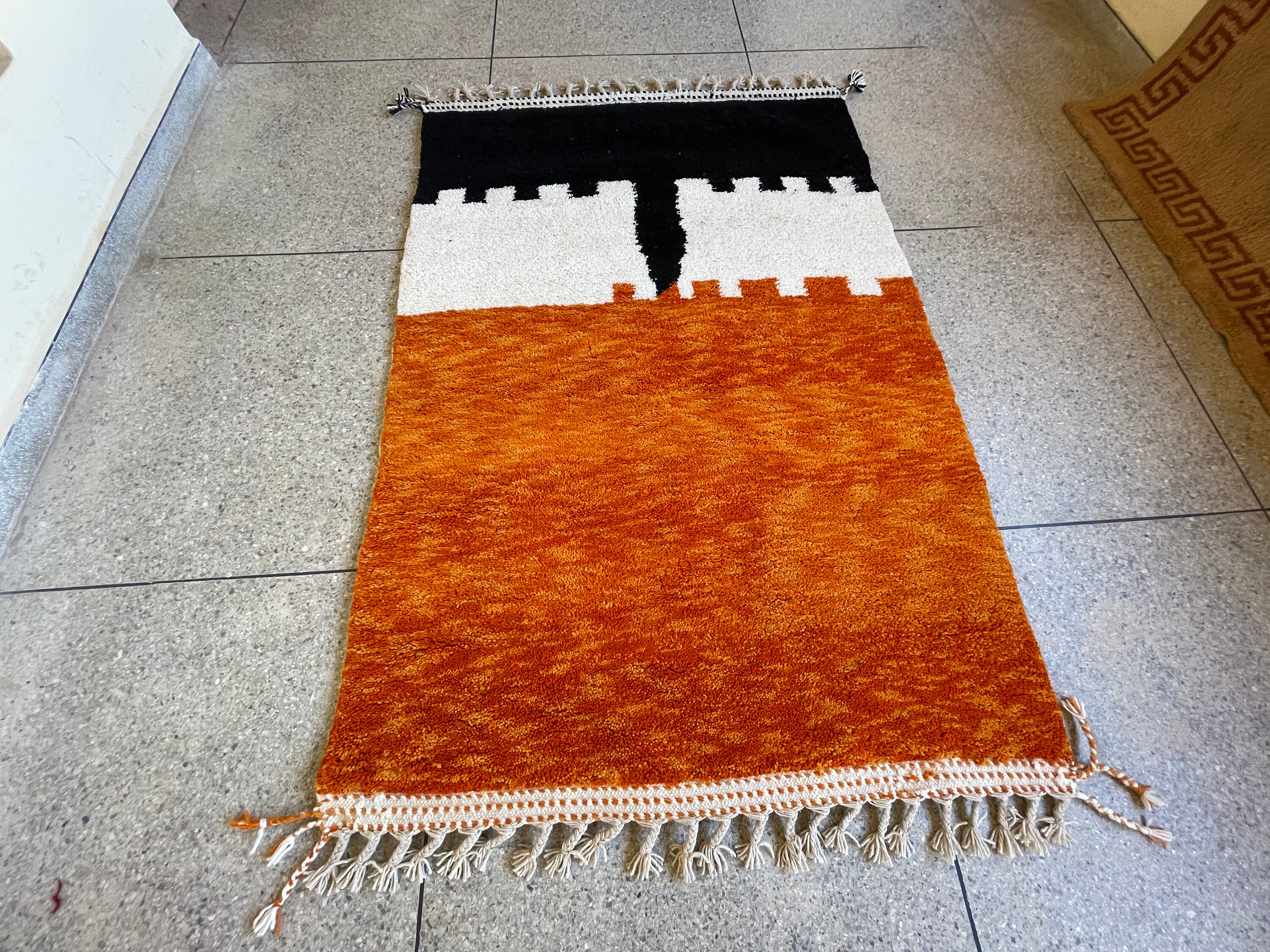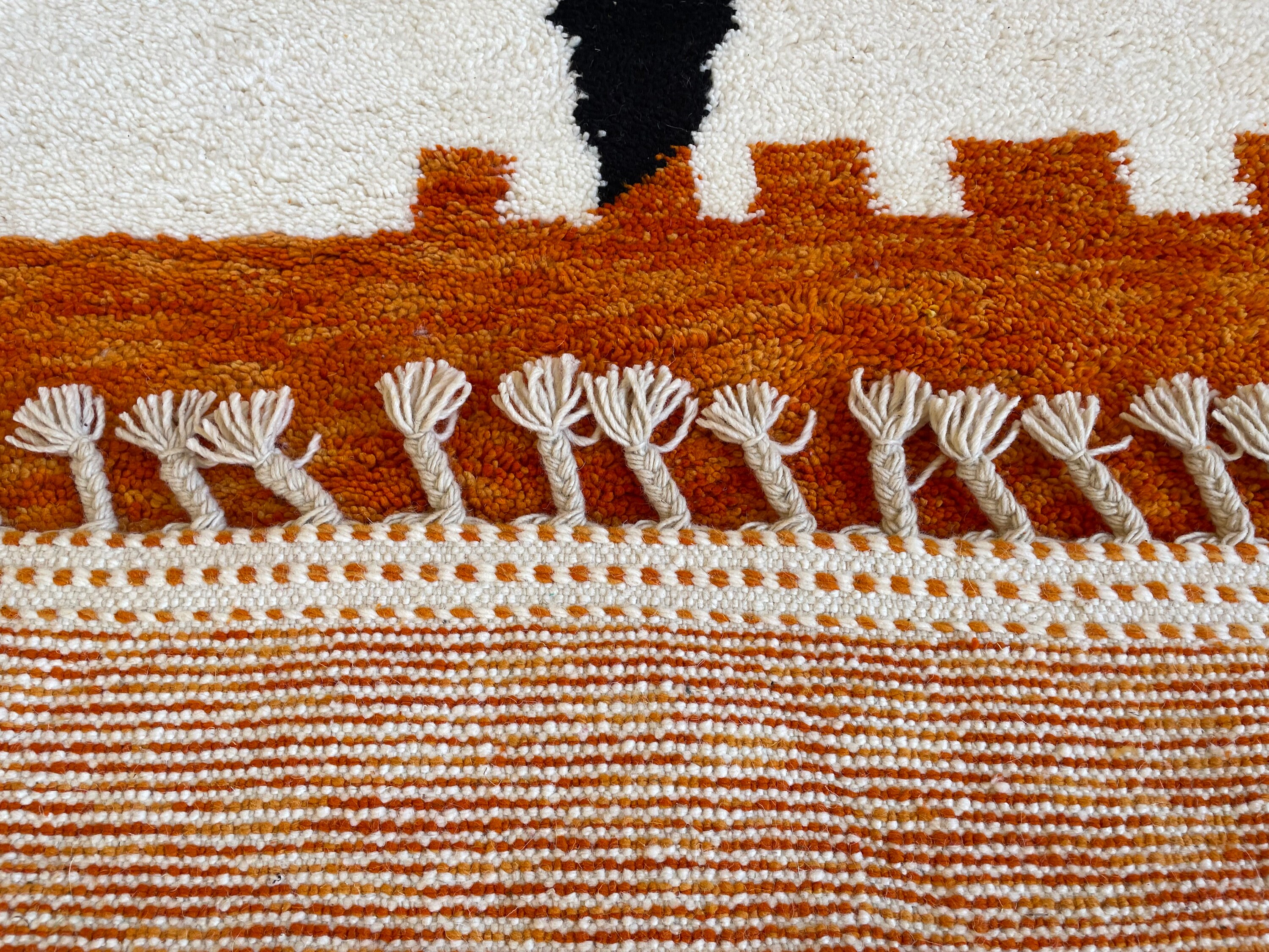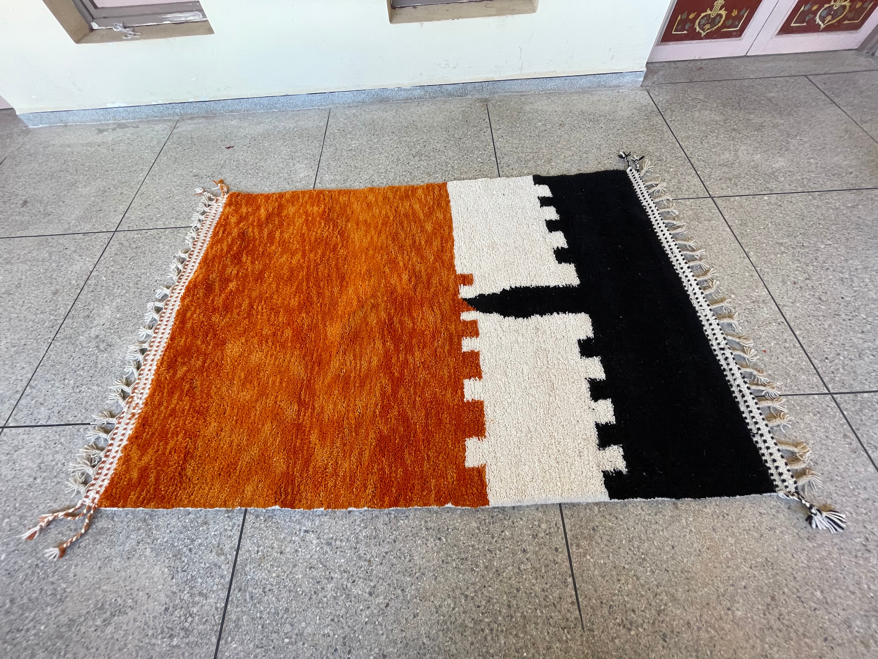 Transform your space with our beautifully crafted Moroccan rug—a stunning black and orange Beni rug that brings warmth and character to any room. This handmade shag carpet merges style with comfort, perfect for your living area or bedroom. Each authentic Berber rug showcases intricate designs, making it a true conversation piece. Elevate your home decor with this versatile area wool rug, ideal for adding that personal touch to your personalized interiors. Experience the perfect blend of art and function!