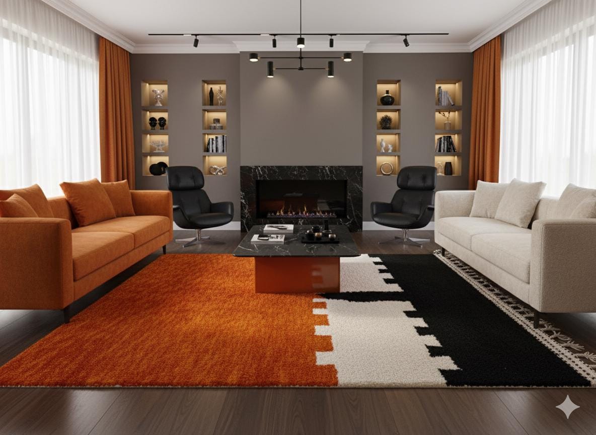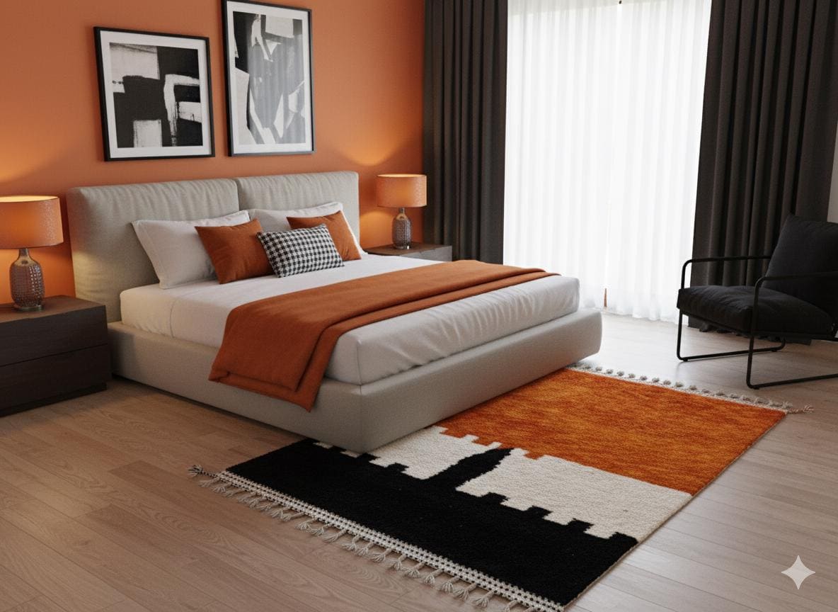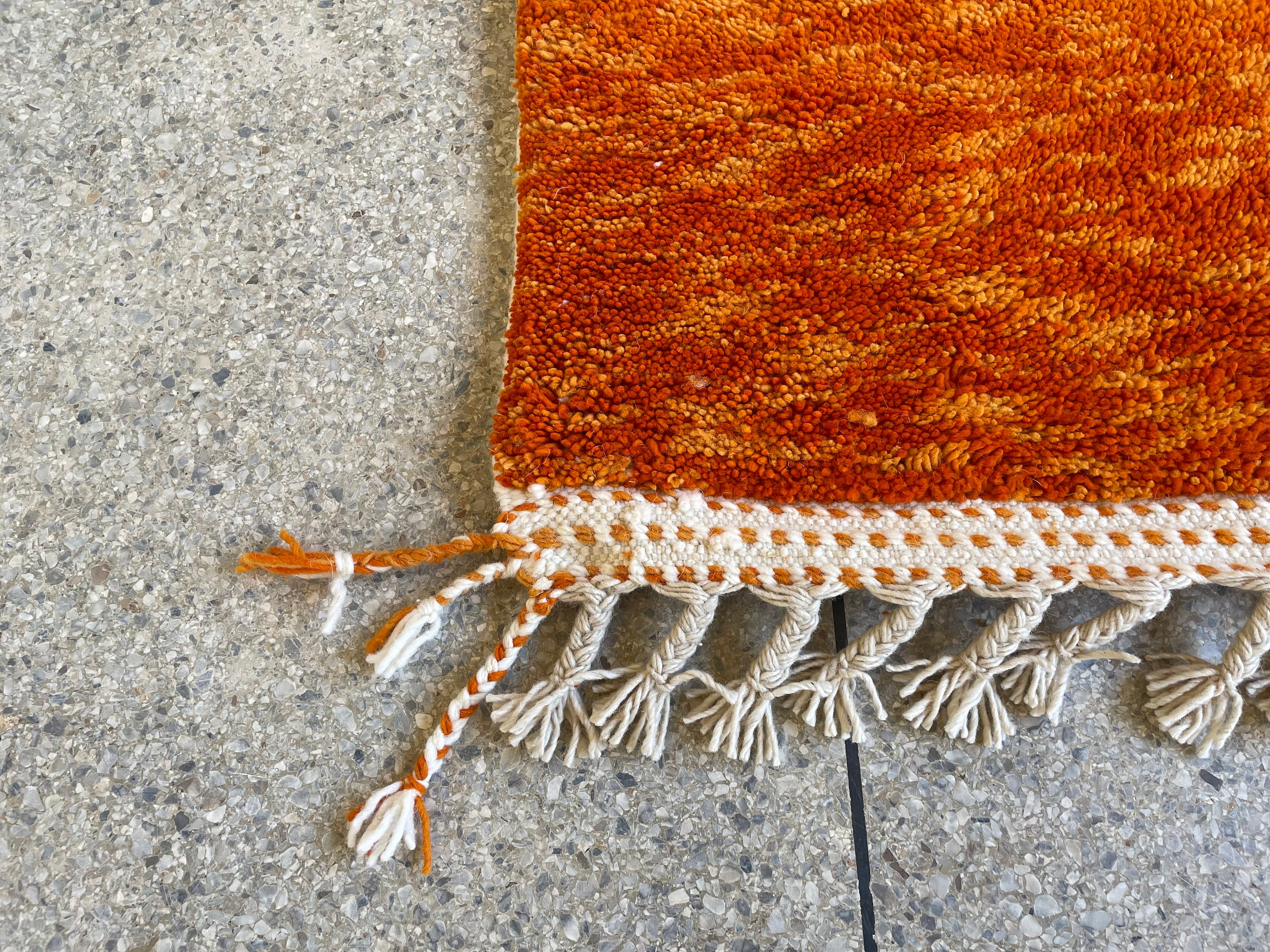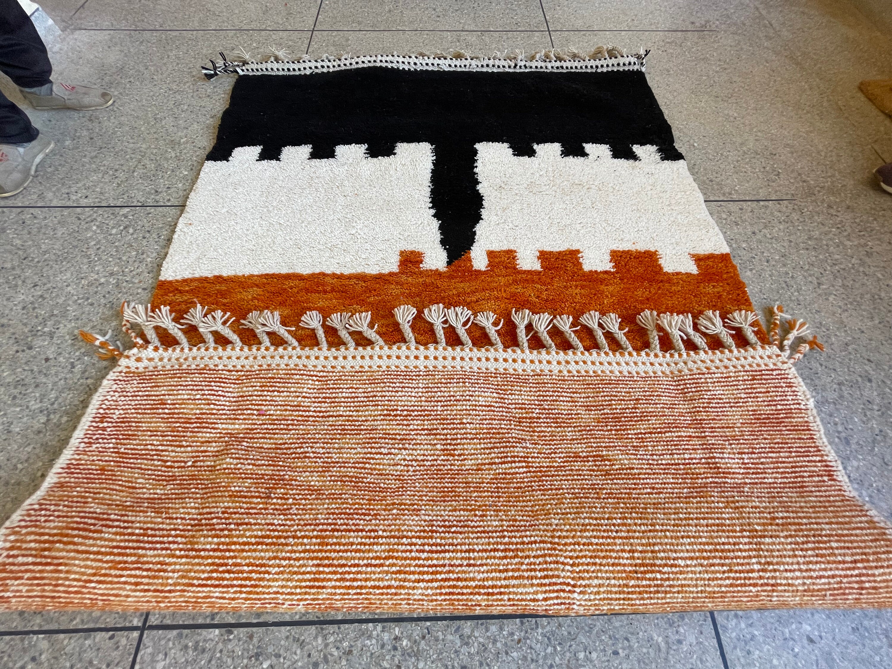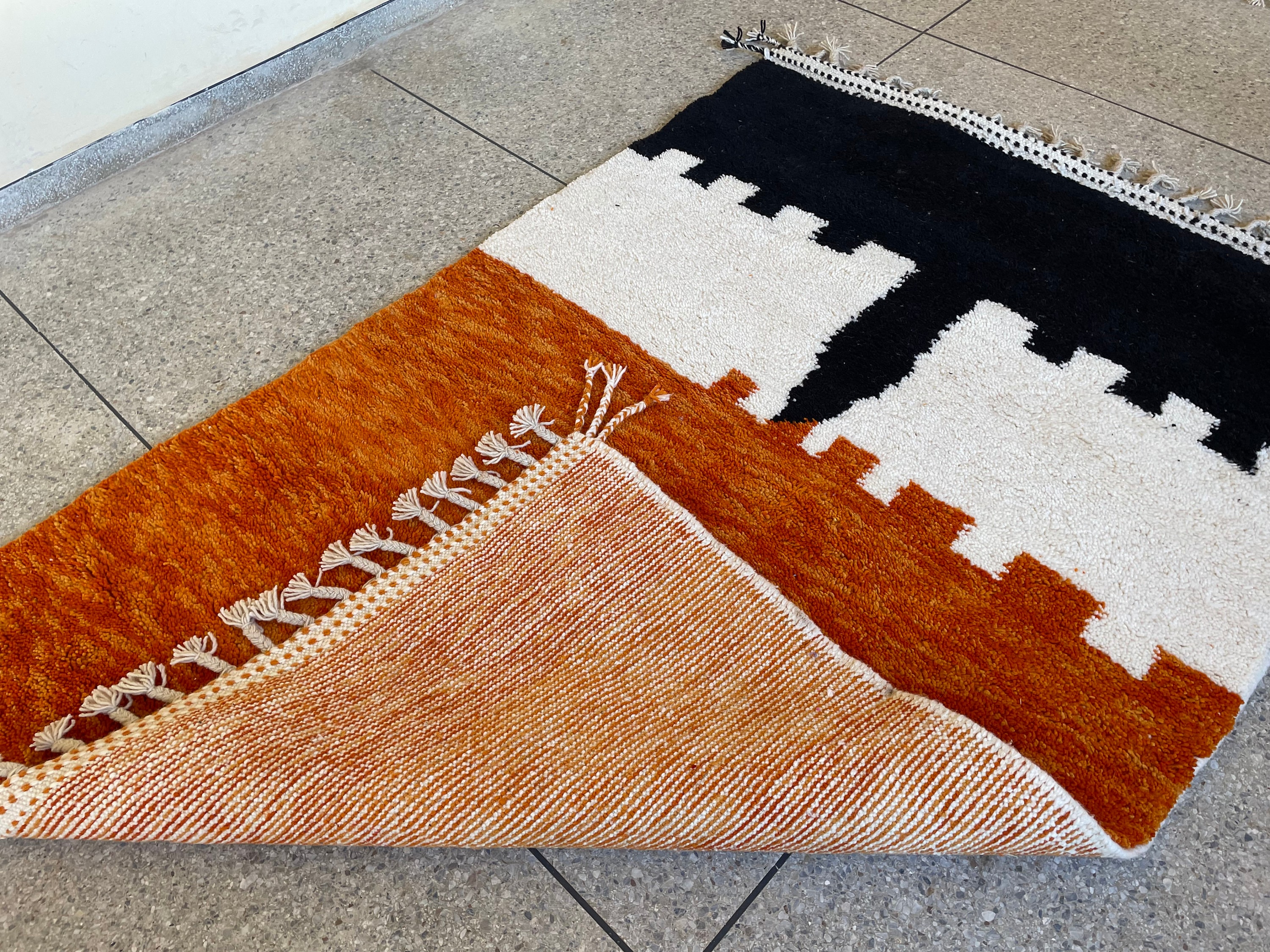Transform your space with our beautifully crafted Moroccan rug—a stunning black and orange Beni rug that brings warmth and character to any room. This handmade shag carpet merges style with comfort, perfect for your living area or bedroom. Each authentic Berber rug showcases intricate designs, making it a true conversation piece. Elevate your home decor with this versatile area wool rug, ideal for adding that personal touch to your personalized interiors. Experience the perfect blend of art and function!