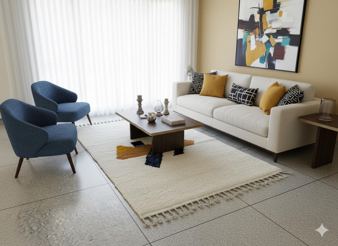 "Transform your home with a piece of Moroccan heritage that exudes both elegance and warmth 🌟. Whether placed under your sofa 🛋️, in your bedroom 🛏️, or even as a wall hanging 🖼️, these rugs invite a sense of history, style, and comfort 🧶✨ Explore our full collection of Beni Ourain, Azilal, and Boucherouite rugs for unique pieces that tell a story 📚💫.”