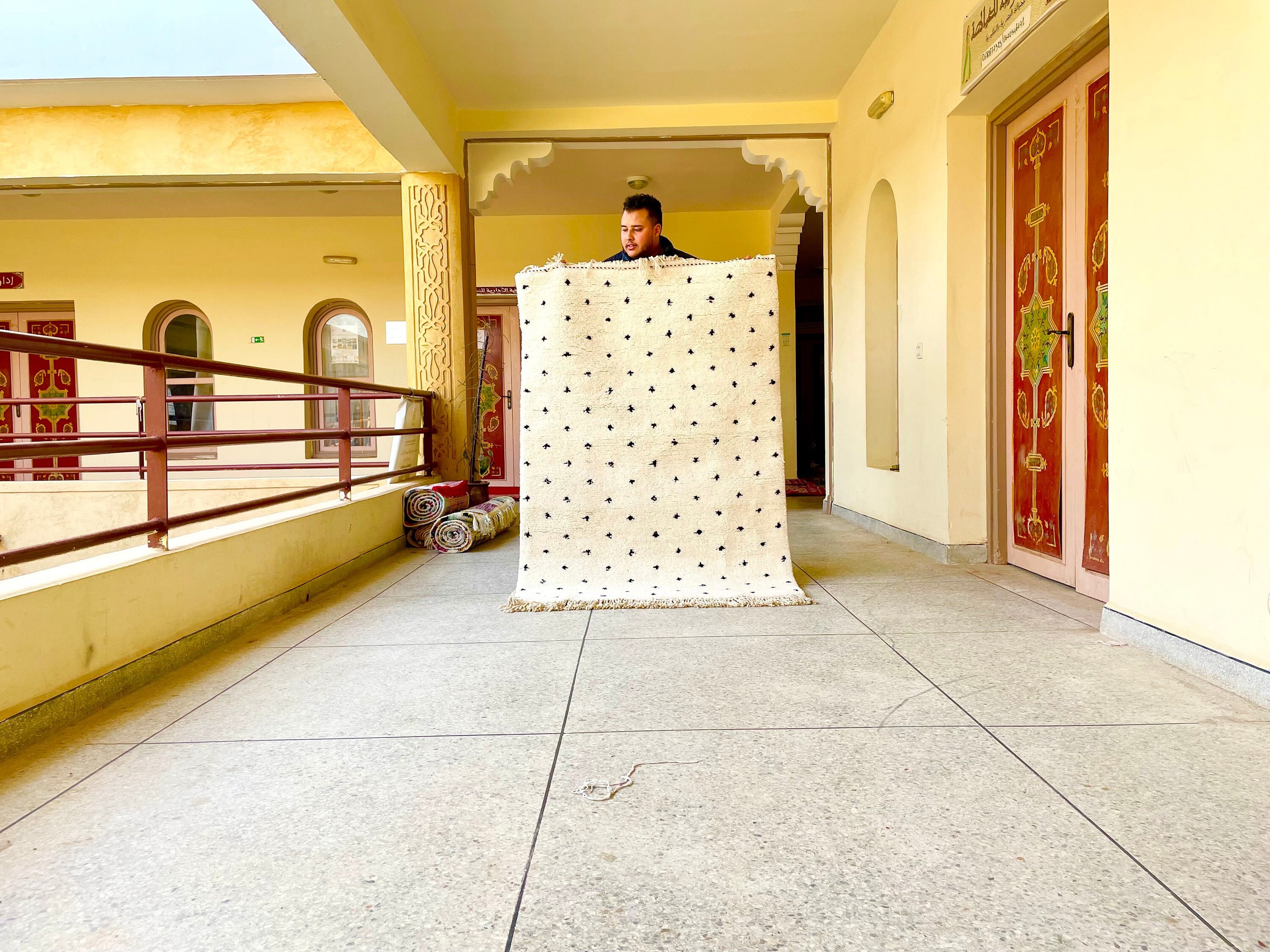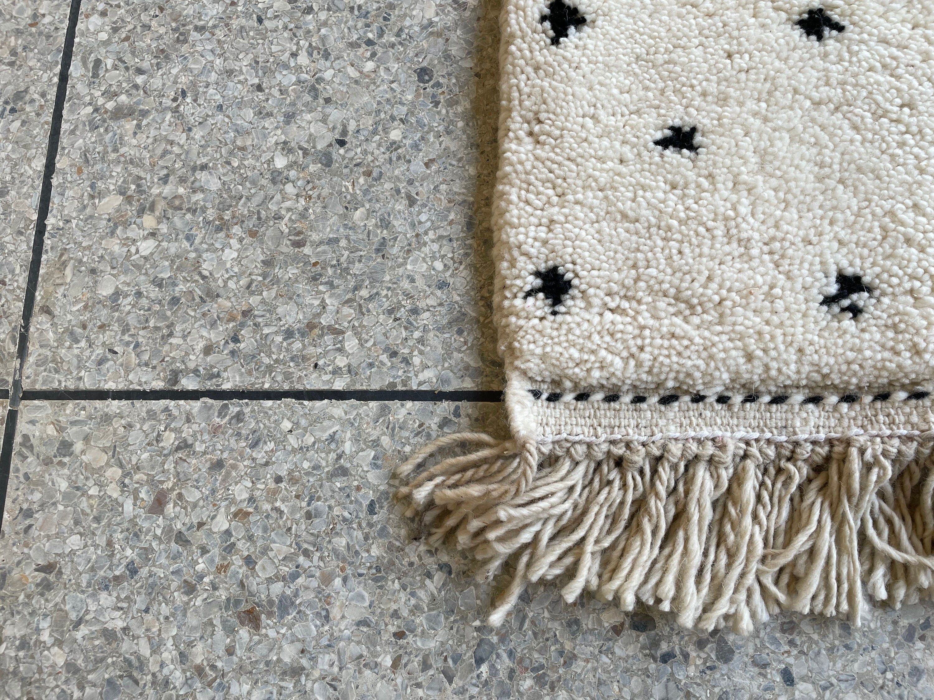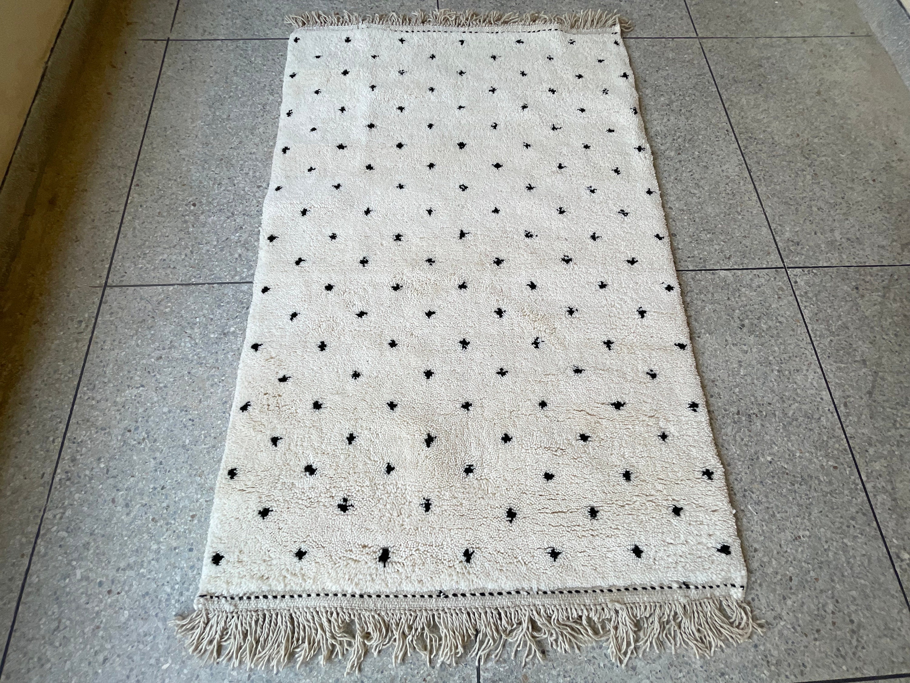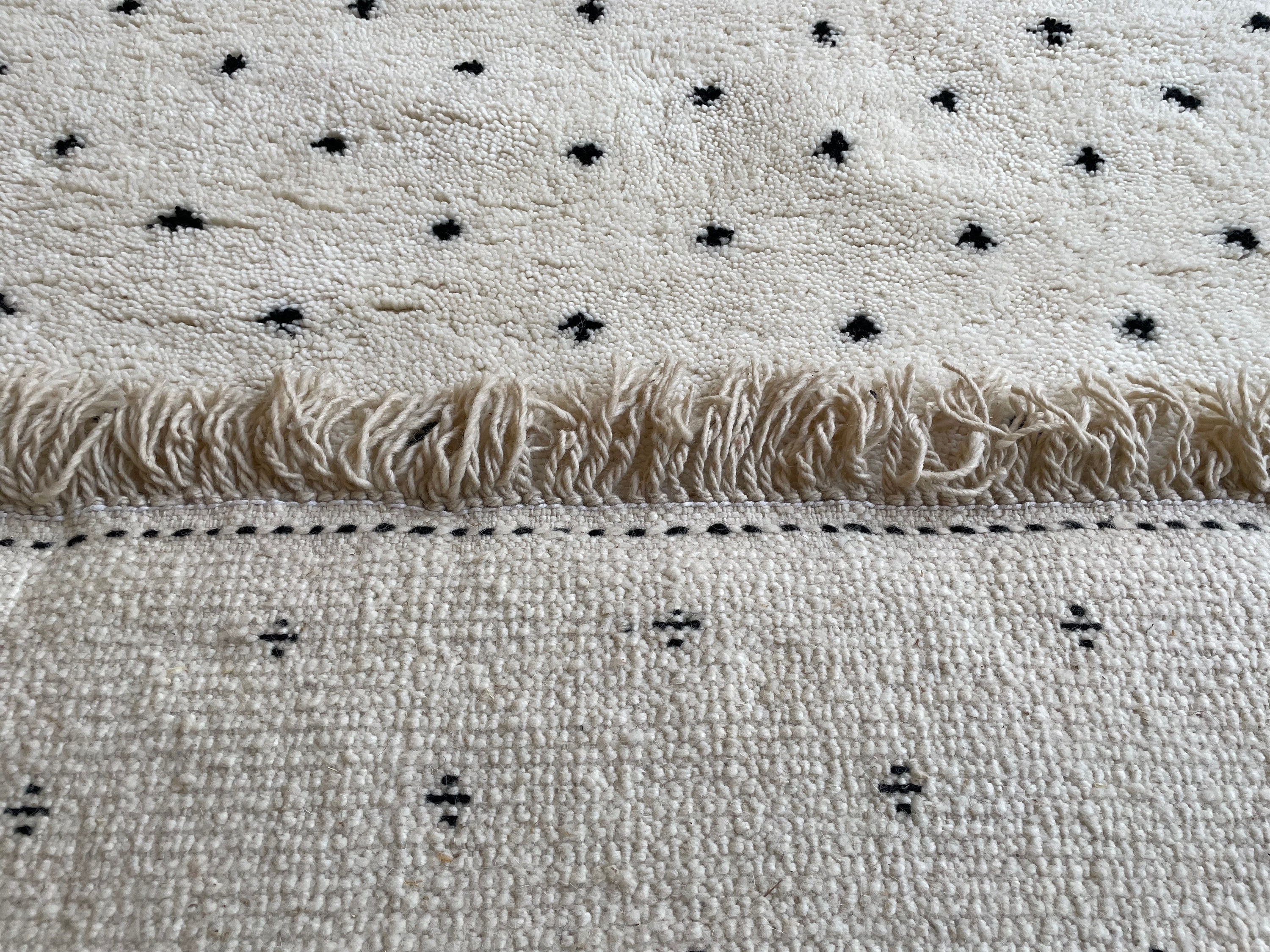 Discover our stunning Beni Ourain Moroccan Rug, a custom handmade wool Berber carpet that adds a touch of elegance to any space. This white and black dotted area rug is perfect for minimalist boho decor, effortlessly blending style and comfort. Each piece is crafted with care, showcasing unique patterns that celebrate traditional artisan techniques. Elevate your home aesthetics with this versatile and cozy rug, ideal for living rooms, bedrooms, or cozy nooks. Transform your space today!