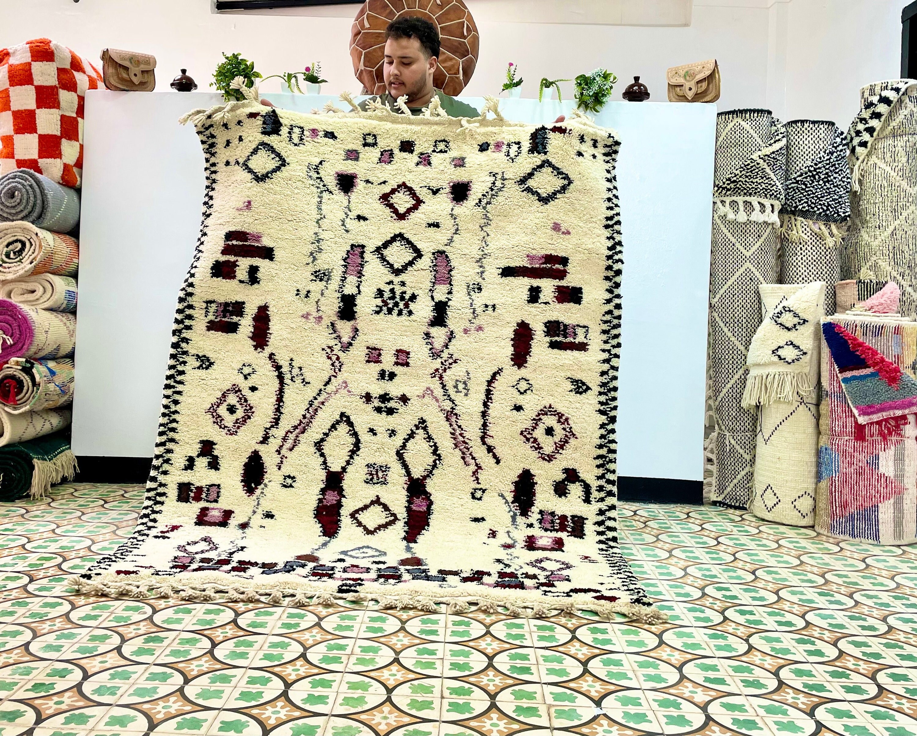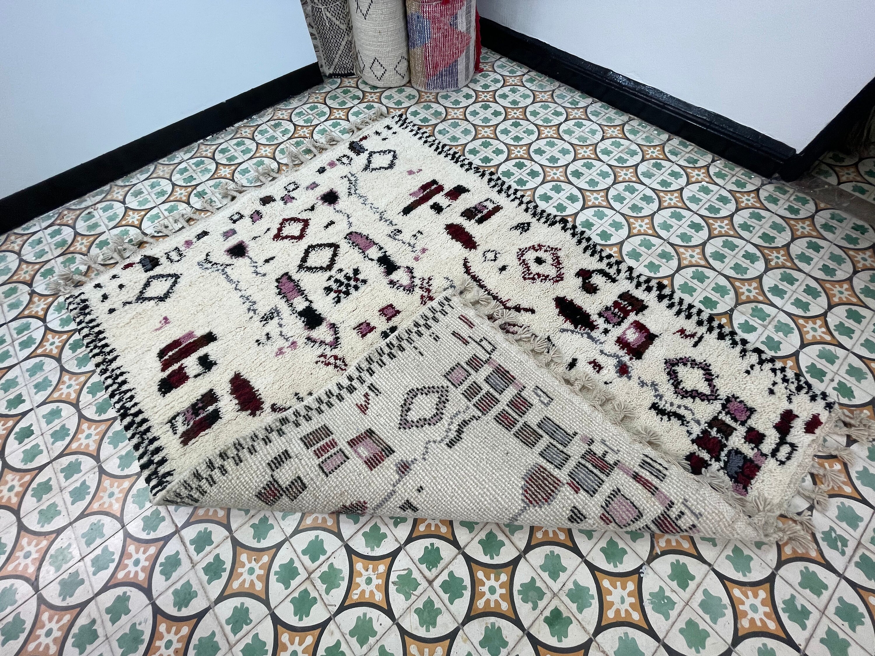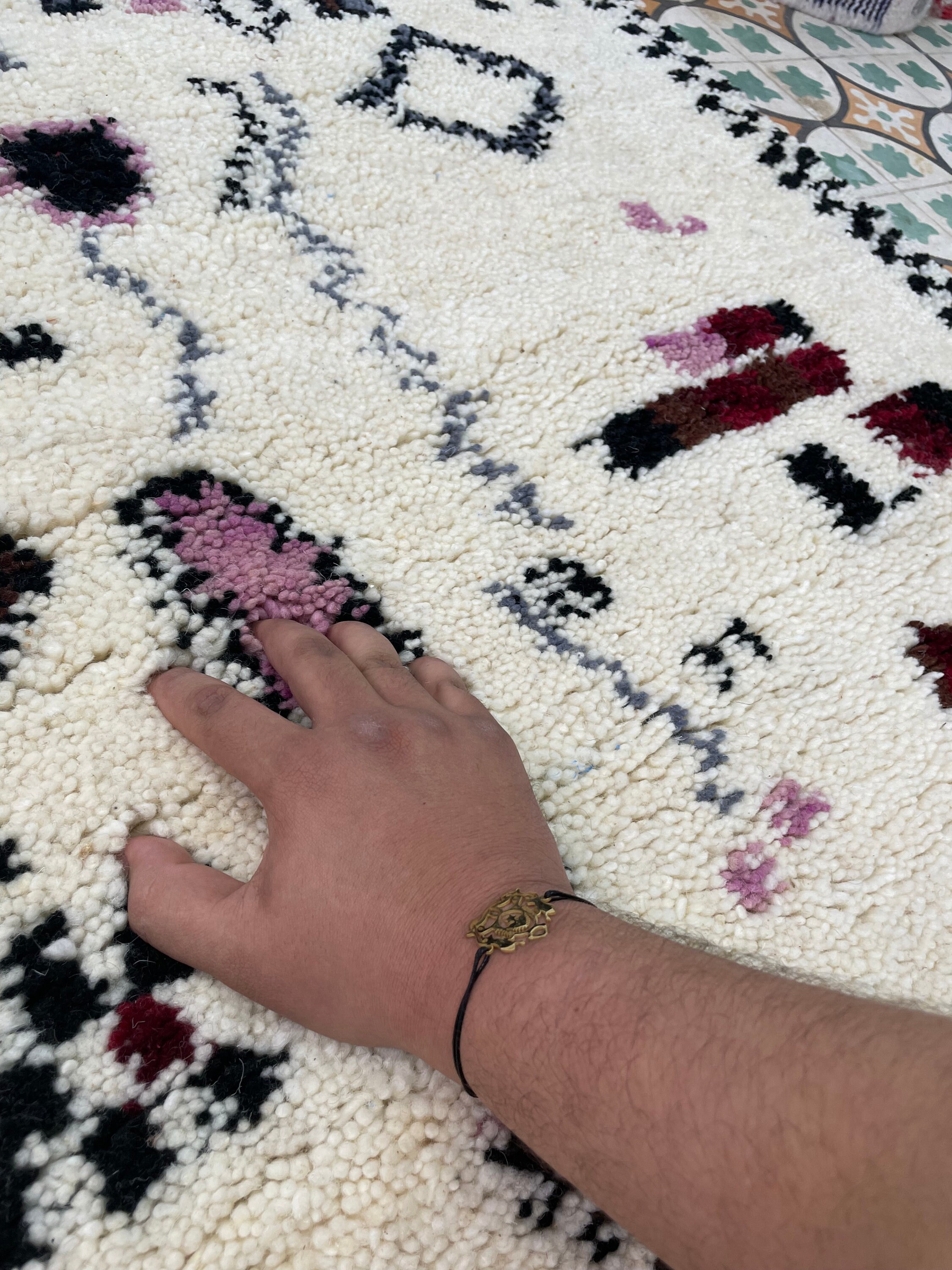 This fabulous Moroccan Rug that will give your room both a cozy feeling and stylish is made from 100% Natural sheep wool, It's Very plush and comfy to walk on, actually It's Heaven for your feet.