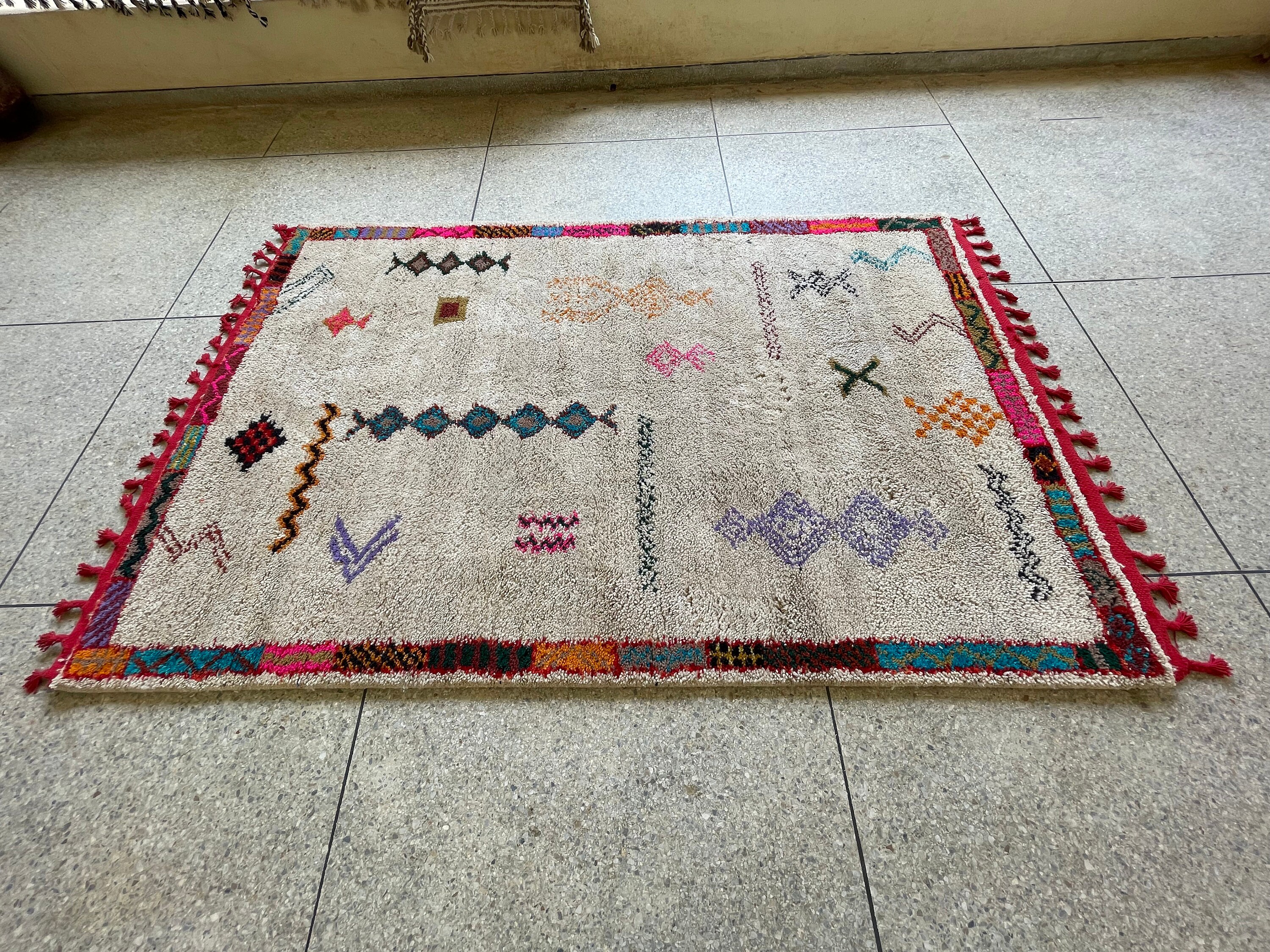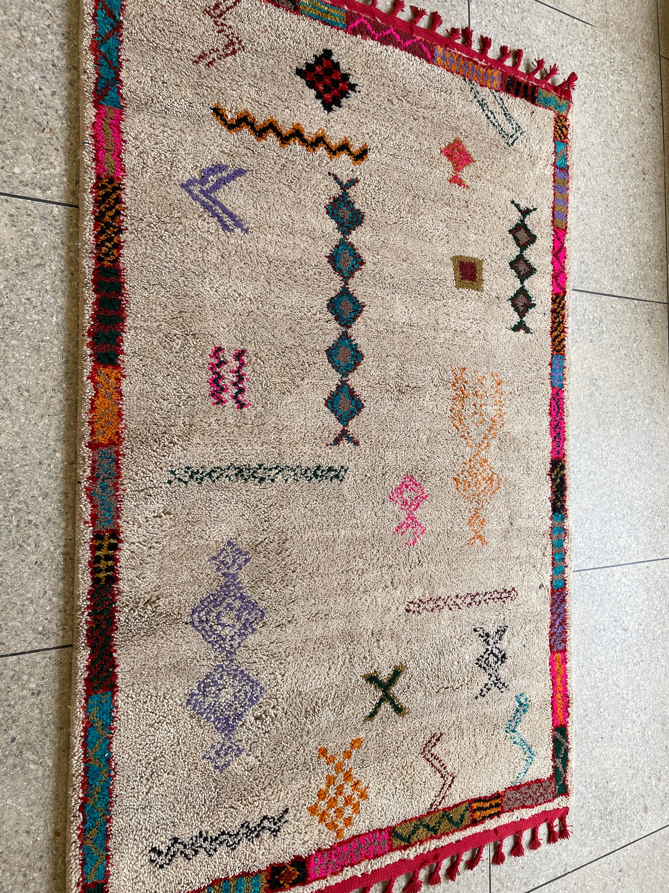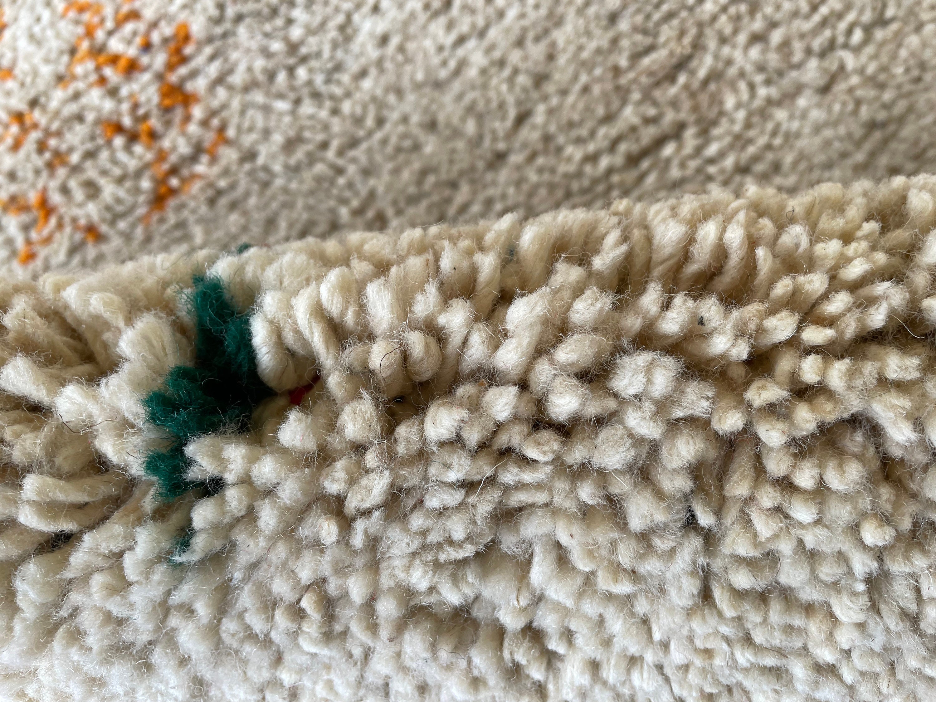 This fabulous Moroccan Rug that will give your room both a cozy feeling and stylish is made from 100% Natural sheep wool, It's Very plush and comfy to walk on, actually It's Heaven for your feet.
