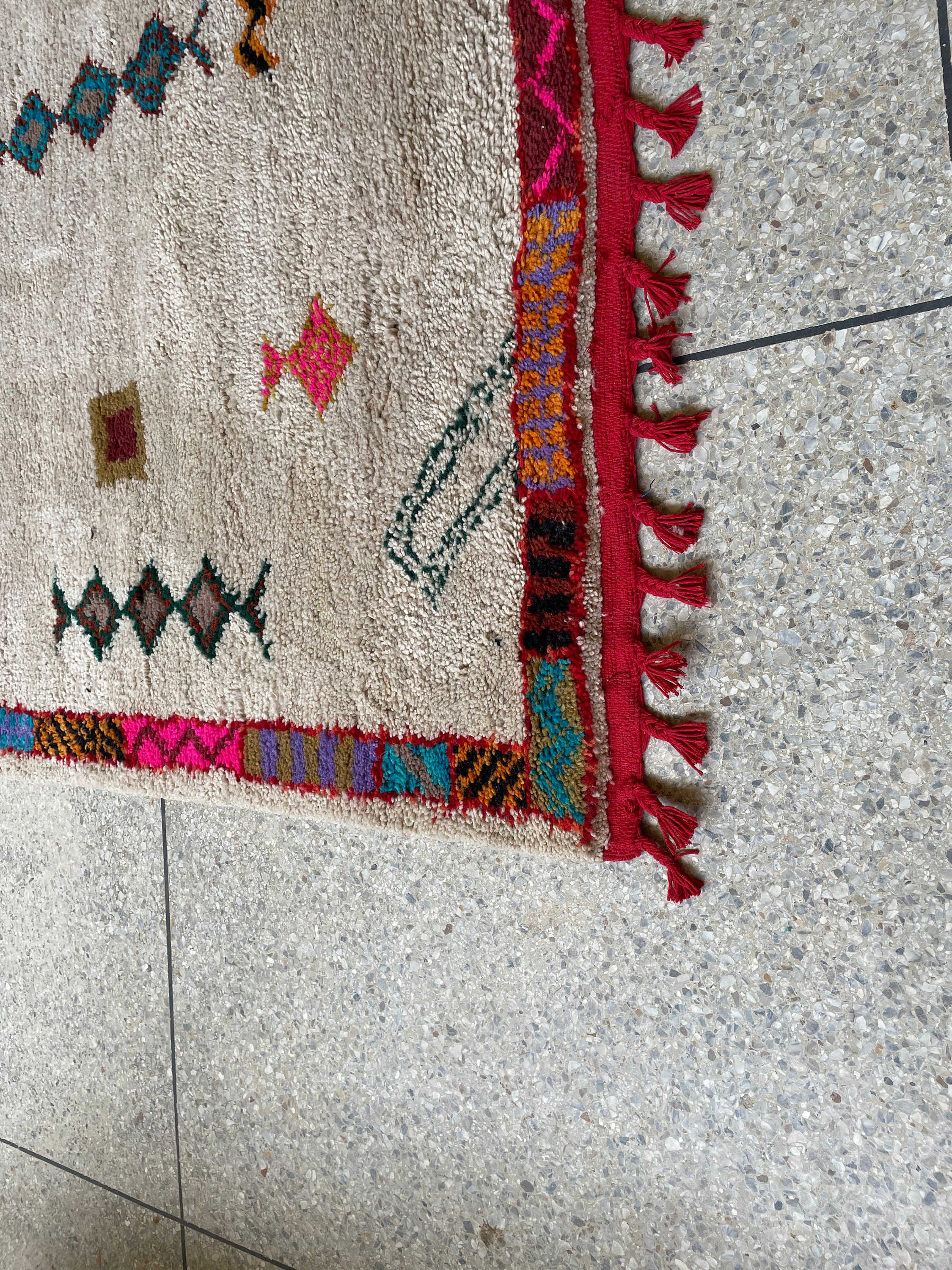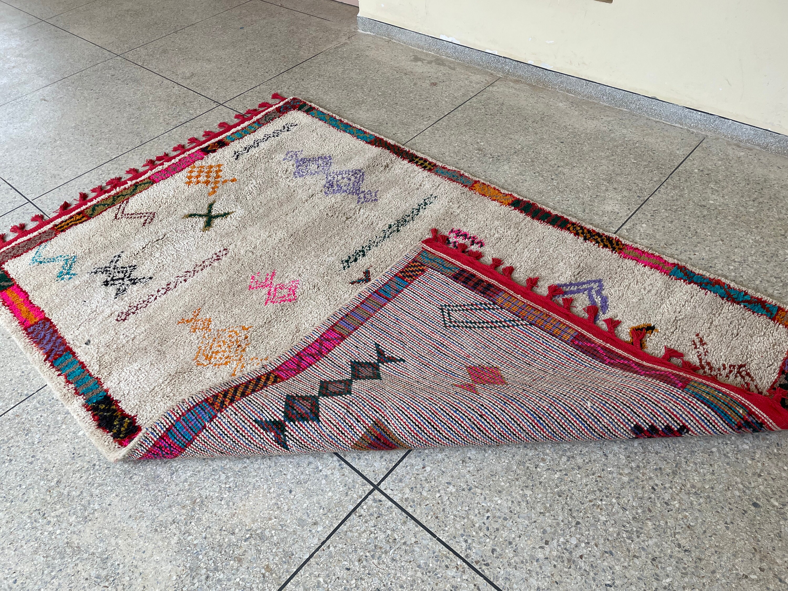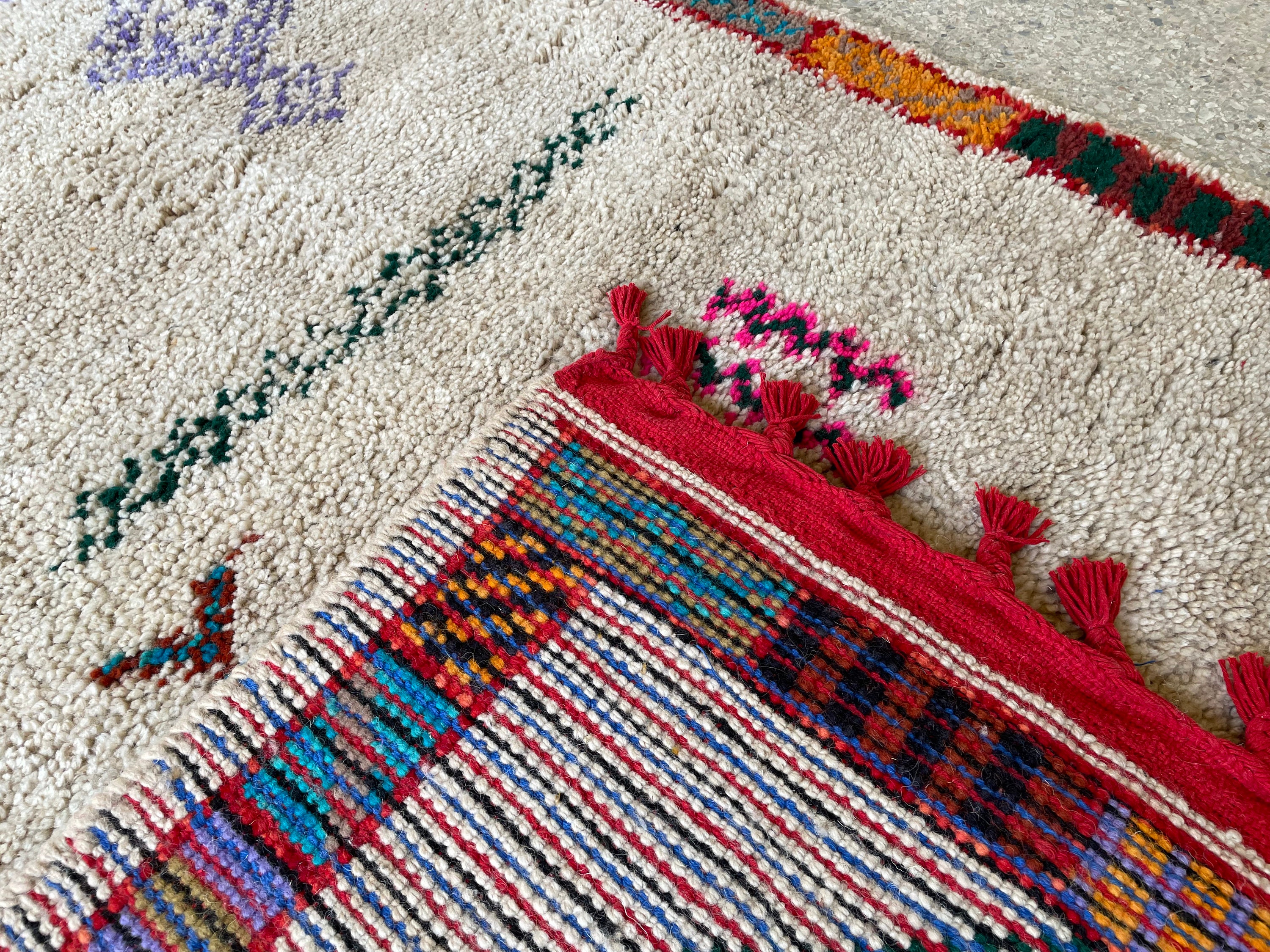 This fabulous Moroccan Rug that will give your room both a cozy feeling and stylish is made from 100% Natural sheep wool, It's Very plush and comfy to walk on, actually It's Heaven for your feet.