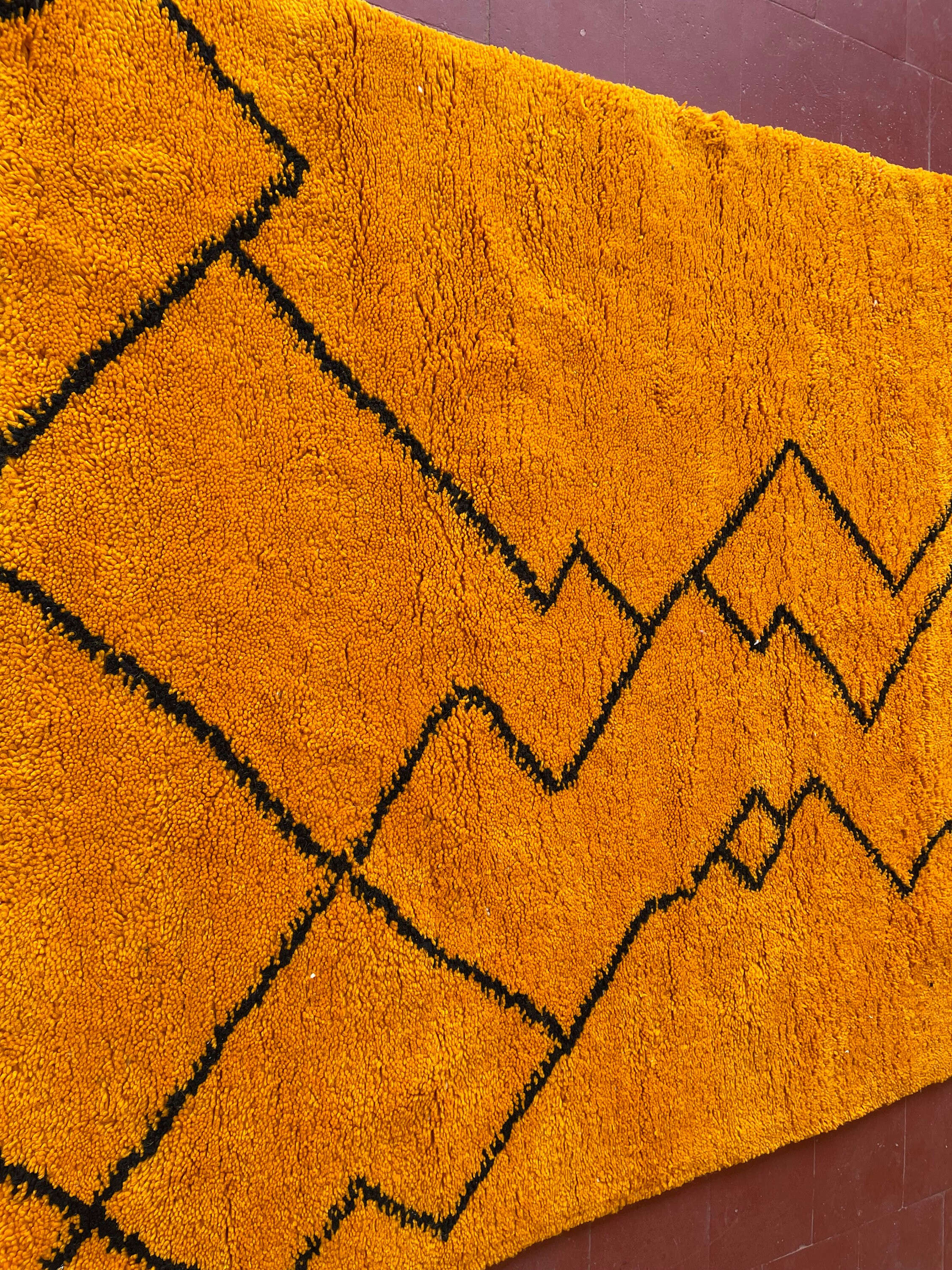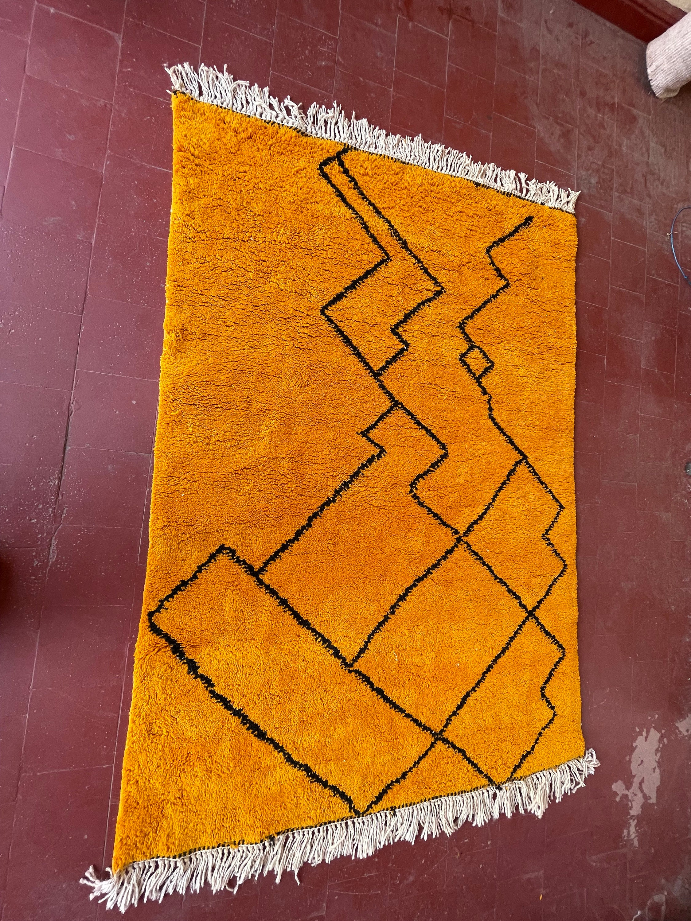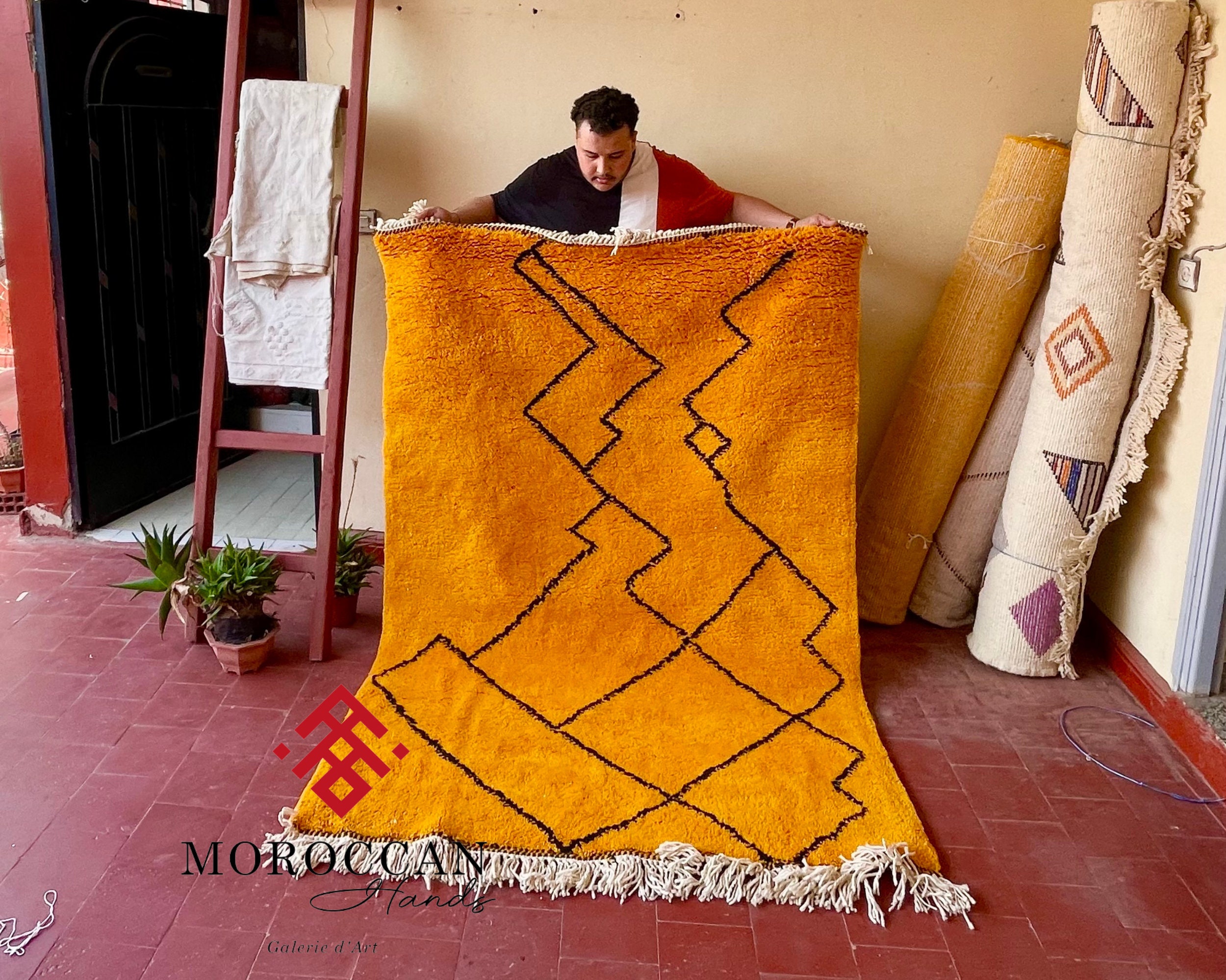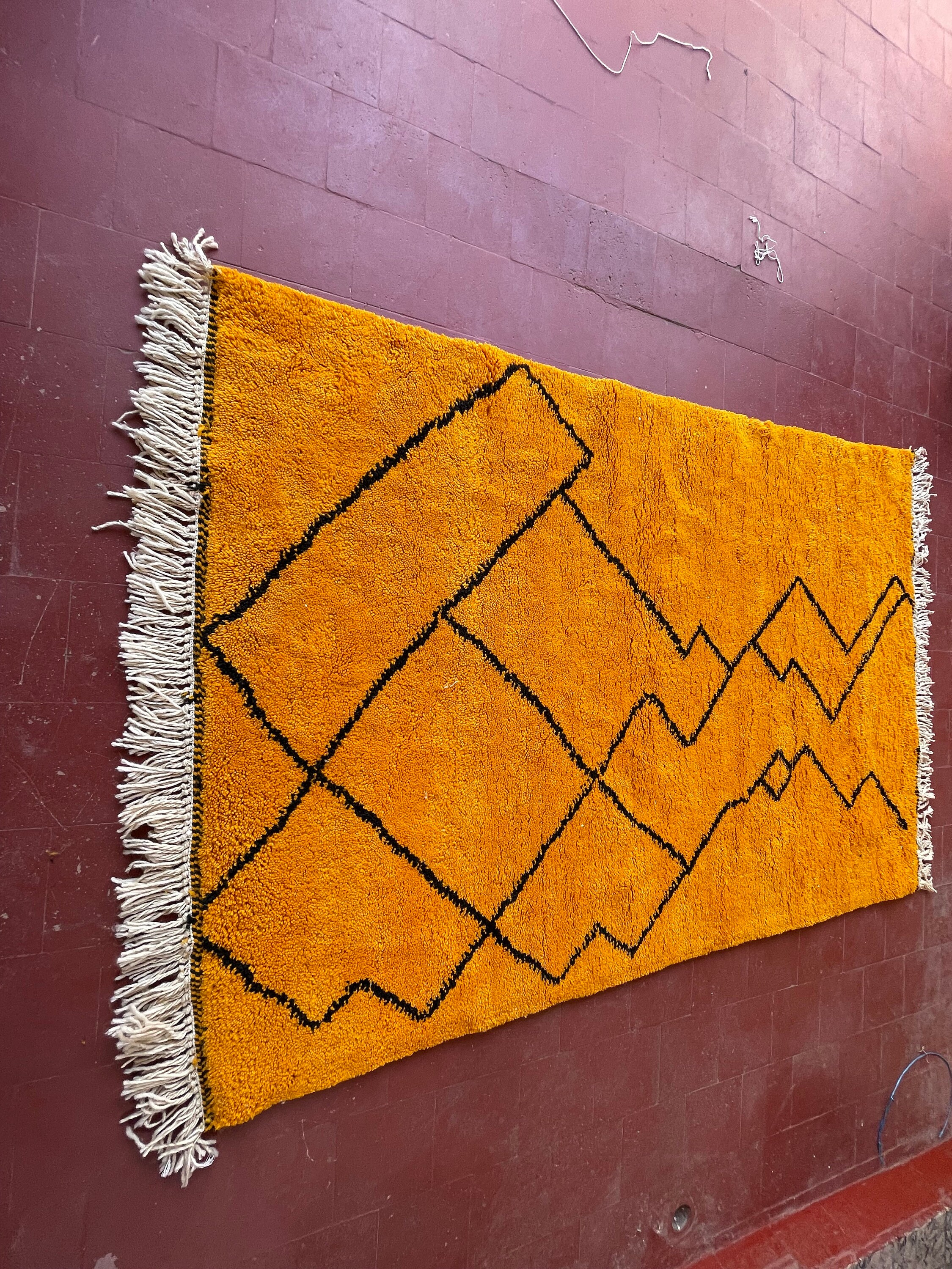 Elevate your space with this bold and stylish Beni Ourain rug! Handwoven from premium sheep wool, this Moroccan masterpiece features striking orange and black geometric stripes, adding warmth and character to any living room. Whether you're embracing Scandinavian minimalism or eclectic bohemian decor, this unique area rug brings a touch of Berber heritage and timeless craftsmanship to your home. Soft, durable, and one-of-a-kind—your perfect statement piece awaits!