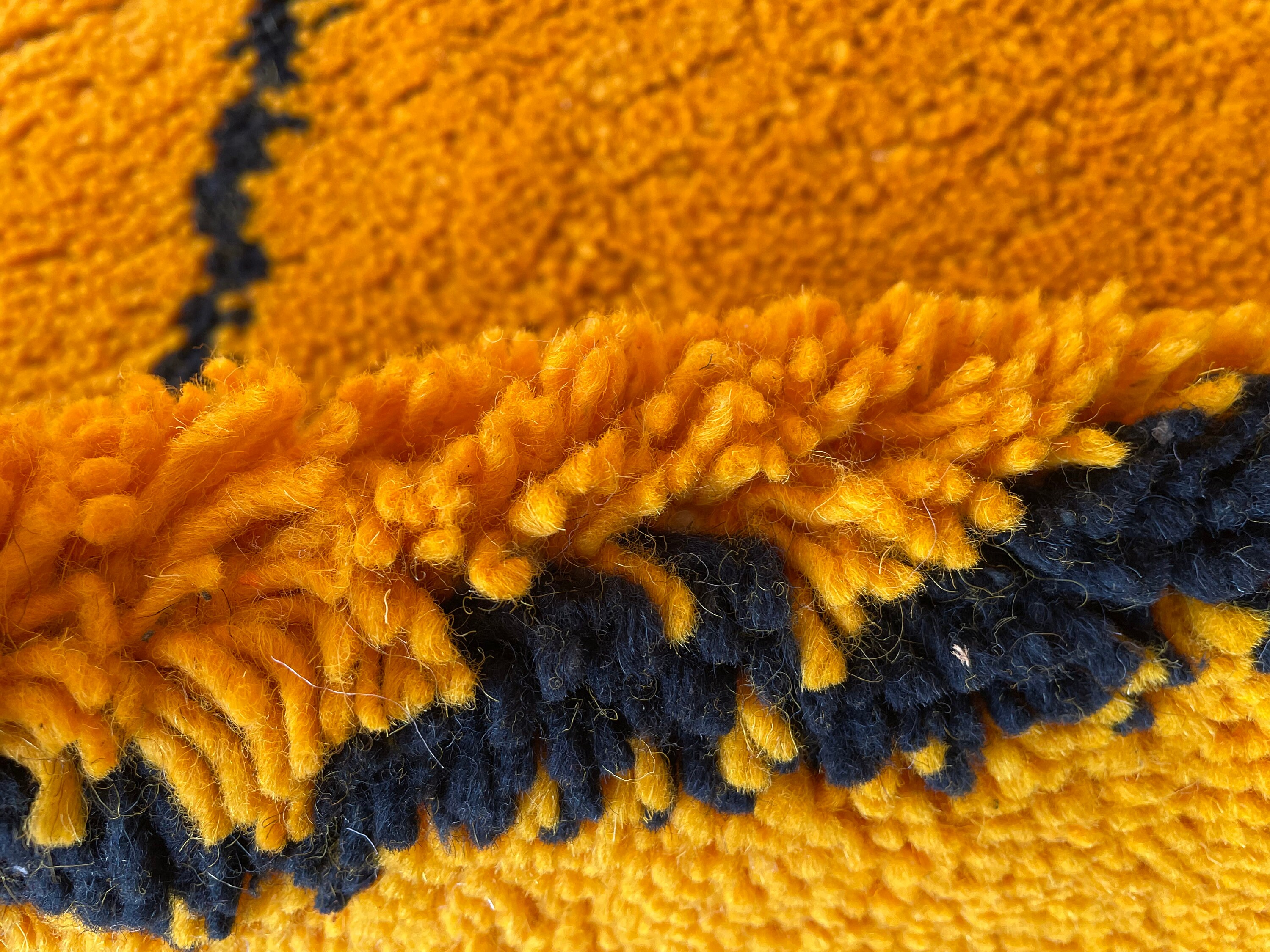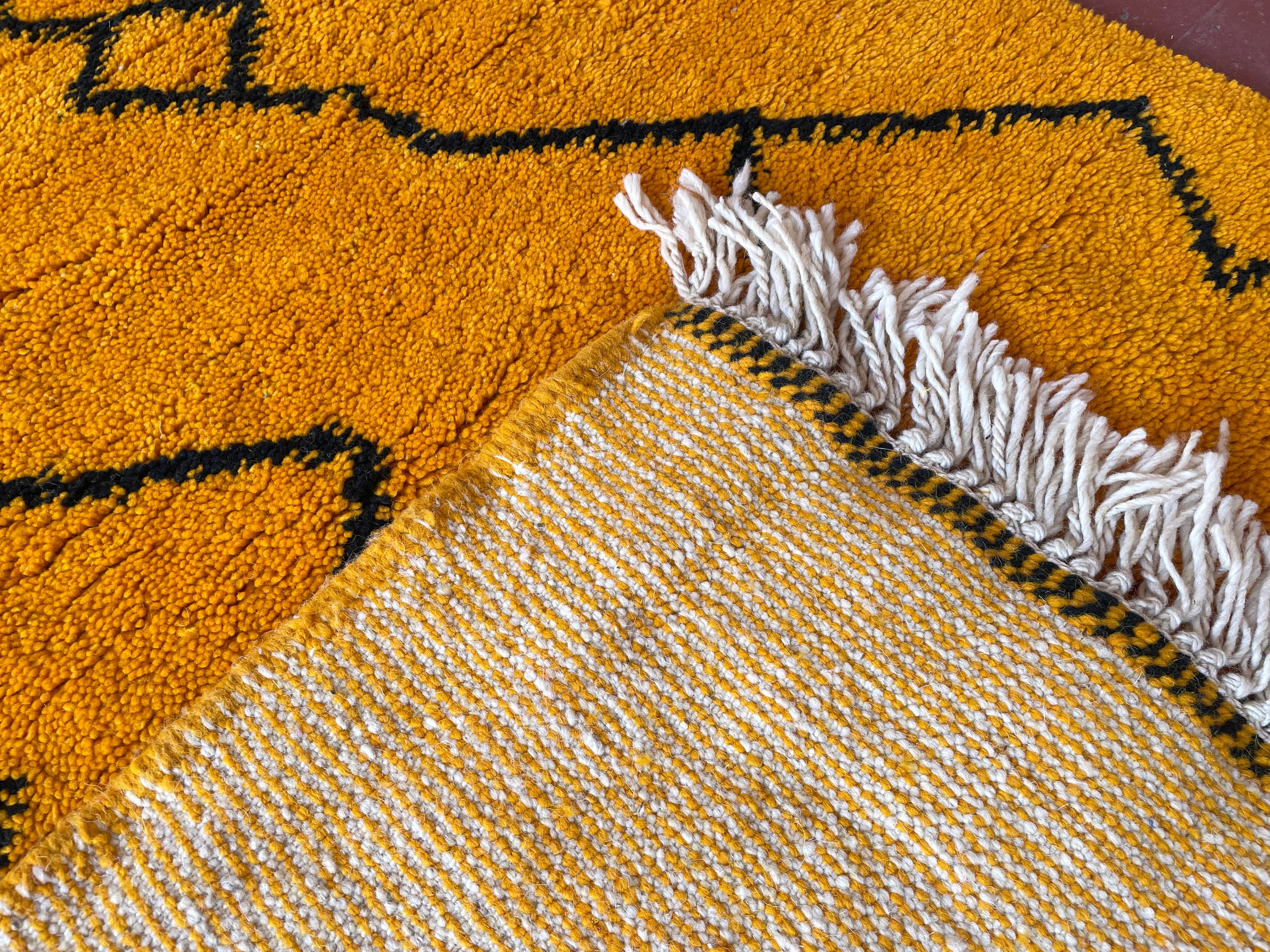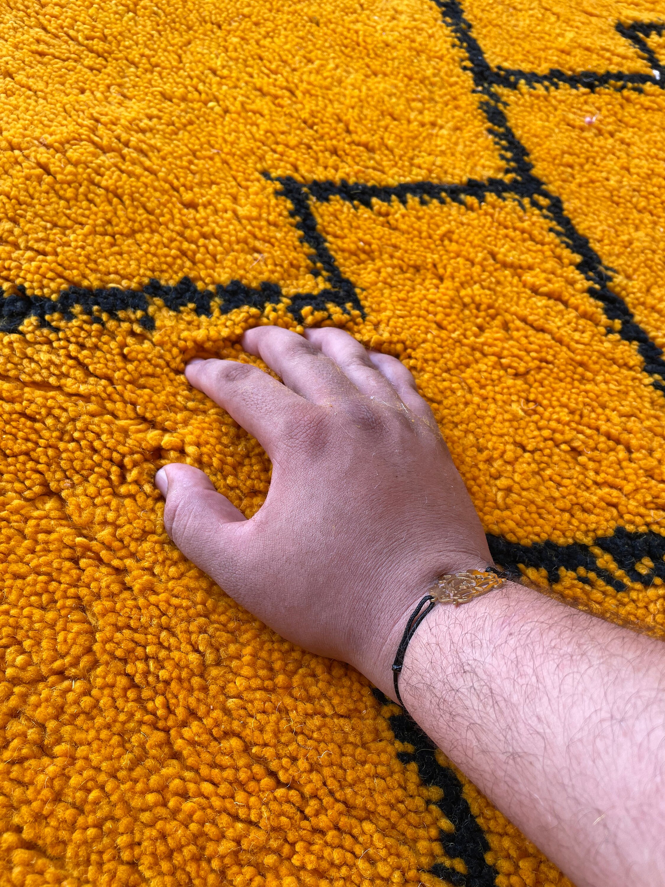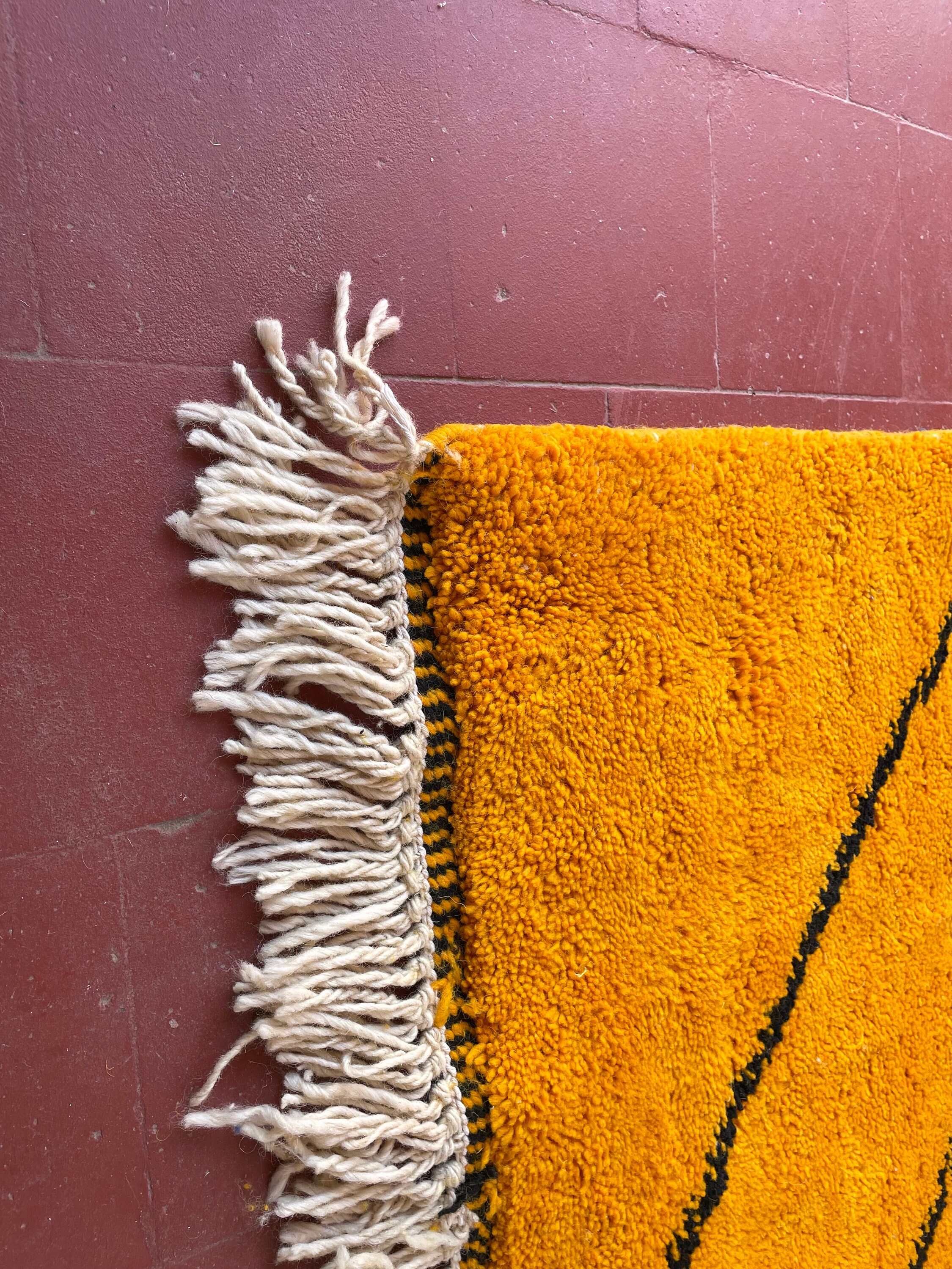 Elevate your space with this bold and stylish Beni Ourain rug! Handwoven from premium sheep wool, this Moroccan masterpiece features striking orange and black geometric stripes, adding warmth and character to any living room. Whether you're embracing Scandinavian minimalism or eclectic bohemian decor, this unique area rug brings a touch of Berber heritage and timeless craftsmanship to your home. Soft, durable, and one-of-a-kind—your perfect statement piece awaits!