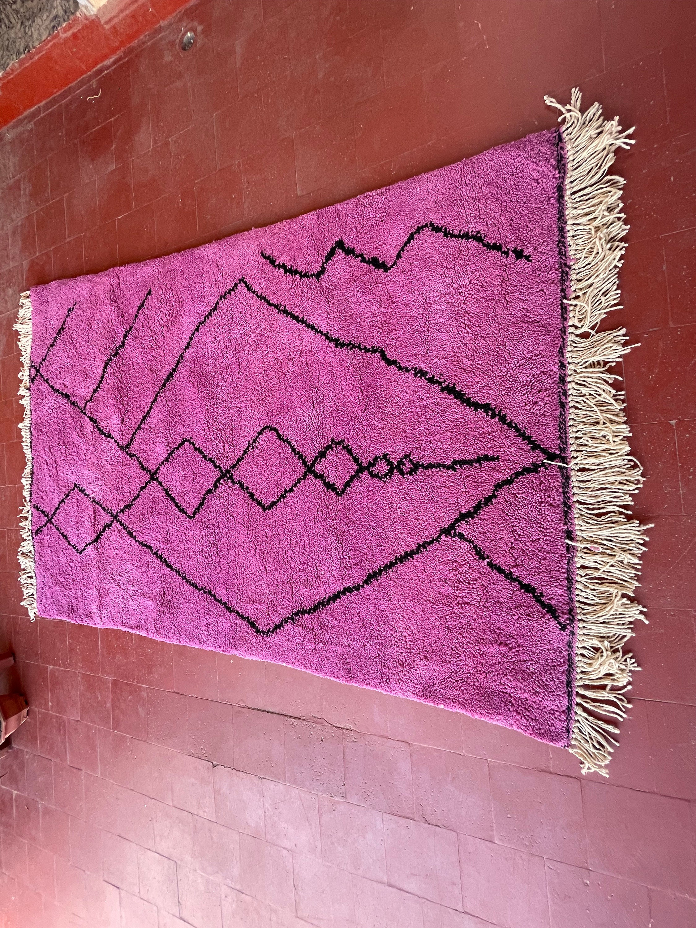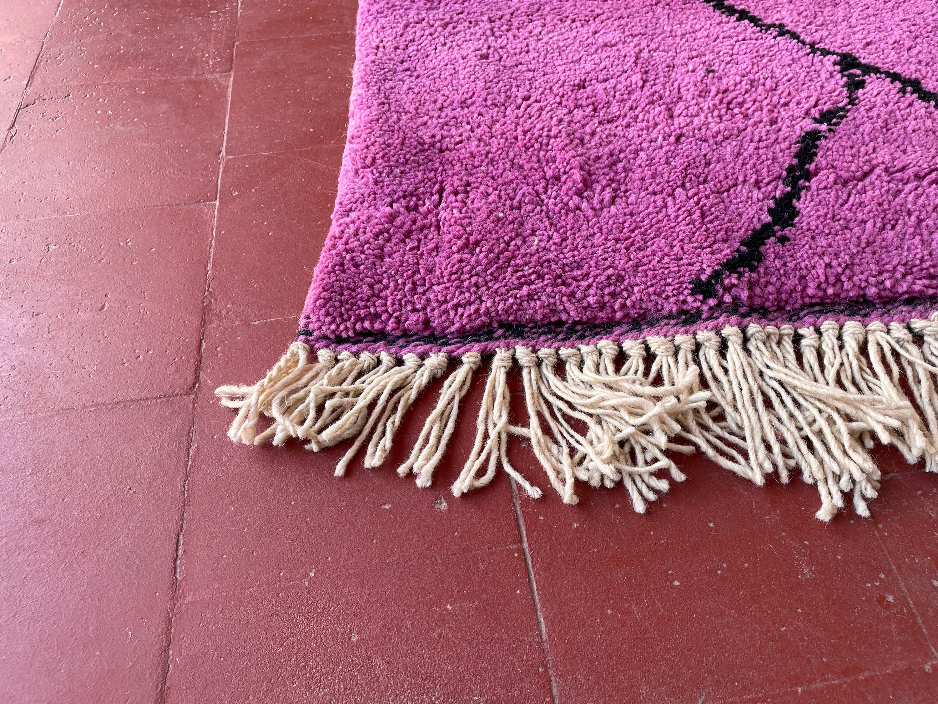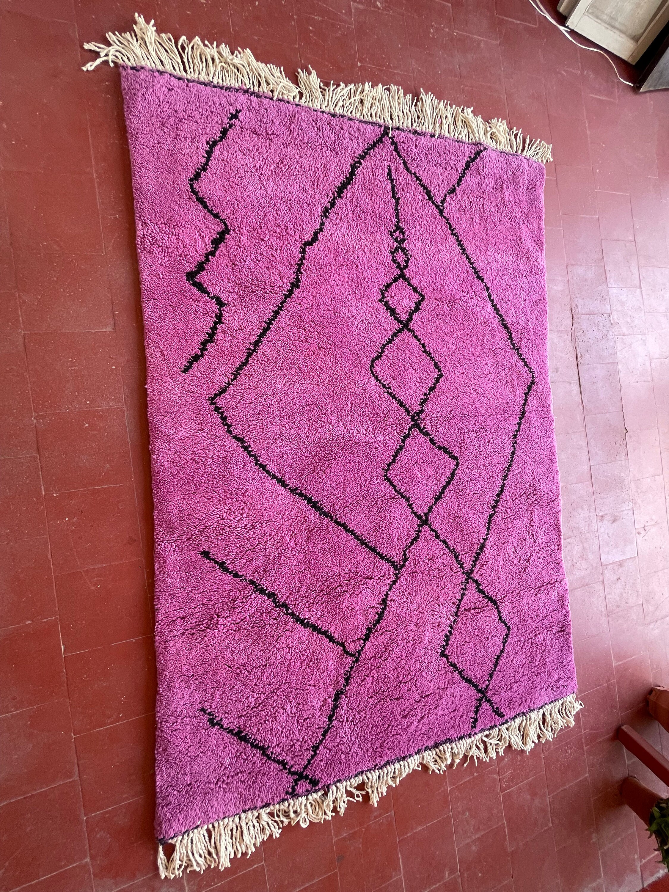Elevate your space with our PRETTY BENI OURAIN Rug, a stunning Moroccan Handmade Rug that combines artistry and comfort. Featuring a unique blend of purple and black in an abstract design, this Berber Rug is perfect for adding a touch of personality to any room. Handwoven with care, our Funky Wool Rug is not just a statement piece; it's a cozy addition to your home. Celebrate craftsmanship and style with this exquisite Handmade Rug that brings warmth and elegance to your decor. Transform your home today!