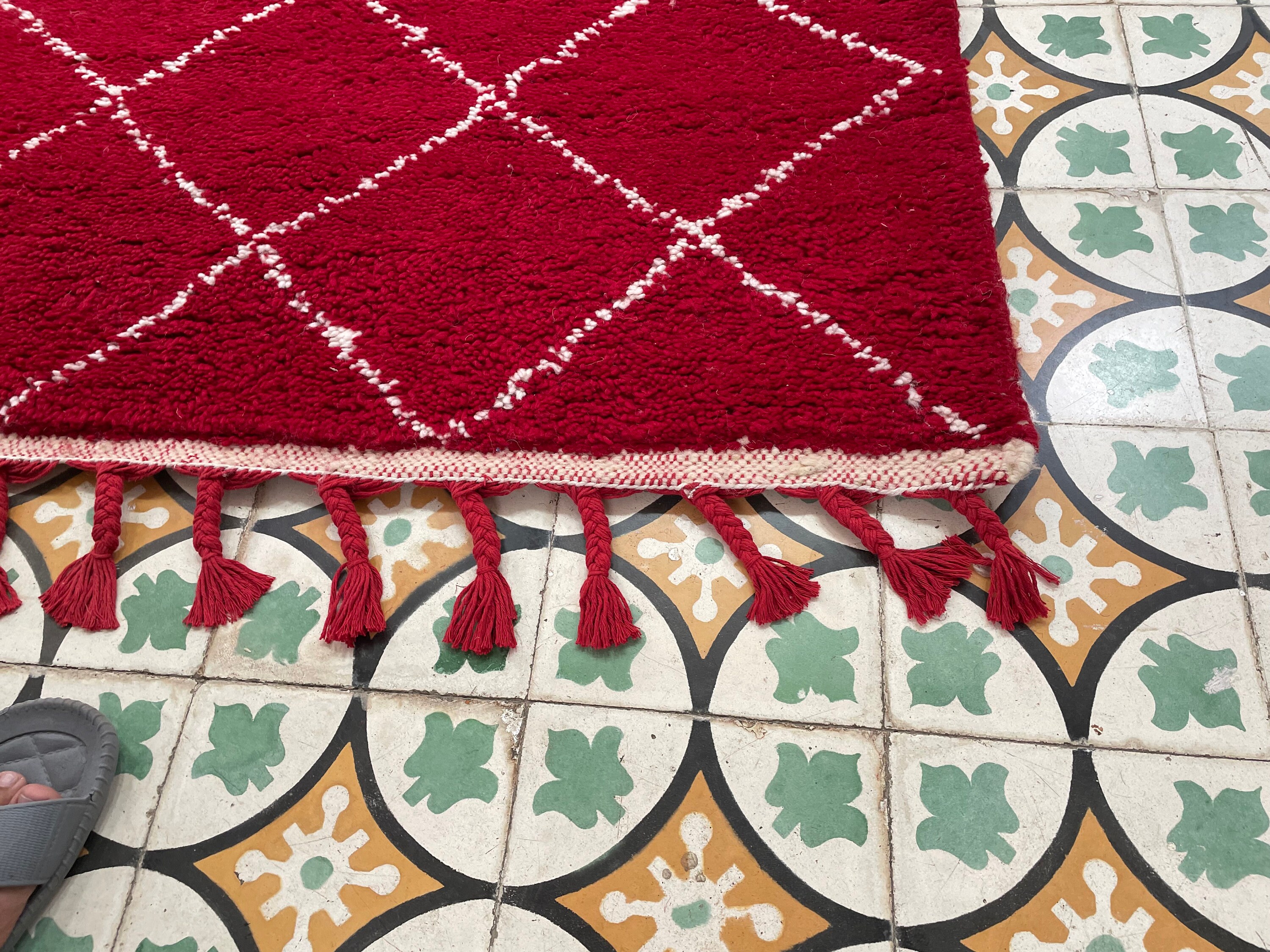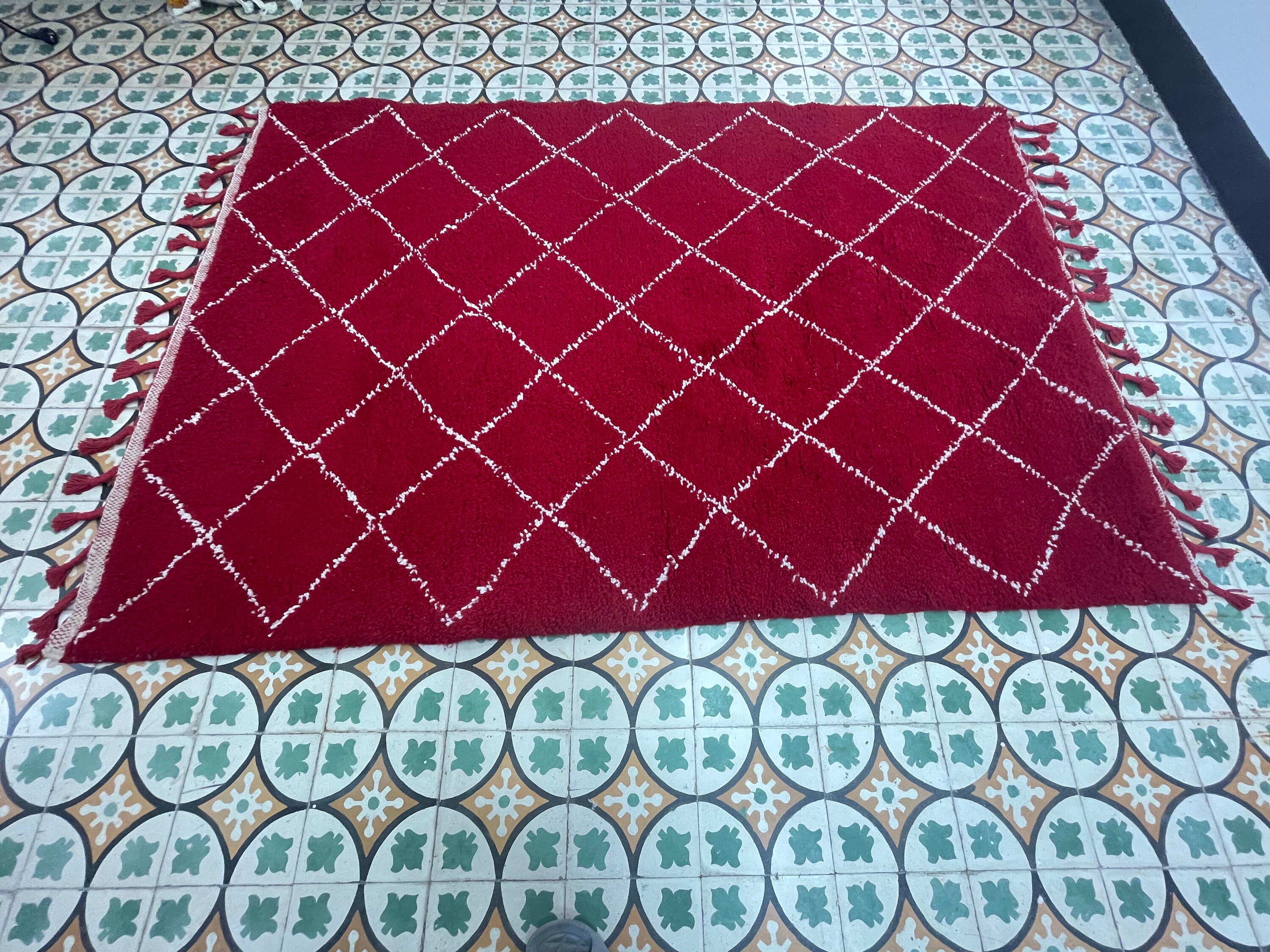 This fabulous Moroccan Rug that will give your room both a cozy feeling and stylish is made from 100% Natural sheep wool, It's Very plush and comfy to walk on, actually It's Heaven for your feet.