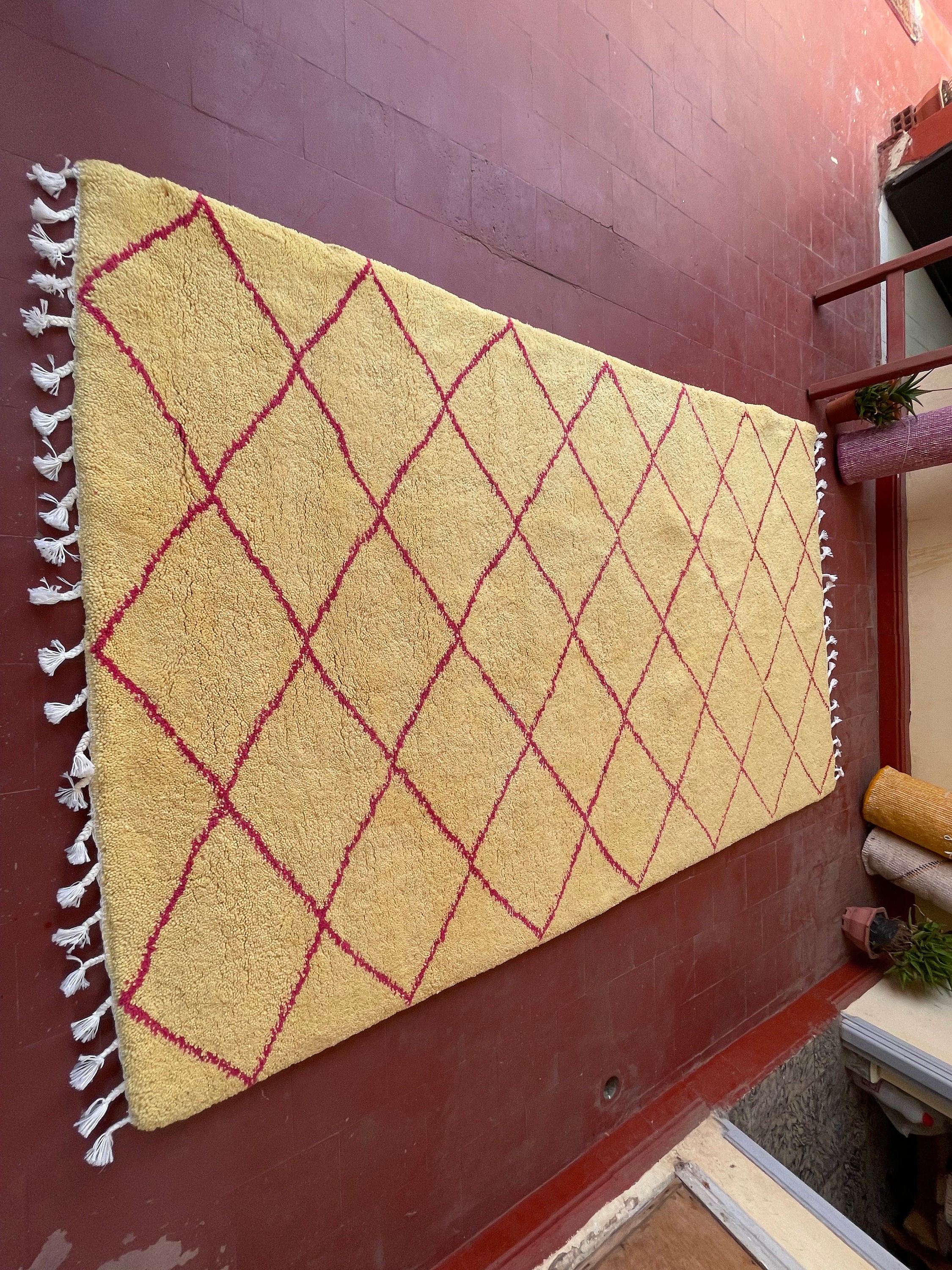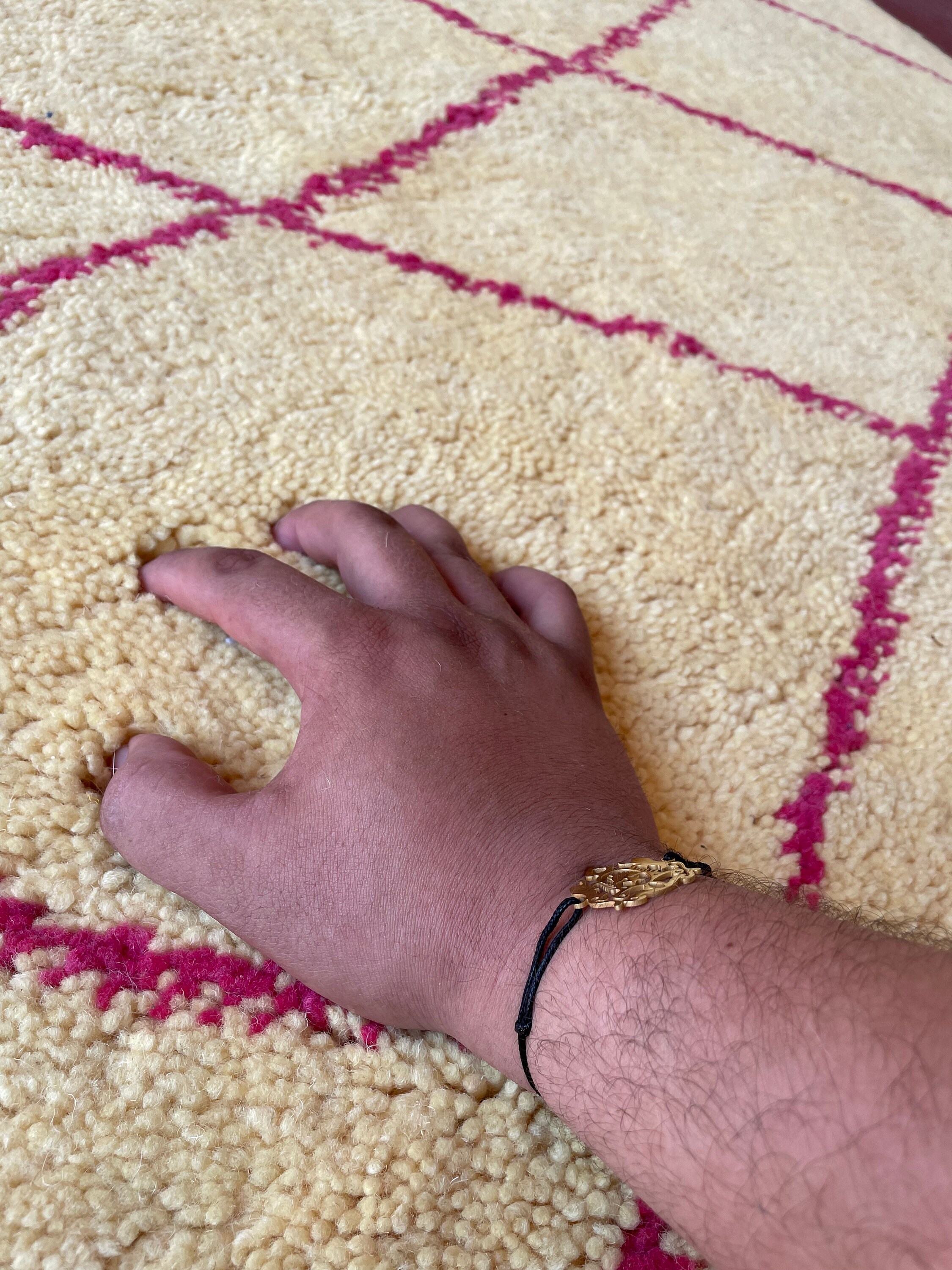 Experience the essence of Moroccan heritage with our 100% authentic Beni Ourain rugs, meticulously handcrafted by Berber artisans from the Atlas Mountains. Made from locally sourced, natural sheep wool, these rugs are both luxurious and eco-friendly, embodying a blend of comfort, elegance, and cultural richness. Their timeless designs and soft, plush texture make them an ideal choice for any home.