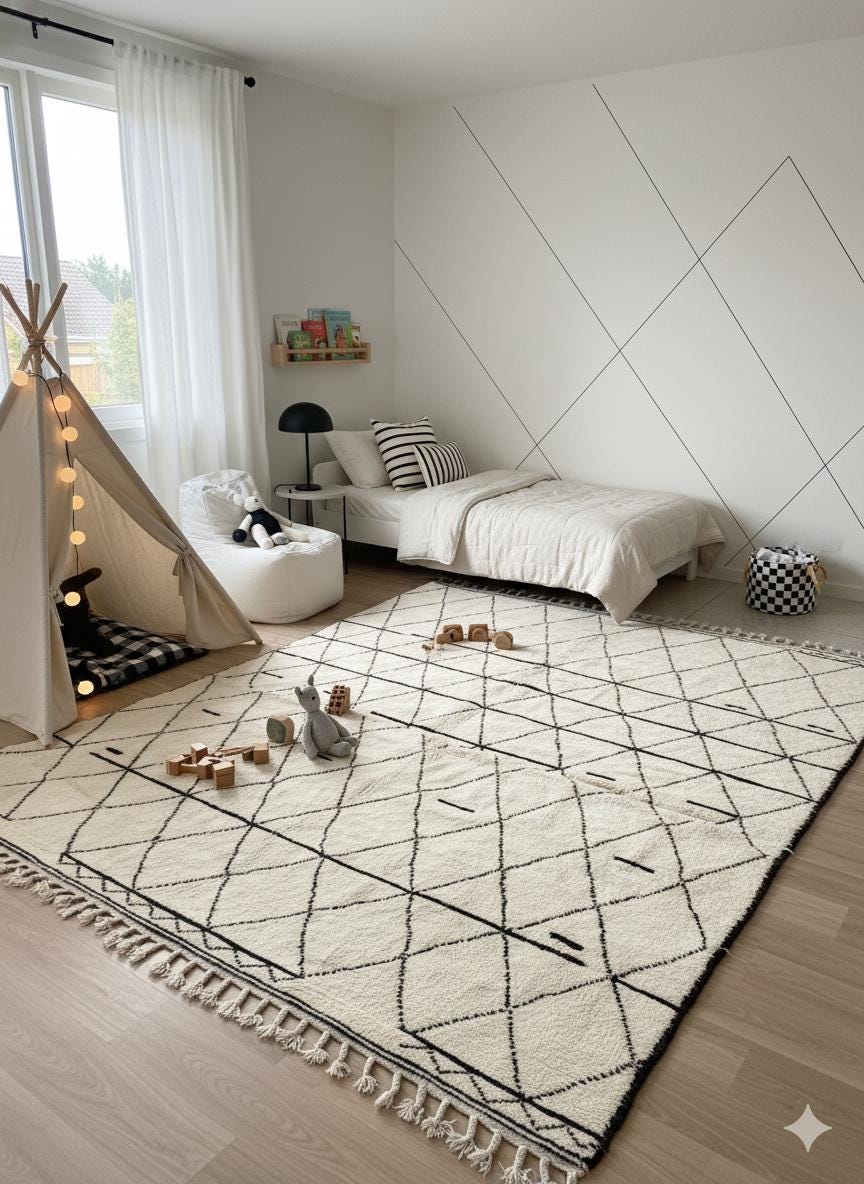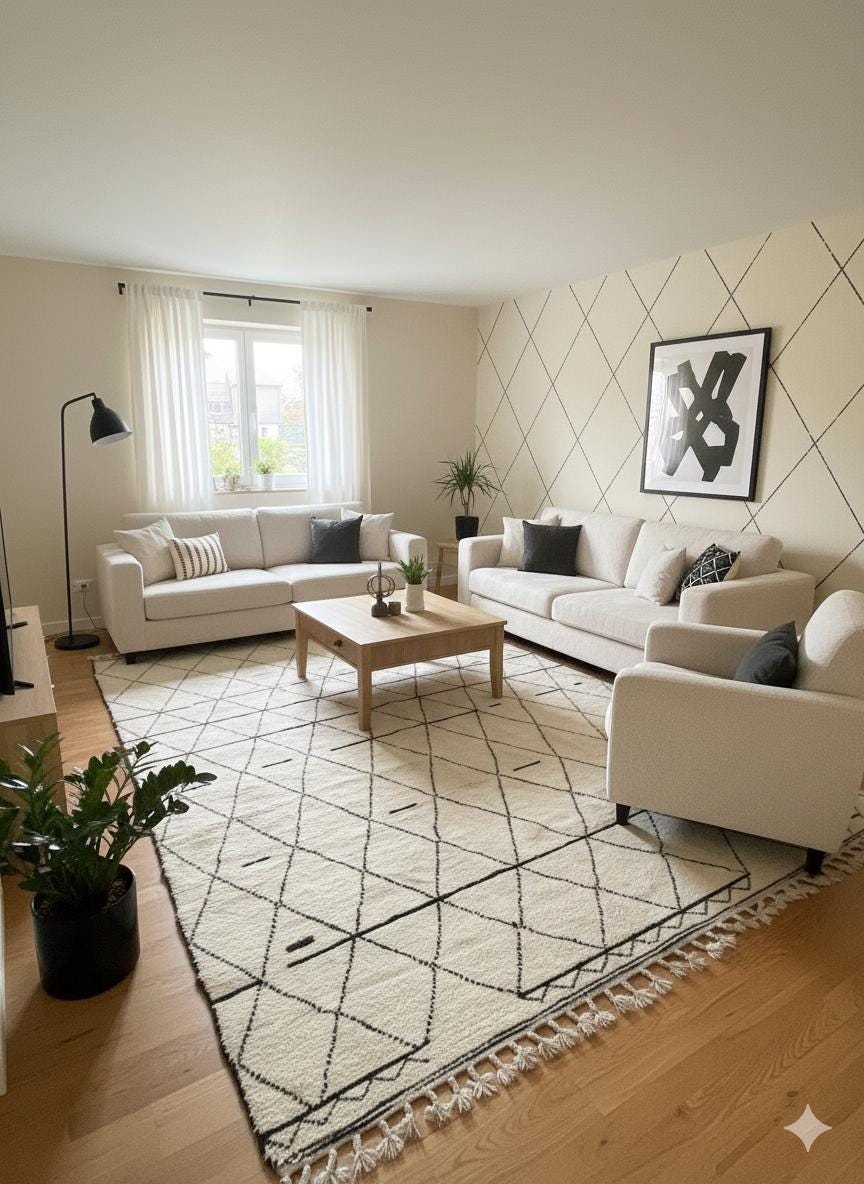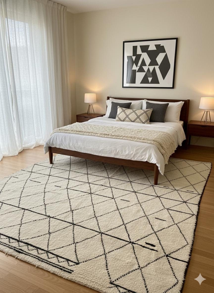 Versatile & Timeless Design: With their minimalist, geometric diamond patterns and natural colors, Beni Ourain rugs blend seamlessly with Traditional, Bohemian, Minimalist, Modern, and Scandinavian styles.