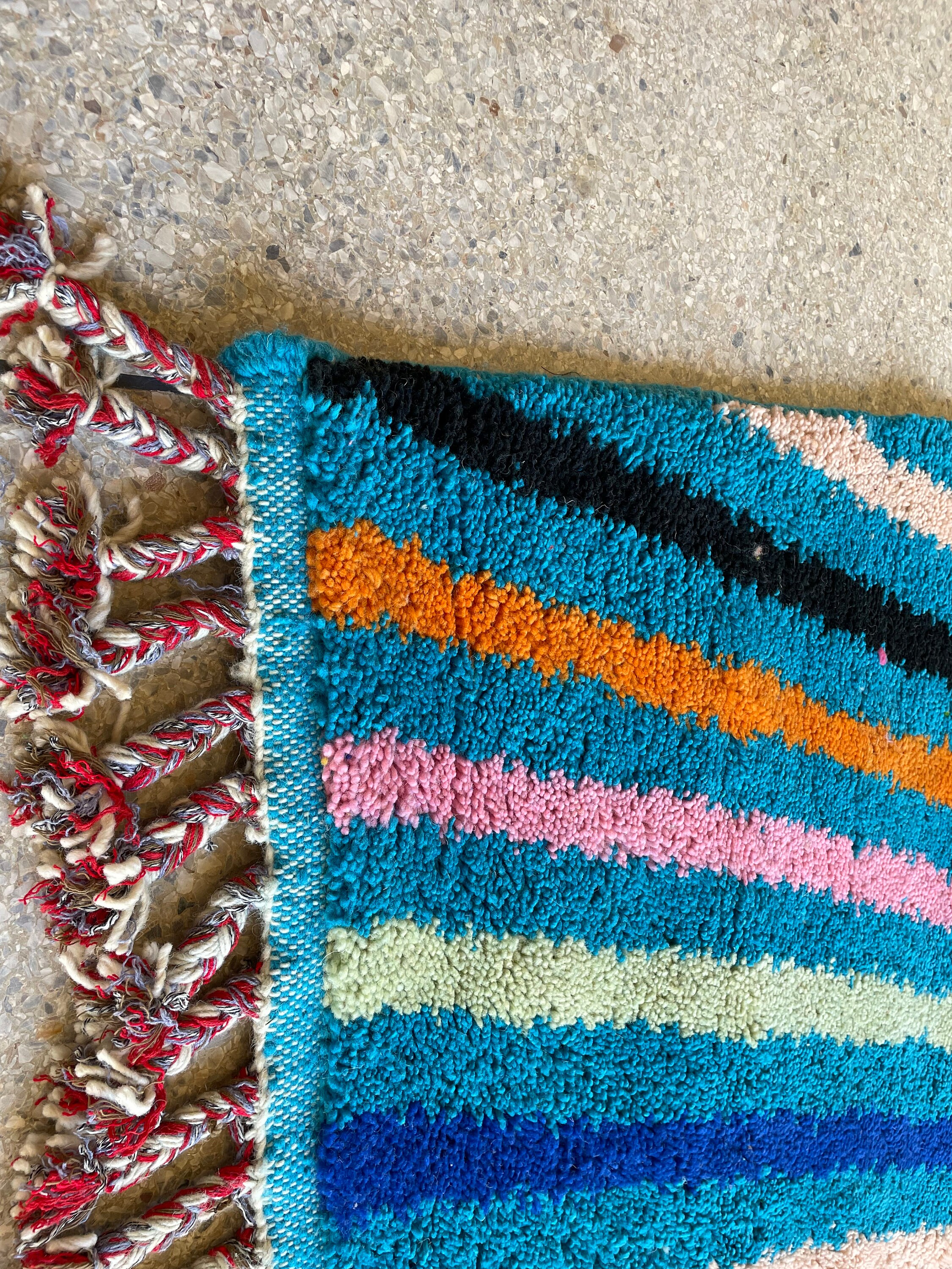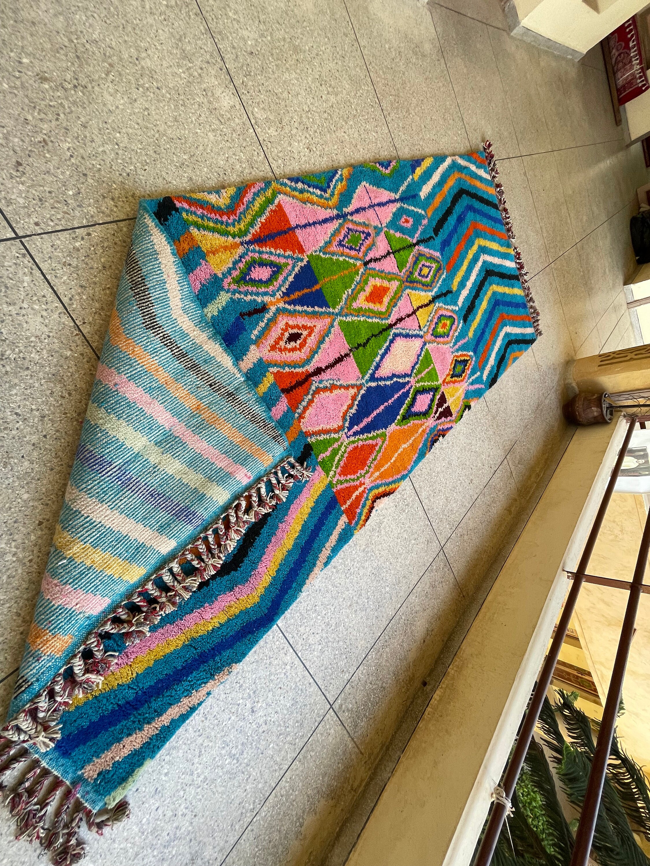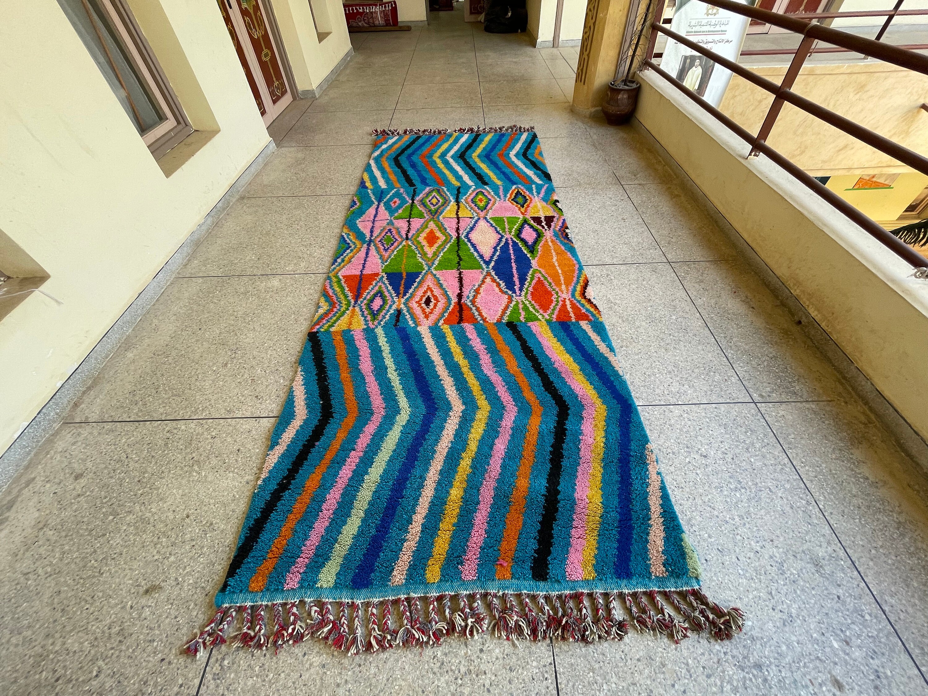 PRETTY MOROCCAN RUG, Moroccan Rug 5x12, Blue & Pink Rug, Berber Rug, Bordered Rug, Sheep Wool Rug, Area Rug, Handmade Beniourain rug,