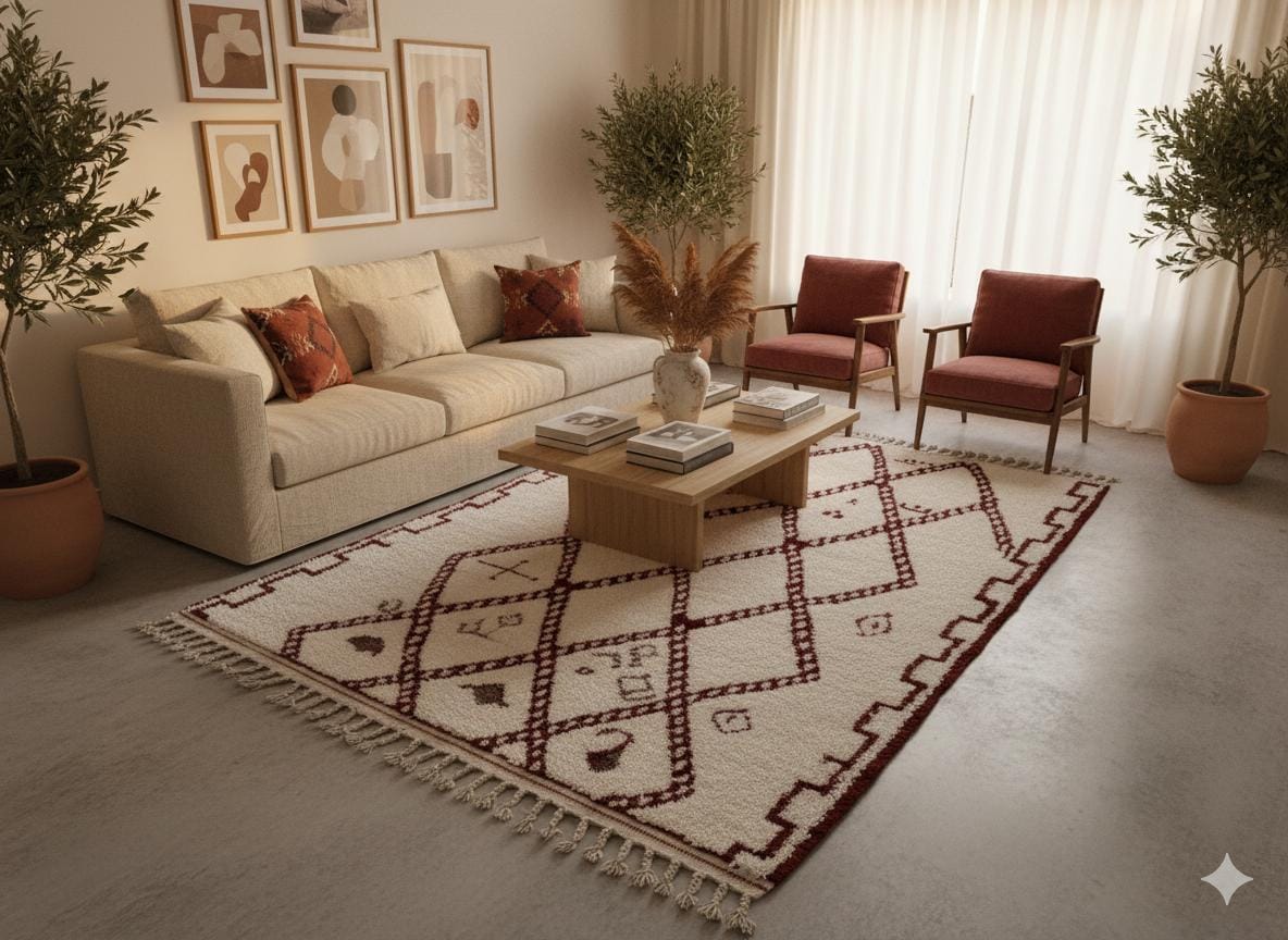 "Transform your home with a piece of Moroccan heritage that exudes both elegance and warmth 🌟. Whether placed under your sofa 🛋️, in your bedroom 🛏️, or even as a wall hanging 🖼️, these rugs invite a sense of history, style, and comfort 🧶✨ Explore our full collection of Beni Ourain, Azilal, and Boucherouite rugs for unique pieces that tell a story 📚💫.”