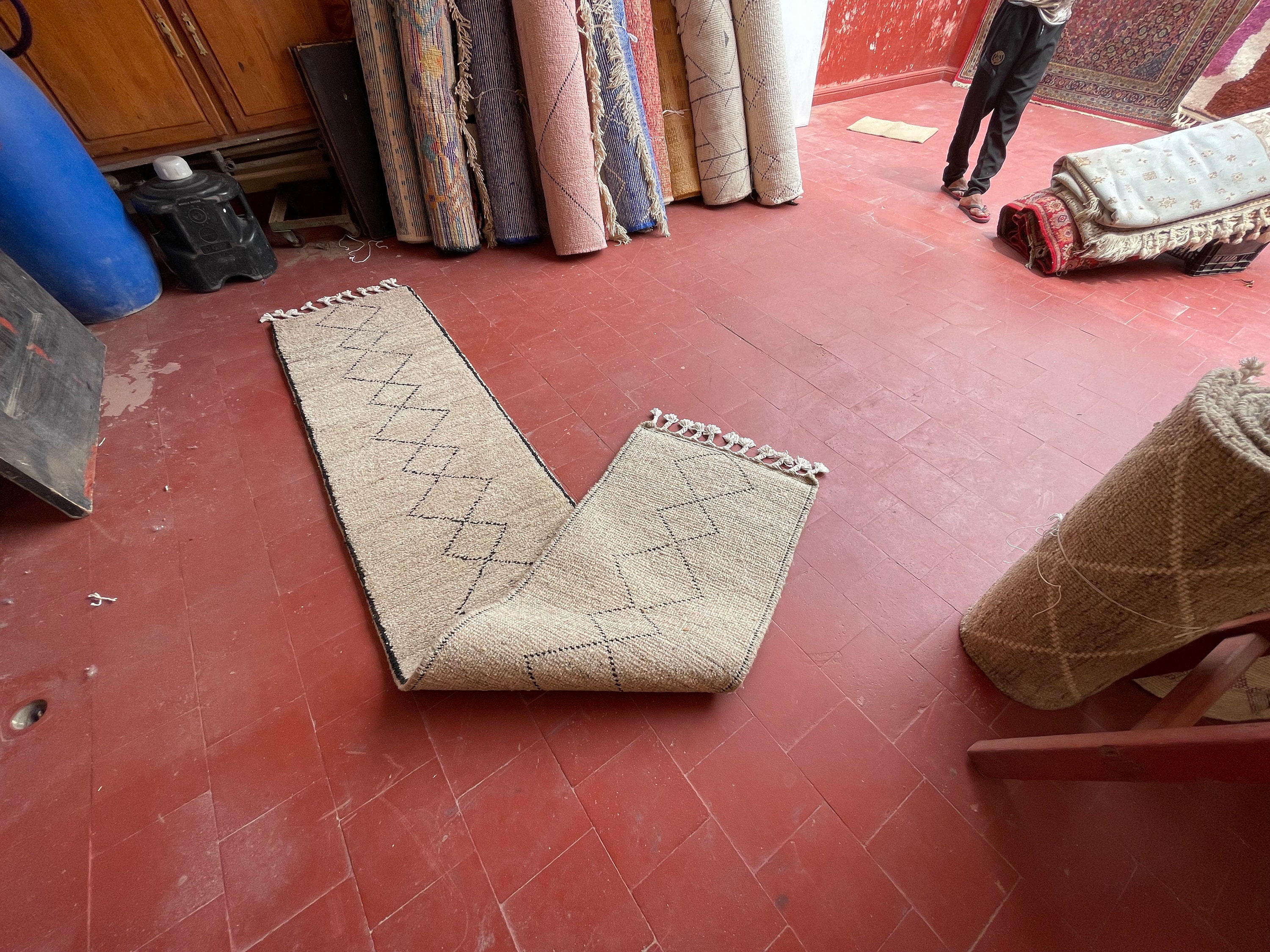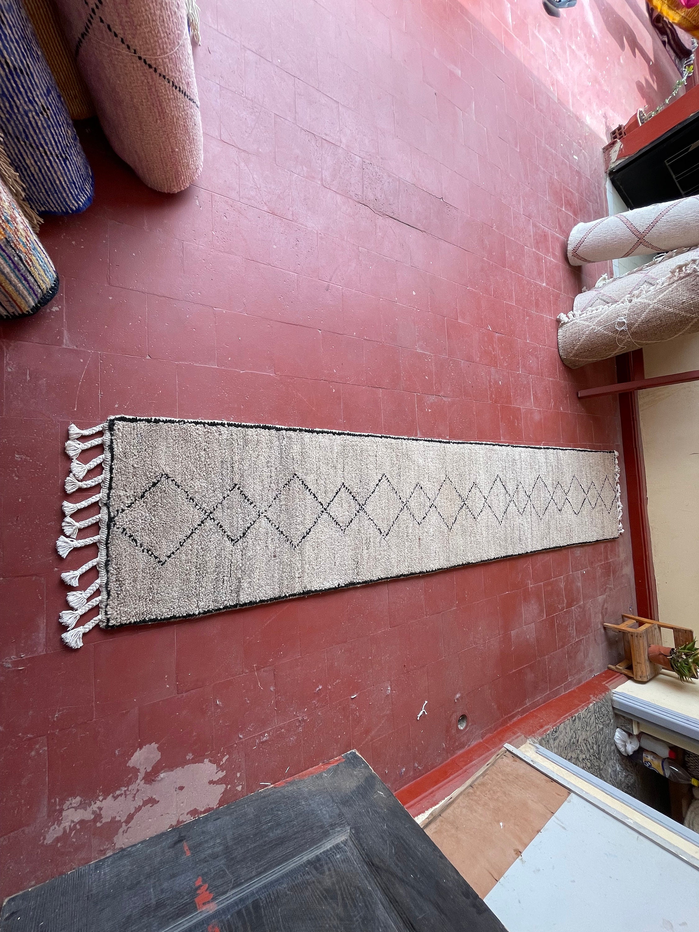 .AMAZING BENOURAIN RUG, Moroccan Rug, Handwoven Runner , Gray and White Rug, Unique Custom Rug, Wool Rug, Berber Rug, Abstract Rug