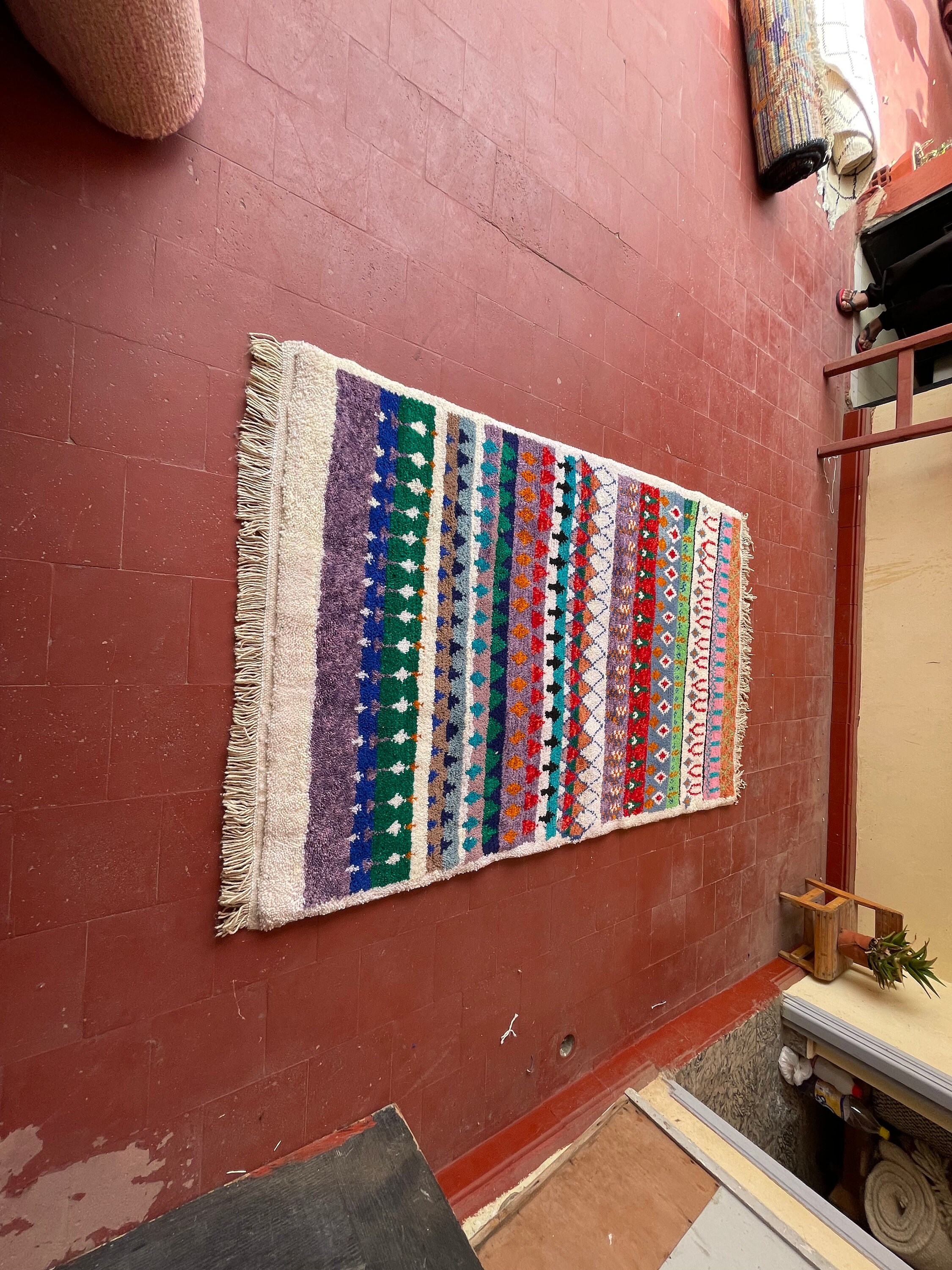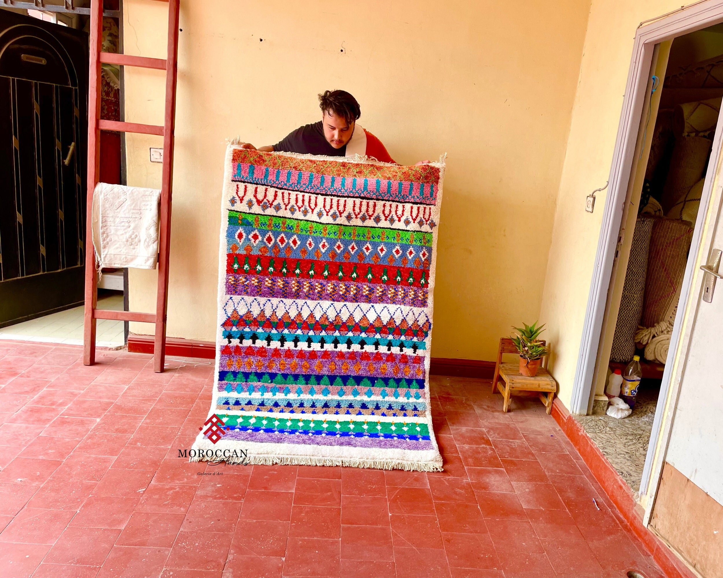 "Transform your home with a piece of Moroccan heritage that exudes both elegance and warmth 🌟. Whether placed under your sofa 🛋️, in your bedroom 🛏️, or even as a wall hanging 🖼️, these rugs invite a sense of history, style, and comfort 🧶✨ Explore our full collection of Beni Ourain, Azilal, and Boucherouite rugs for unique pieces that tell a story 📚💫.”