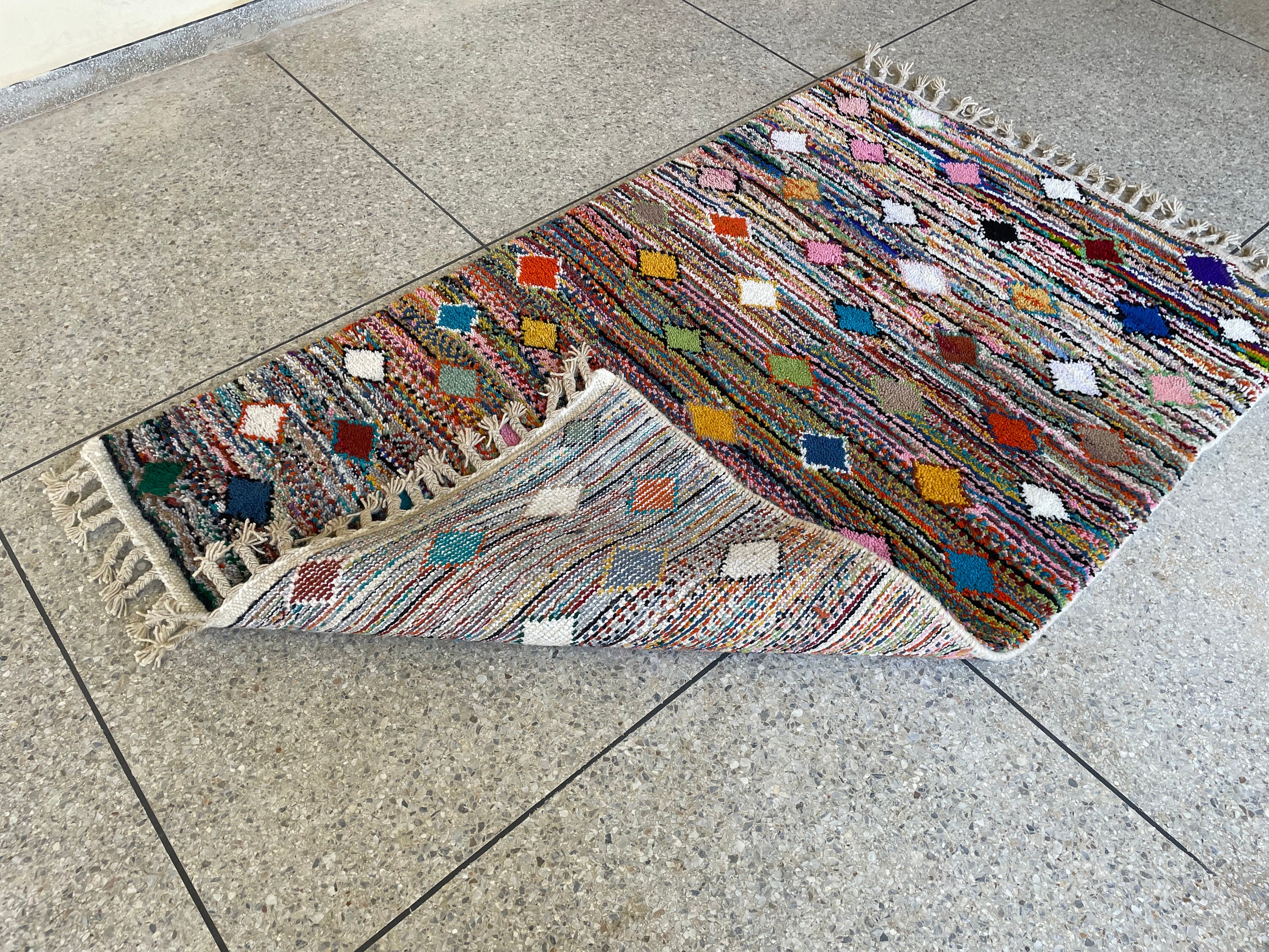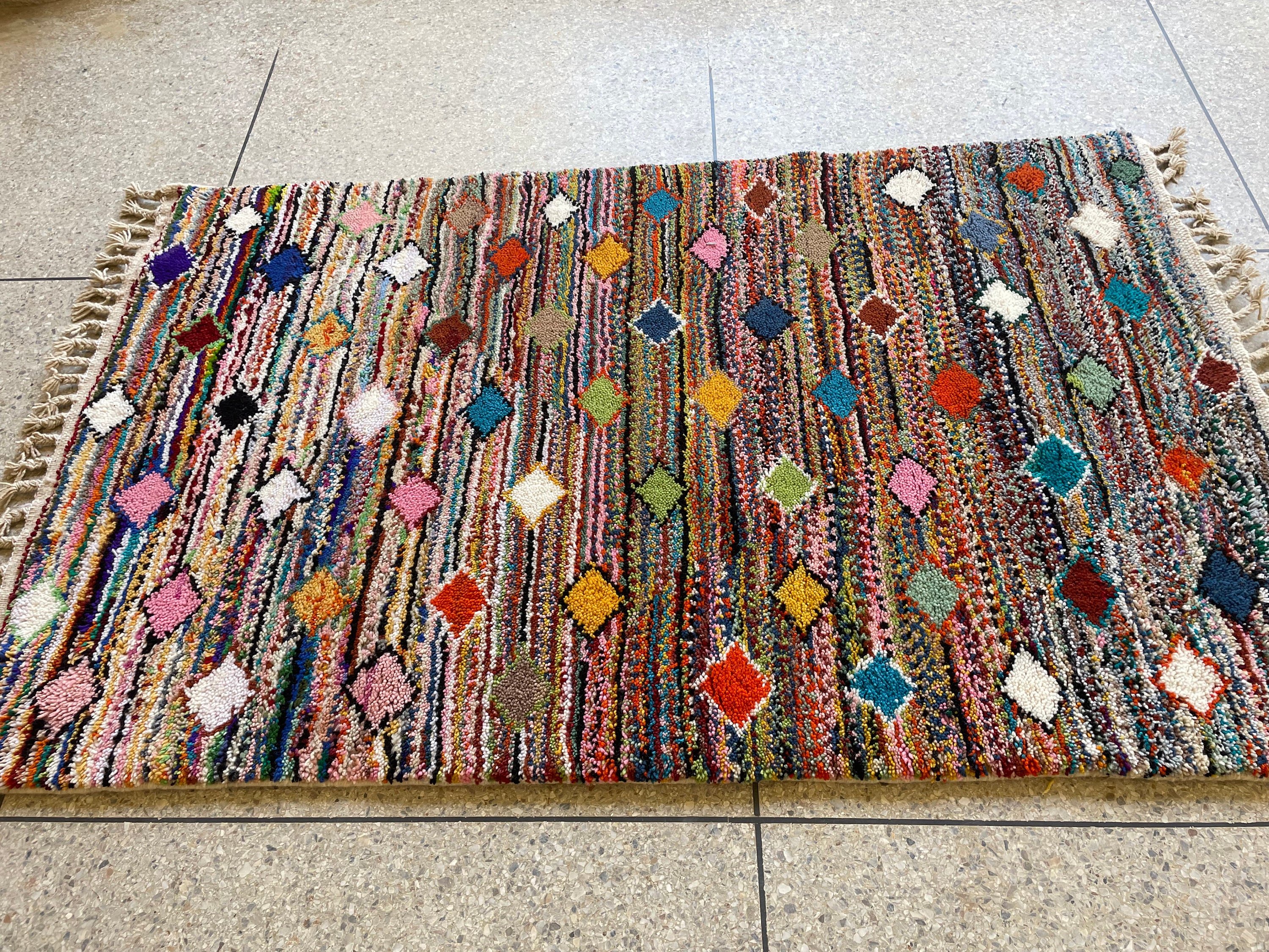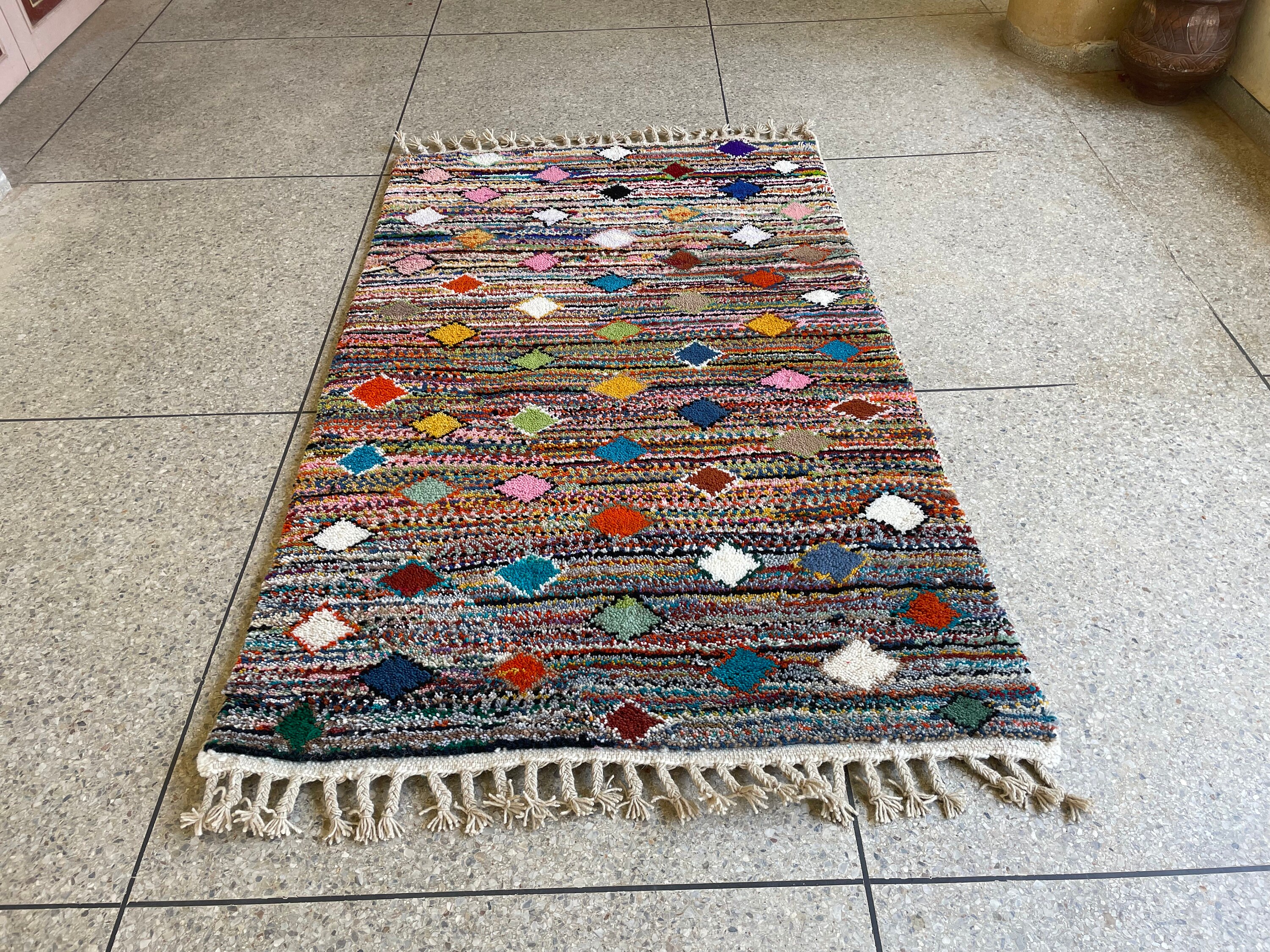 This fabulous Moroccan Rug that will give your room both a cozy feeling and stylish is made from 100% Natural sheep wool, It's Very plush and comfy to walk on, actually It's Heaven for your feet.