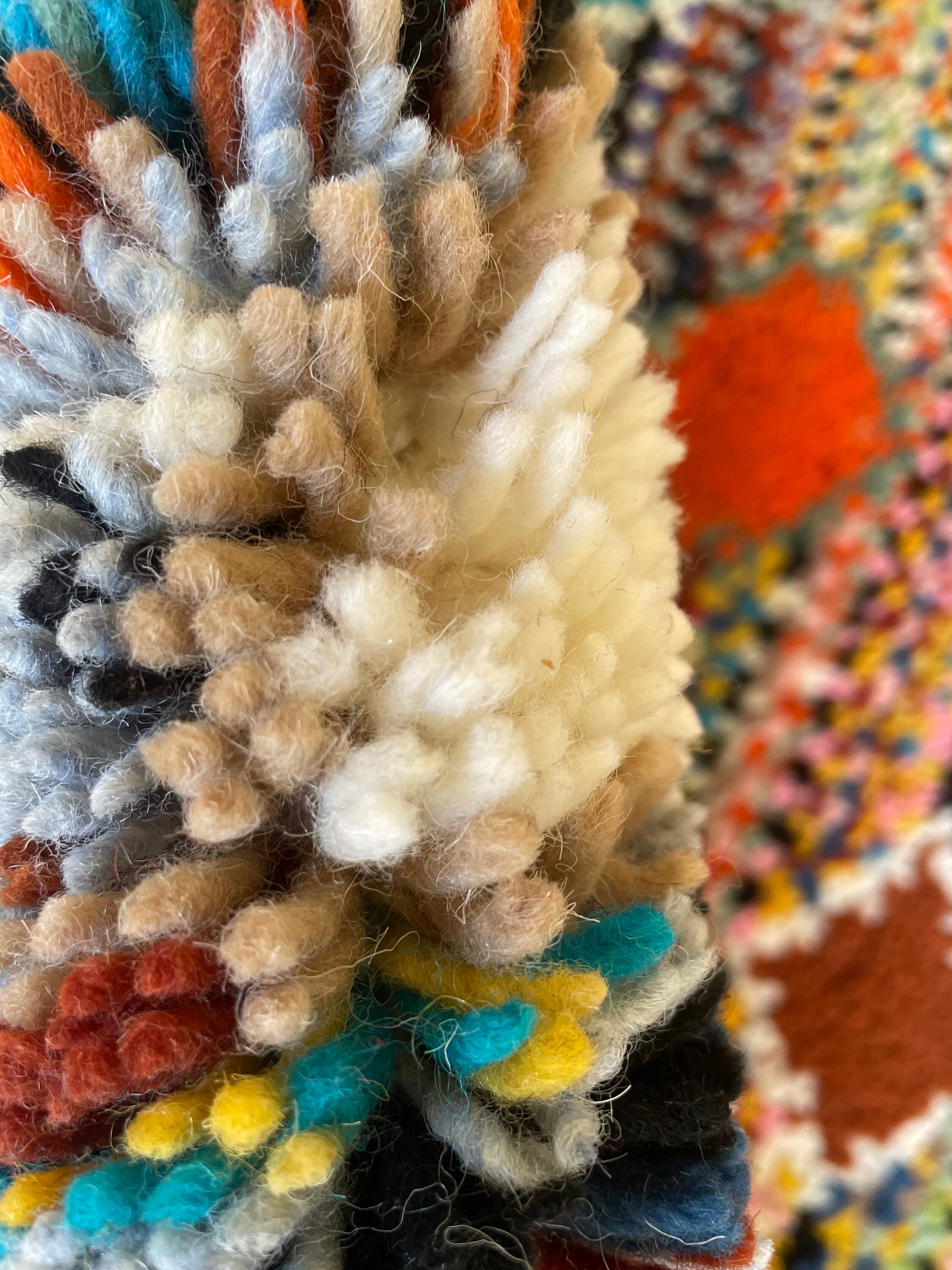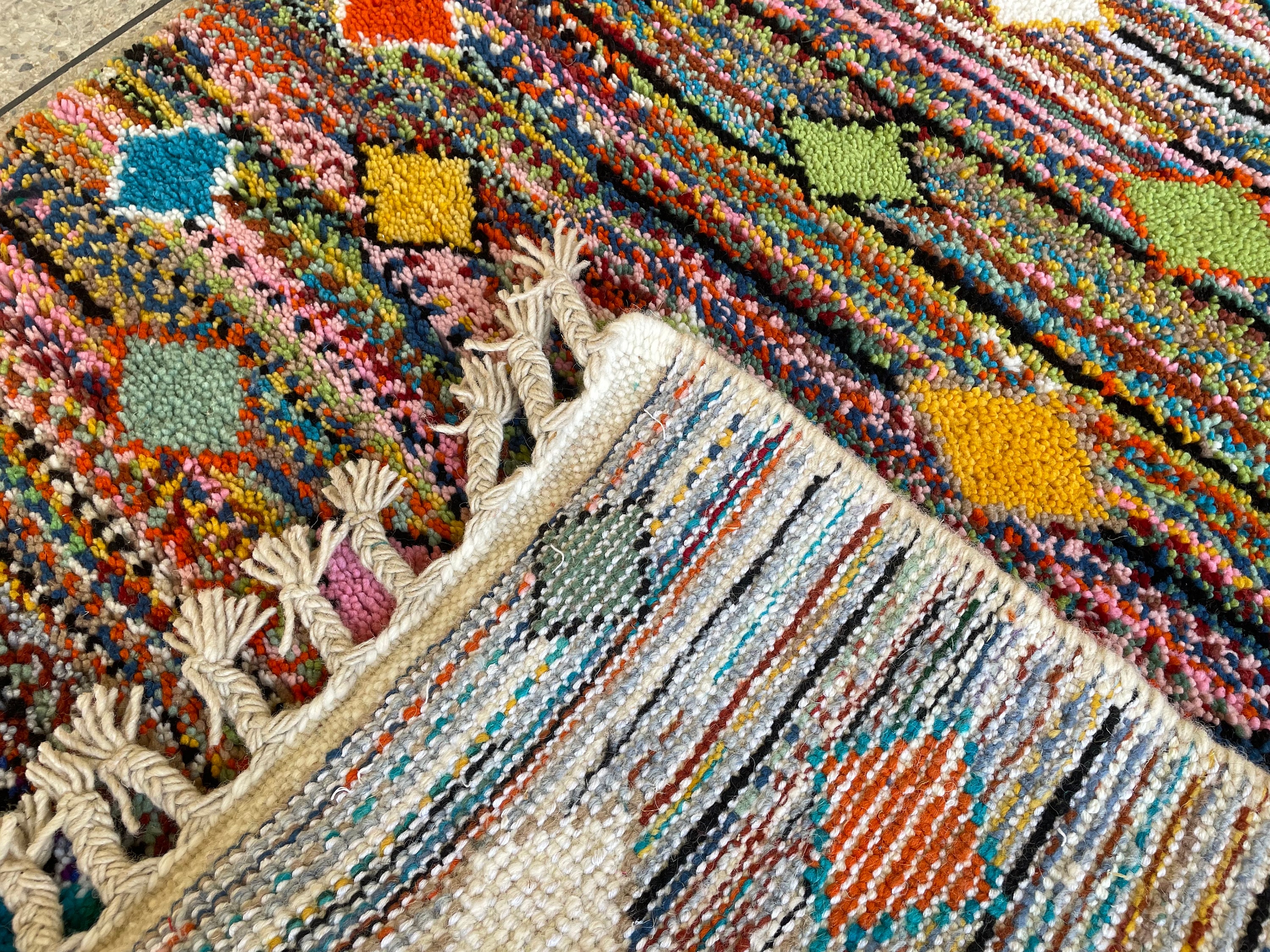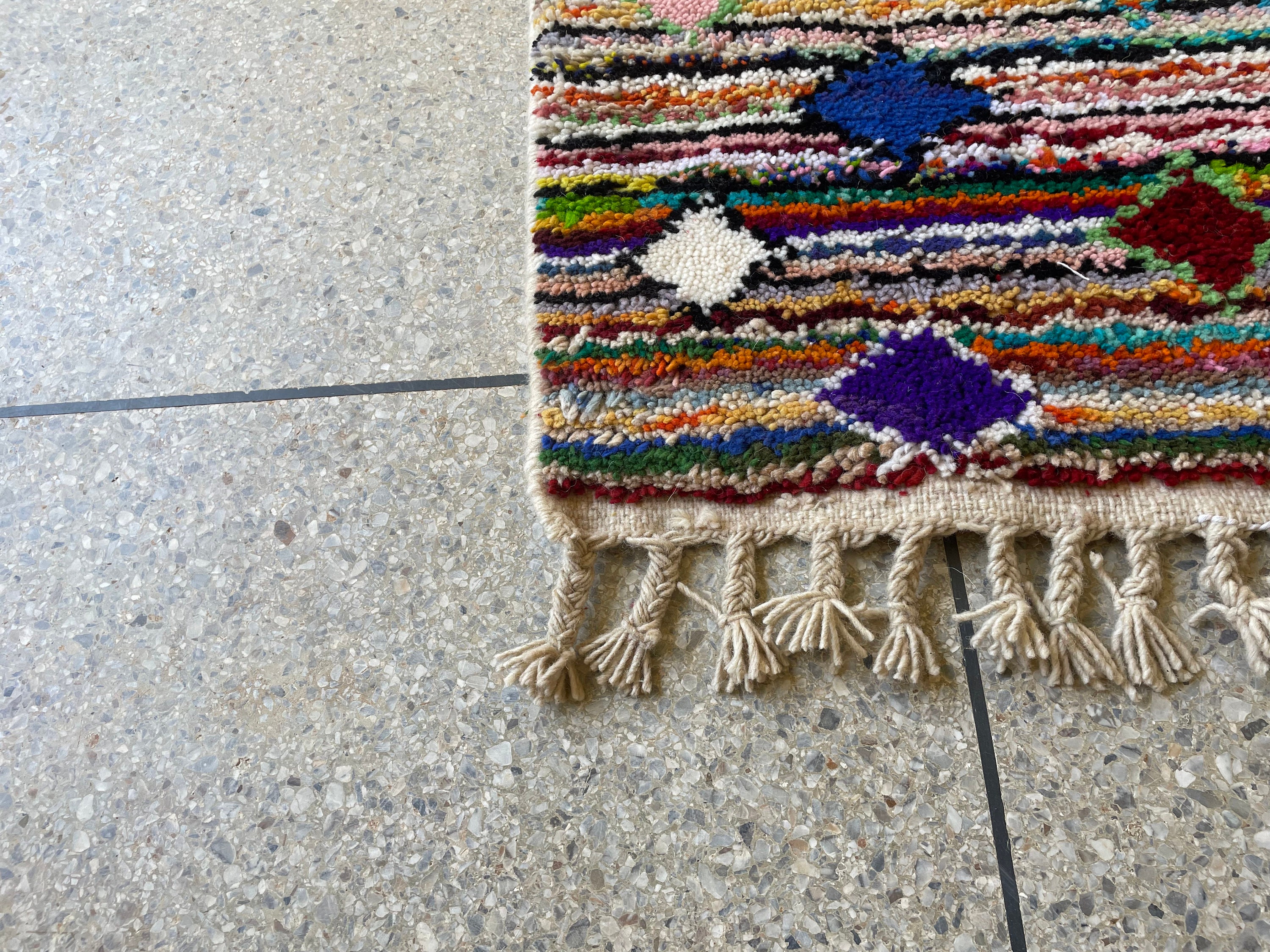 This fabulous Moroccan Rug that will give your room both a cozy feeling and stylish is made from 100% Natural sheep wool, It's Very plush and comfy to walk on, actually It's Heaven for your feet.