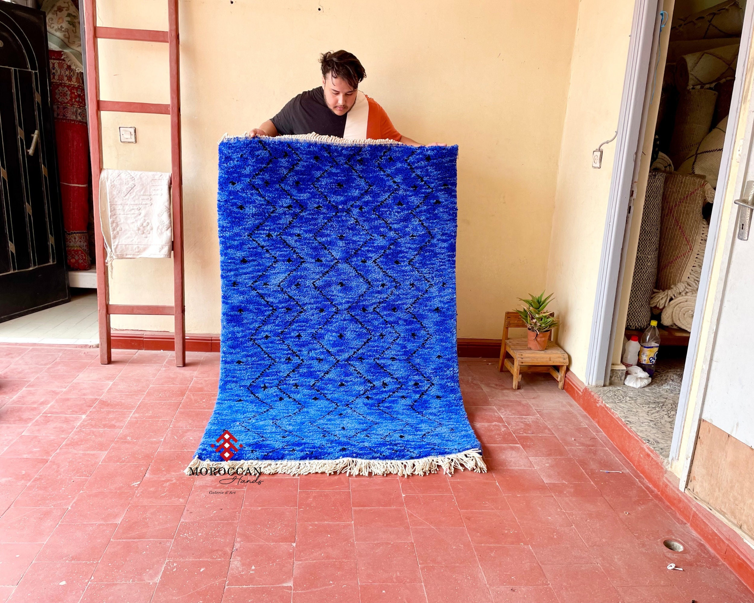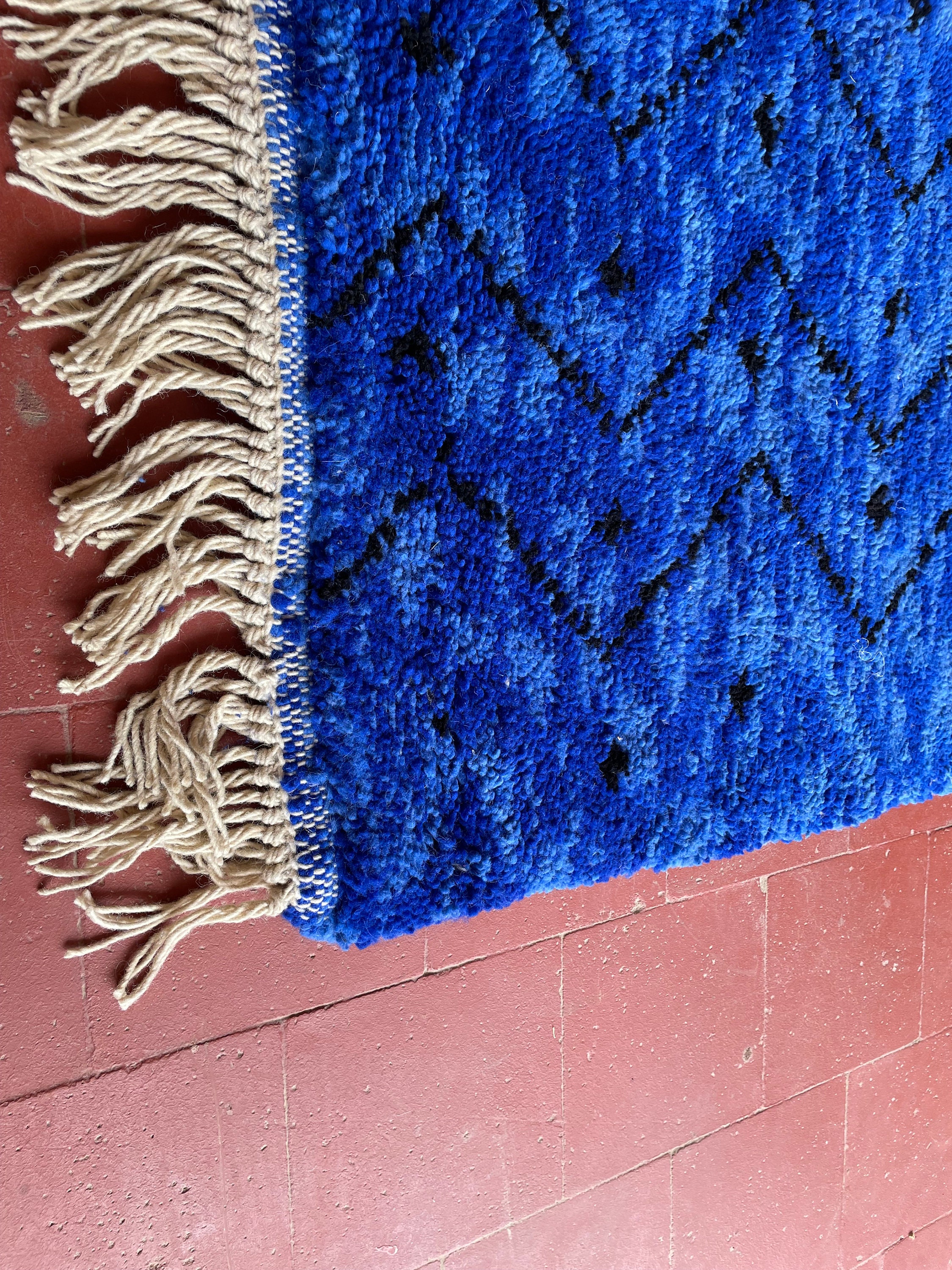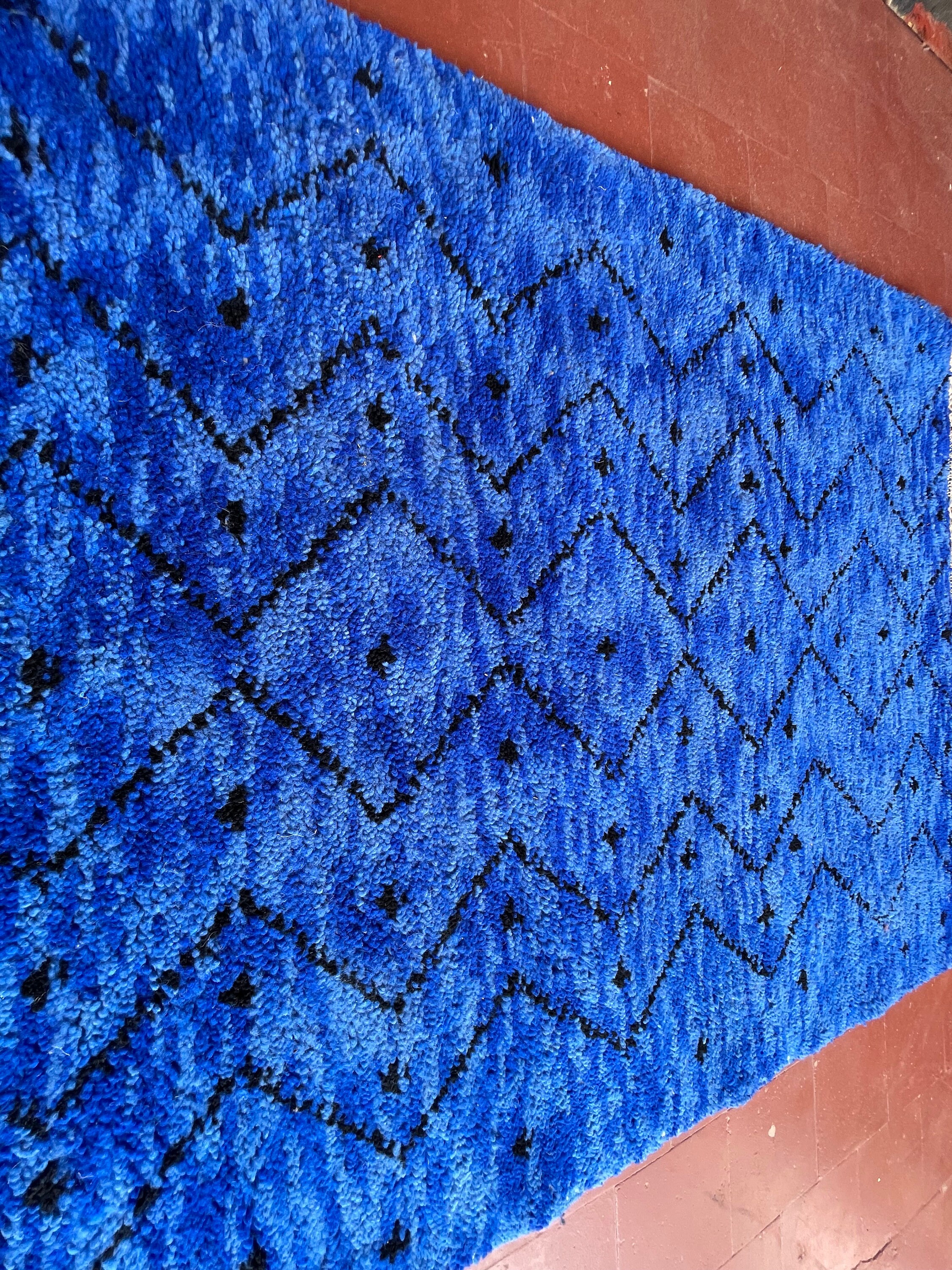Transform your space with this stunning Blue and Black Geometric Beni Ourain Rug! Handwoven from premium sheep wool by skilled Berber artisans, this Moroccan rug blends tradition with modern elegance. Its bold geometric patterns add a striking yet cozy touch, making it the perfect statement piece for your living room, bedroom, or office. Soft, durable, and timeless, this custom-made rug enhances any minimalist, bohemian, or eclectic interior. Elevate your home with authentic Moroccan craftsmanship and luxurious wool texture.