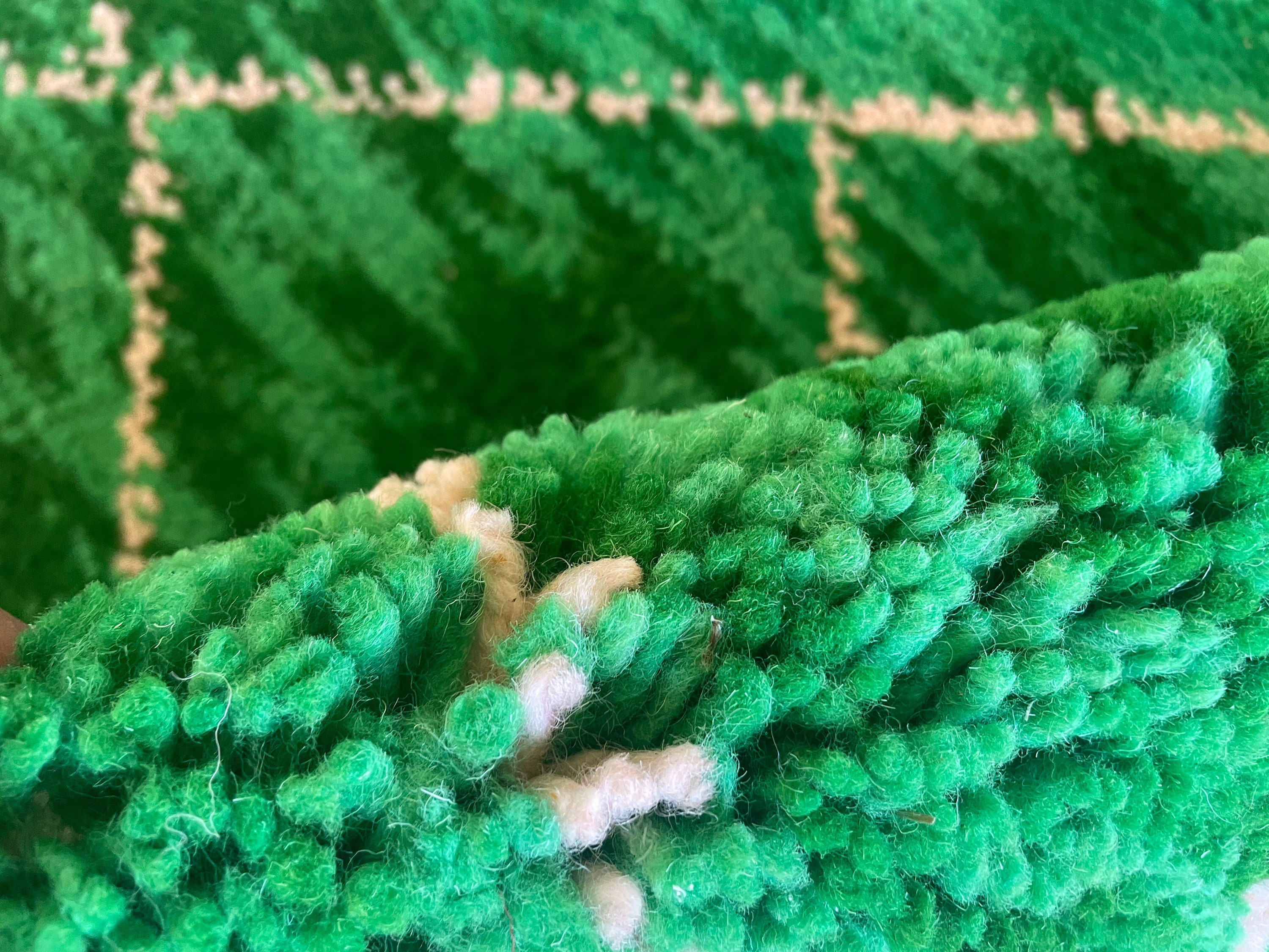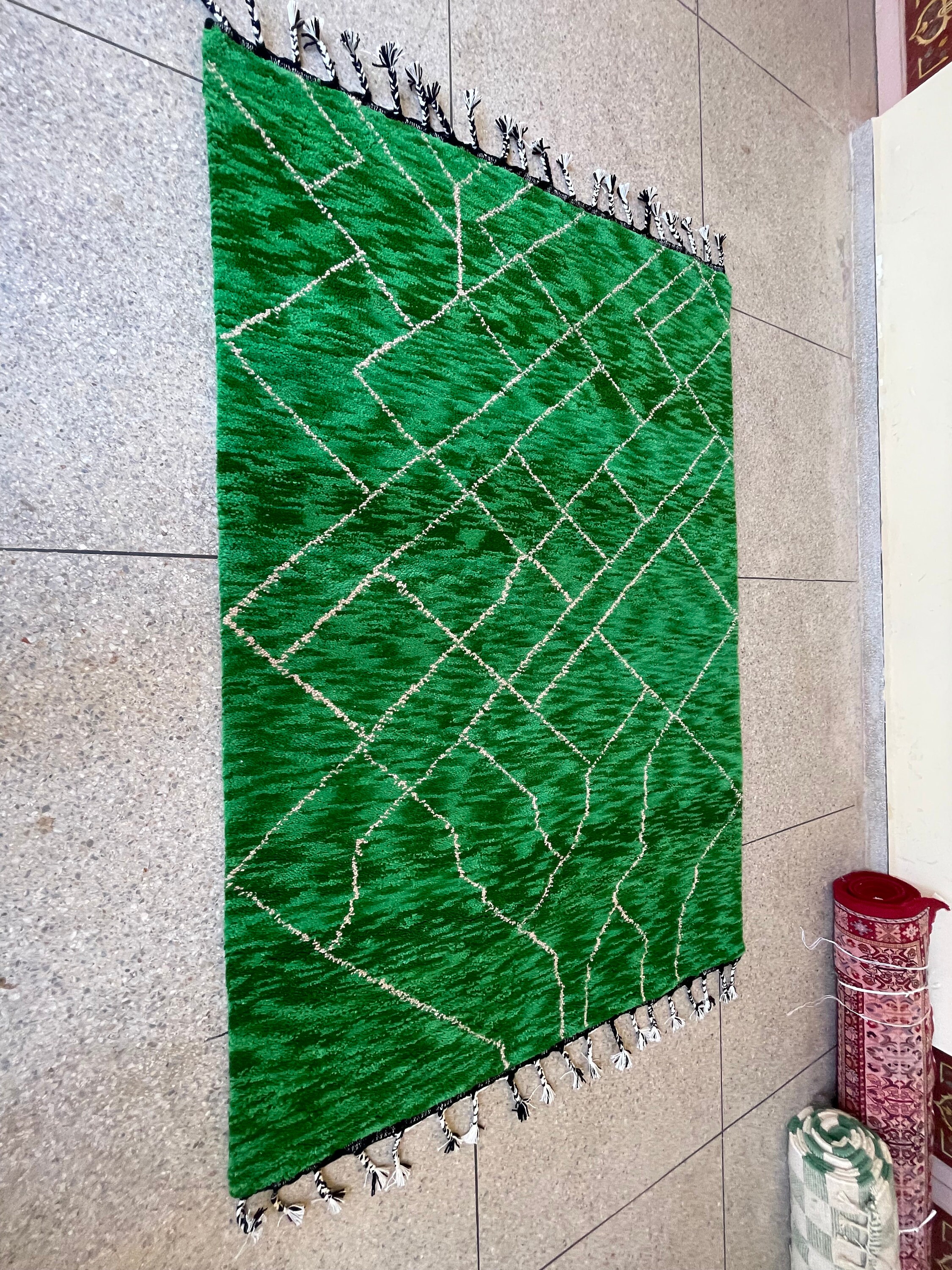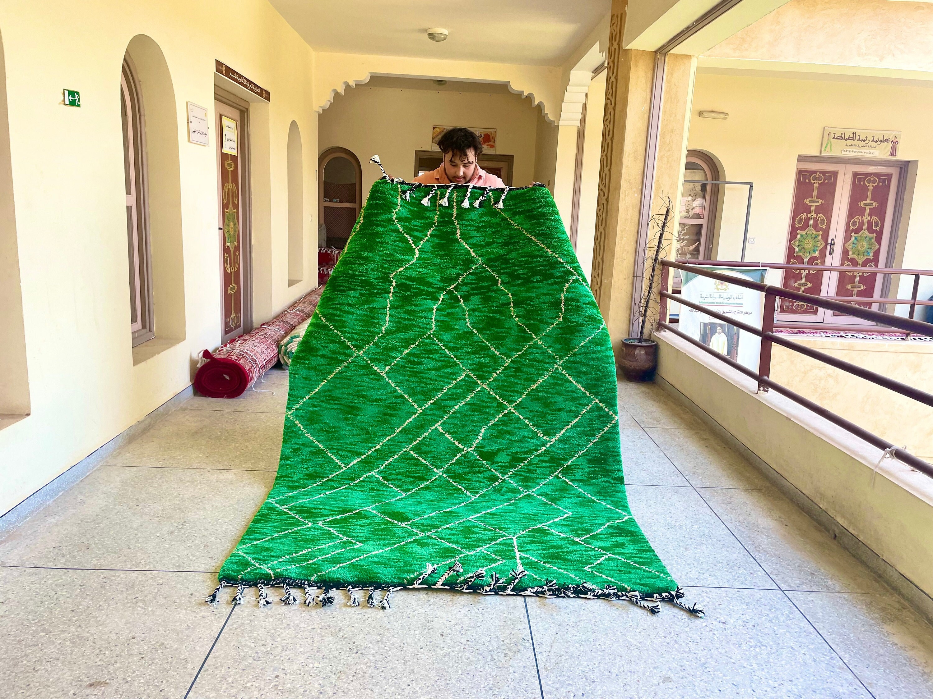 Transform your space with this stunning Green and White Beni Ourain Rug, a true piece of Moroccan artistry. Handwoven from the finest sheep wool, this geometric masterpiece brings warmth, comfort, and a touch of bohemian charm to your living room. The abstract design blends effortlessly with eclectic, minimalist, and Scandinavian interiors, making it a perfect statement piece for your home. Elevate your decor with this timeless and cozy handmade Moroccan rug!