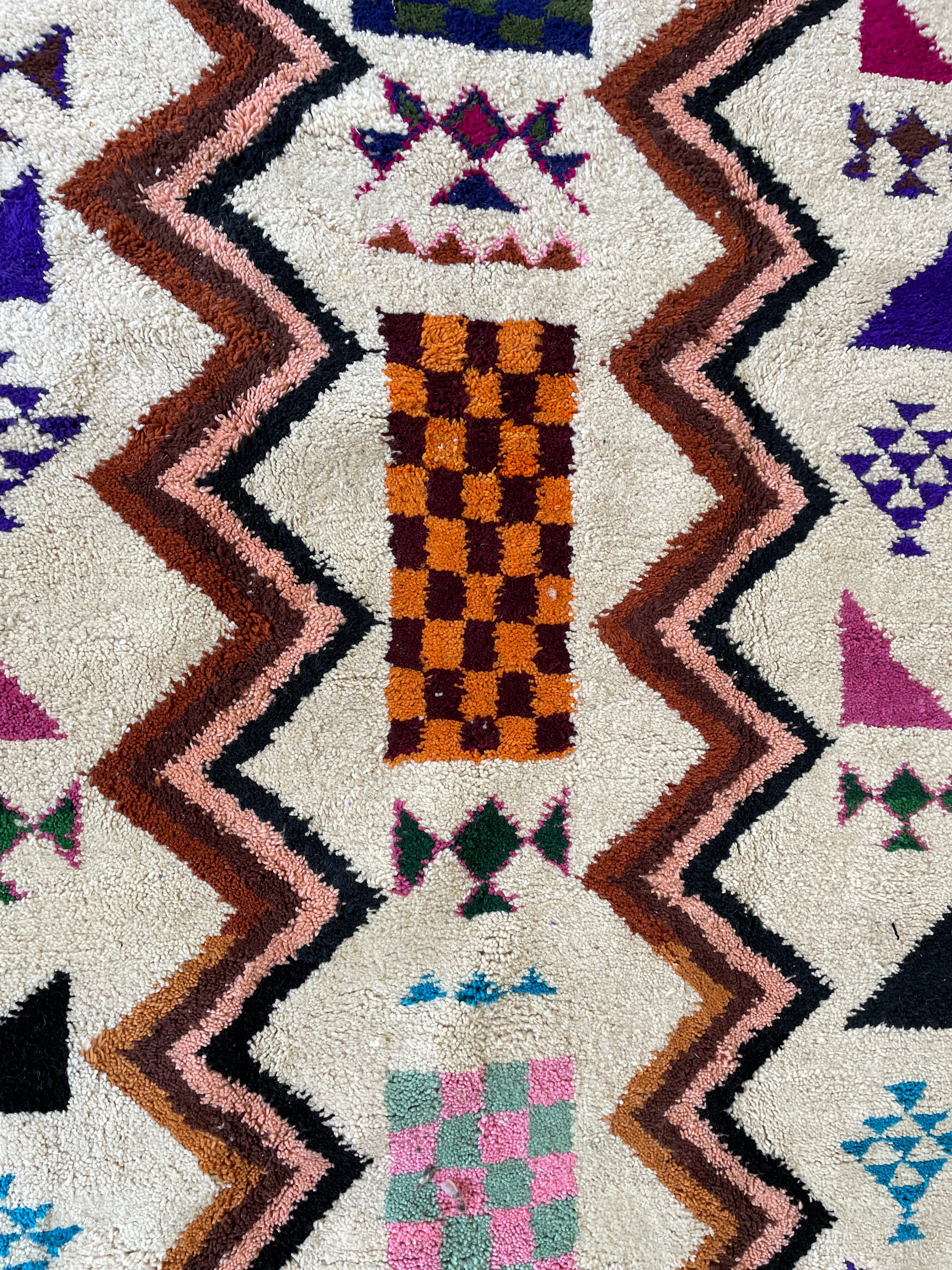 "Transform your home with a piece of Moroccan heritage that exudes both elegance and warmth 🌟. Whether placed under your sofa 🛋️, in your bedroom 🛏️, or even as a wall hanging 🖼️, these rugs invite a sense of history, style, and comfort 🧶✨ Explore our full collection of Beni Ourain, Azilal, and Boucherouite rugs for unique pieces that tell a story 📚💫.”