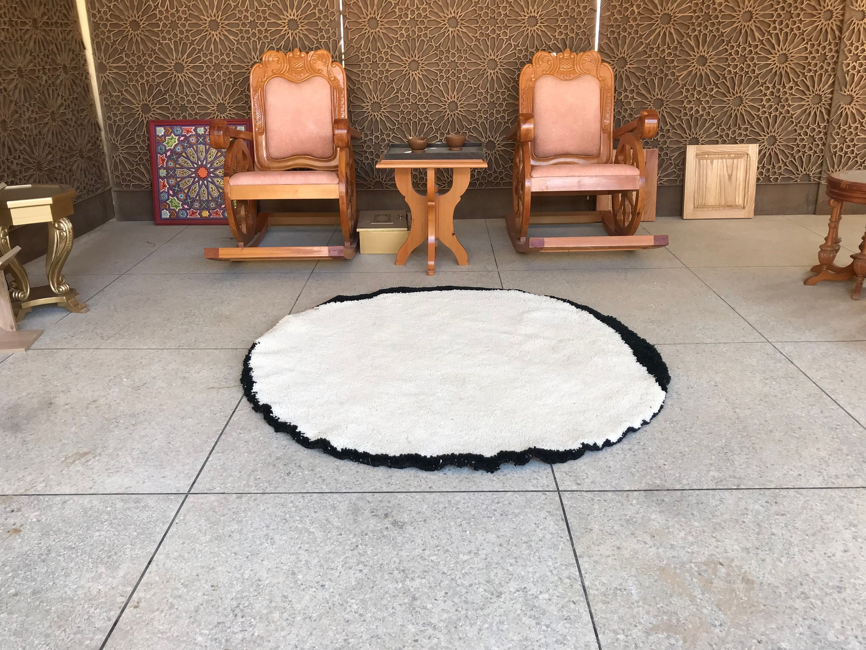 Elevate your space with our Custom Round Rug, featuring a soft Beni Ourain design that brings warmth and style to any room. This premium Moroccan white and black handmade carpet is crafted from high-quality wool, ensuring a luxurious feel underfoot. Perfect as an area soft wool carpet for living rooms, bedrooms, or nurseries, it adds a touch of elegance to your decor. Personalize your home with this stunning piece that combines comfort and artistry. Order yours today and transform your space!