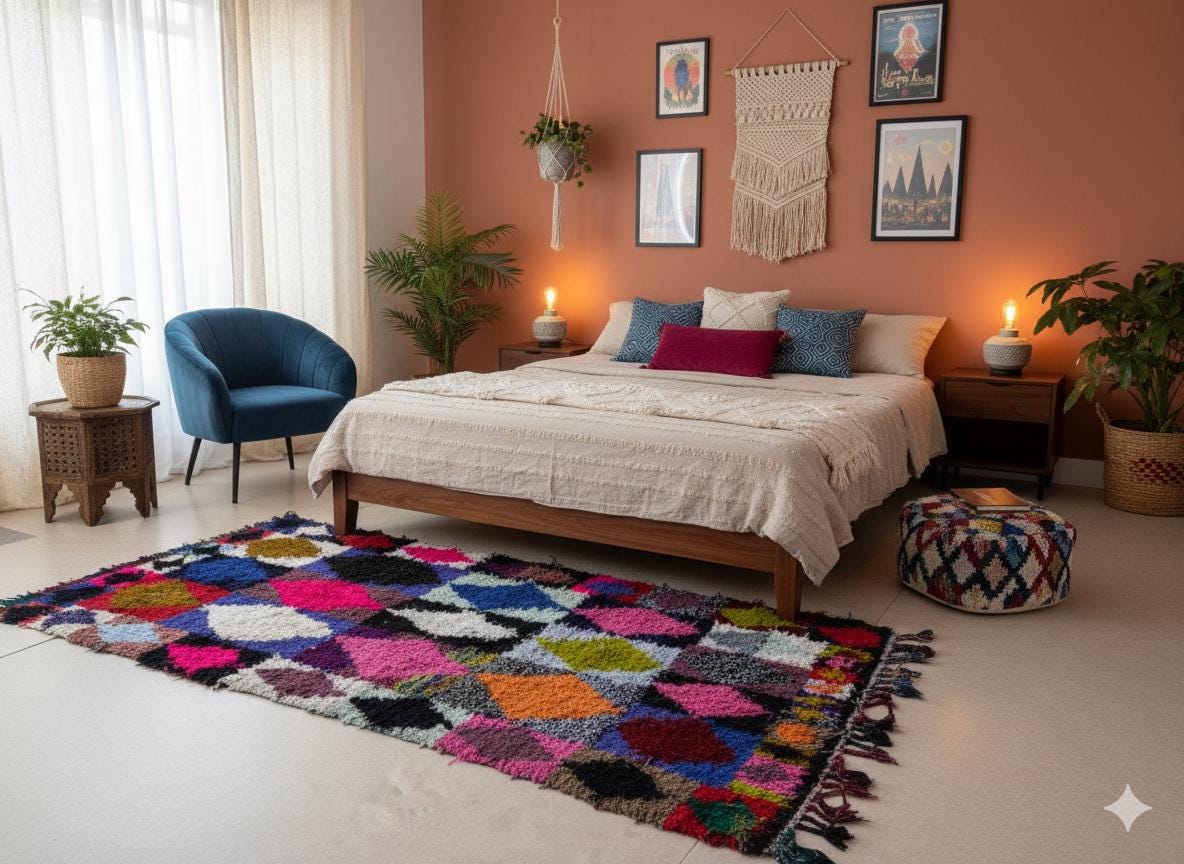 Versatile & Timeless Design: With their minimalist, geometric diamond patterns and natural colors, Beni Ourain rugs blend seamlessly with Traditional, Bohemian, Minimalist, Modern, and Scandinavian styles.