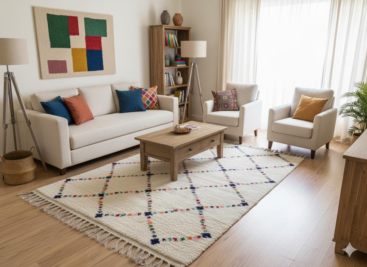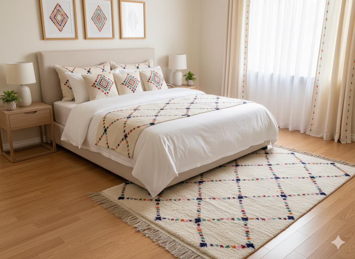 Versatile & Timeless Design: With their minimalist, geometric diamond patterns and natural colors, Beni Ourain rugs blend seamlessly with Traditional, Bohemian, Minimalist, Modern, and Scandinavian styles.