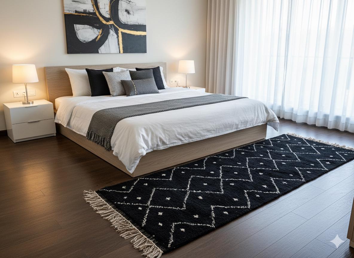 Versatile & Timeless Design: With their minimalist, geometric diamond patterns and natural colors, Beni Ourain rugs blend seamlessly with Traditional, Bohemian, Minimalist, Modern, and Scandinavian styles.
