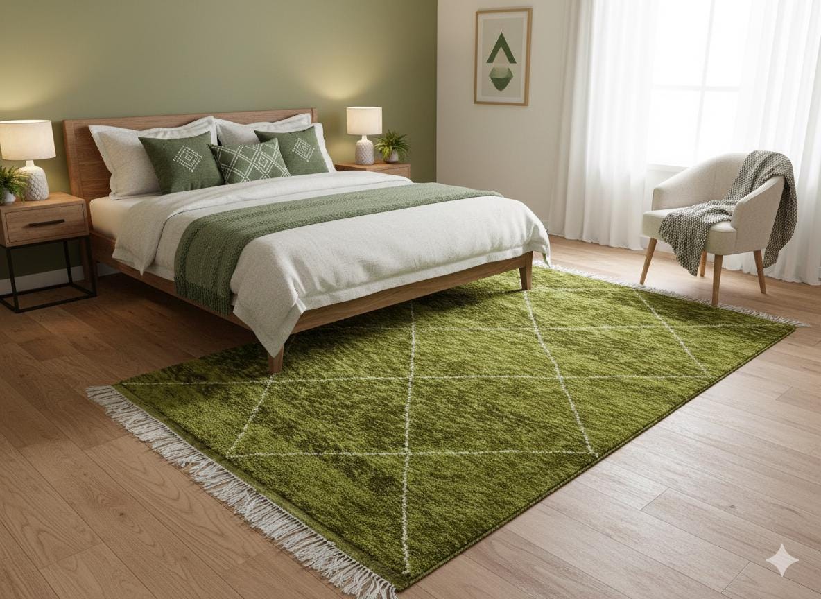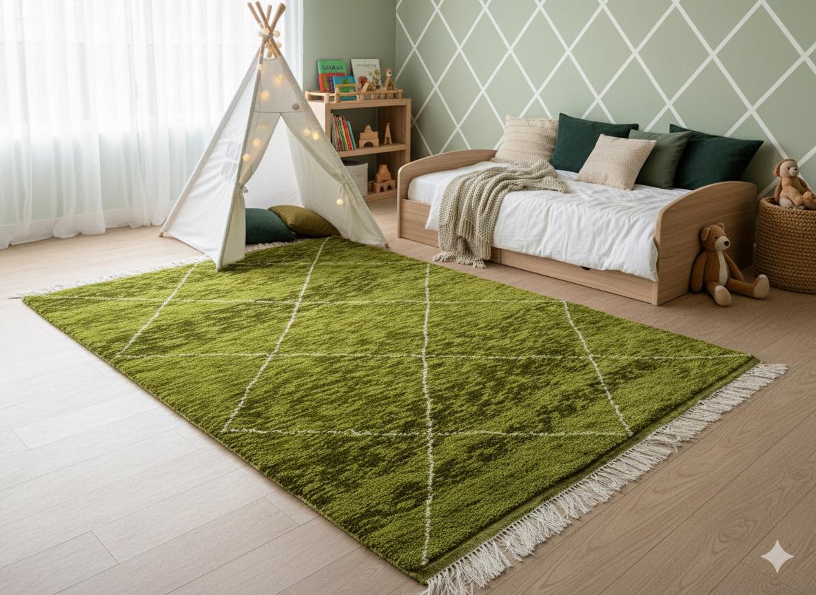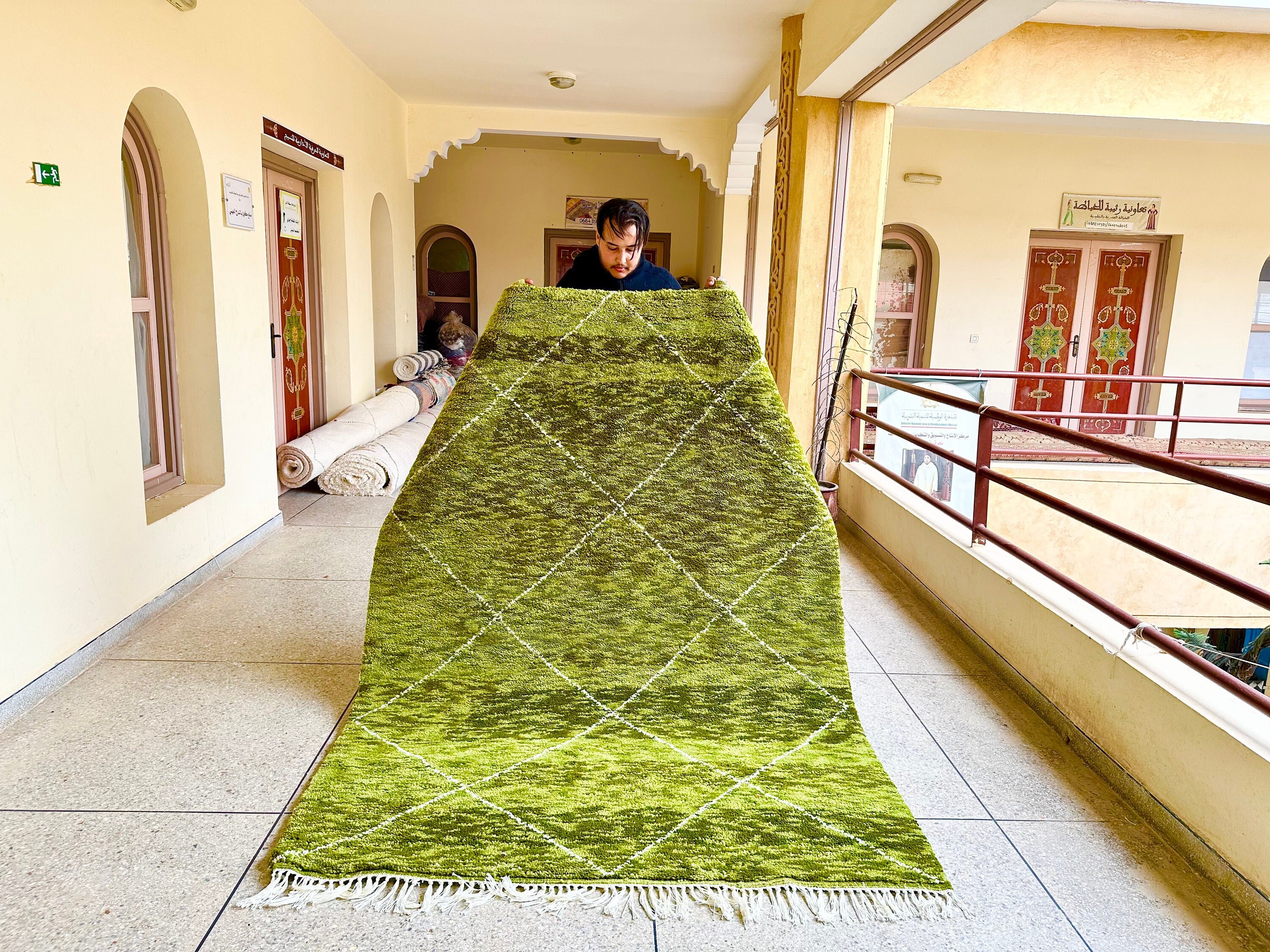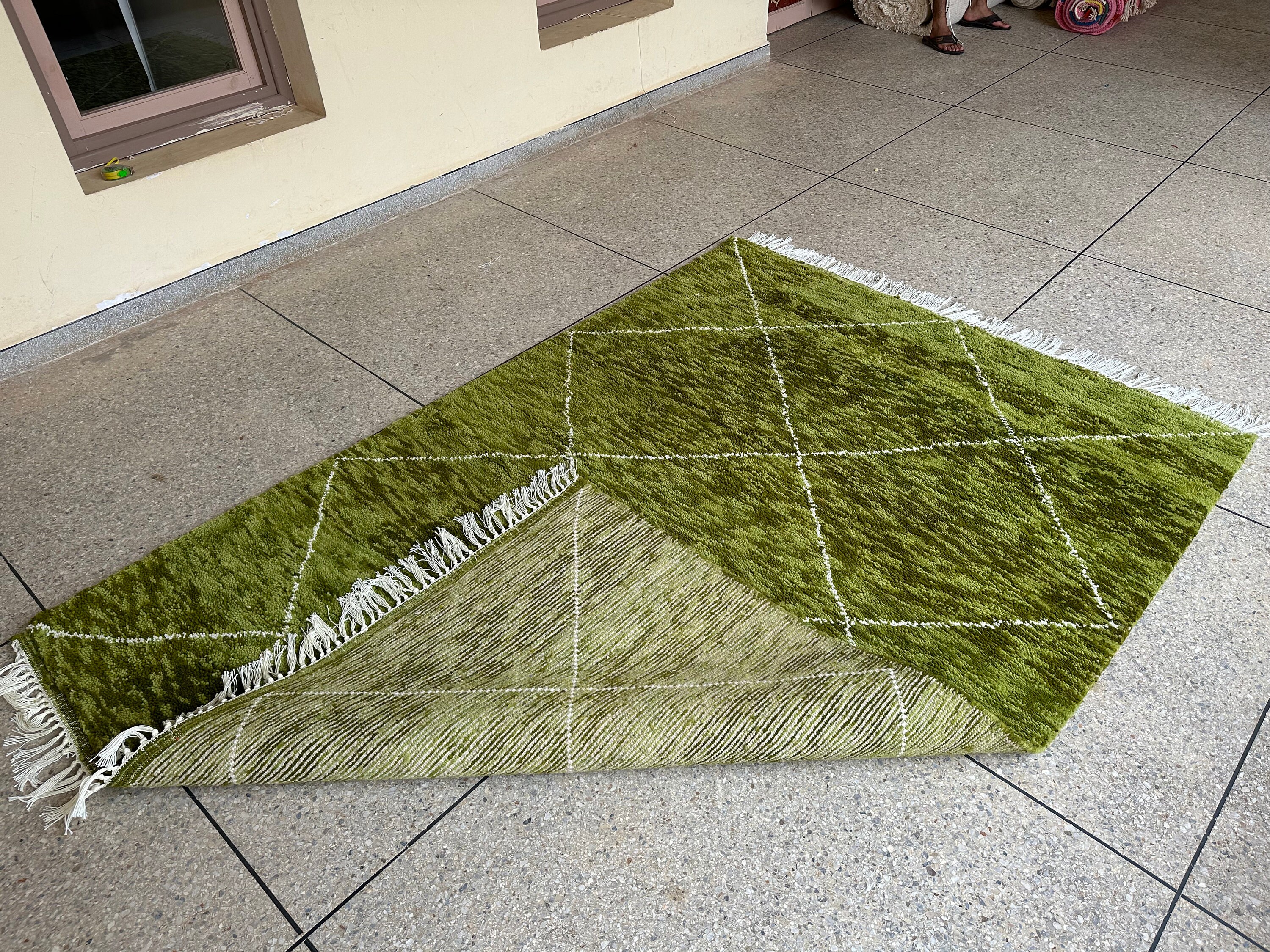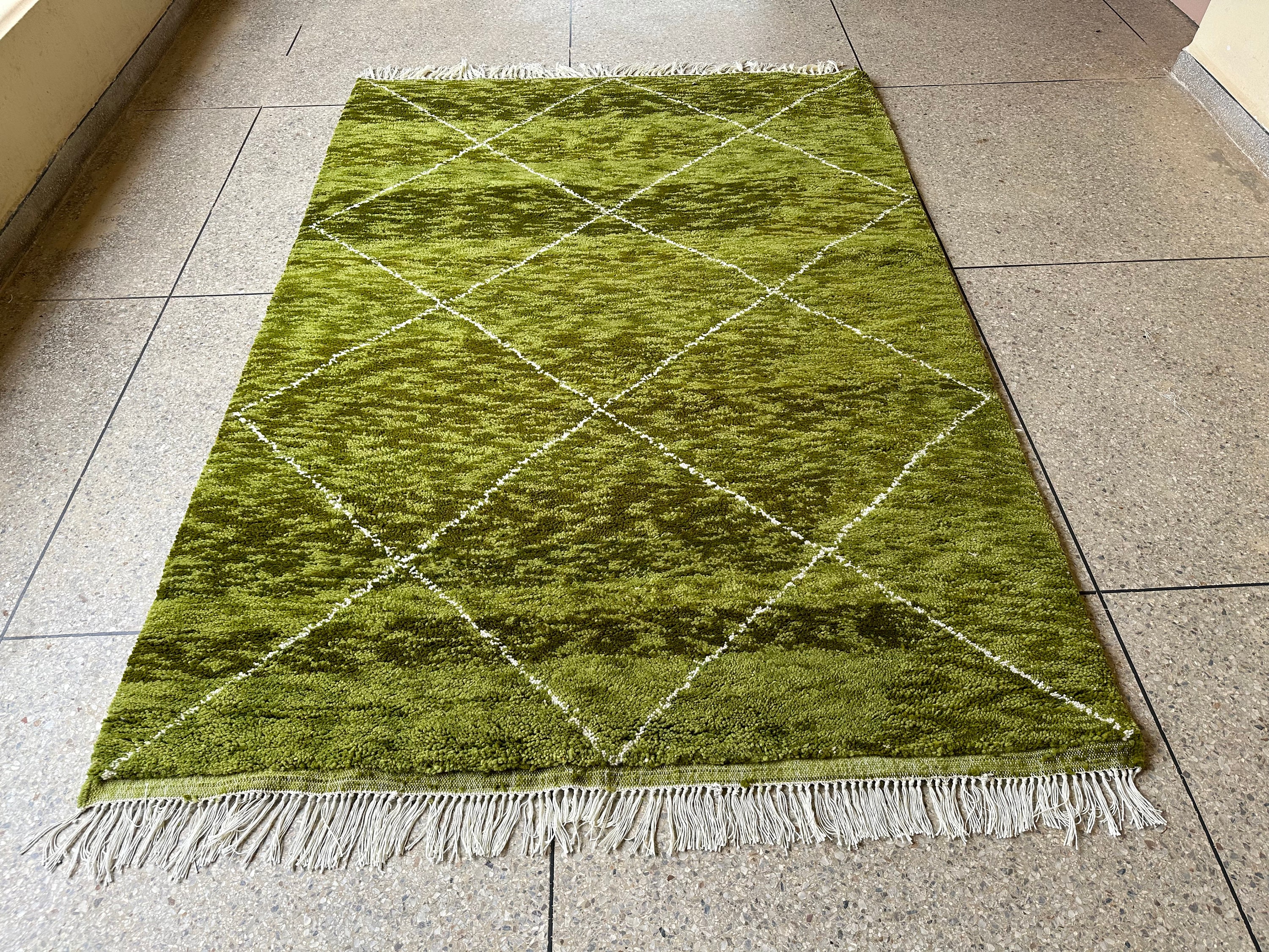 Transform your space with our stunning Geometric Moroccan Rug! This custom Beni Ourain rug features a captivating diamond shape design in lush green, perfect for adding a pop of color to your bohemian chic home decor. Handcrafted from soft wool, this area rug offers both comfort and style, making it an ideal choice for any room. Elevate your interior with this unique piece that blends tradition and modern aesthetics seamlessly. Perfect for living rooms, bedrooms, or as a statement piece in any decor!