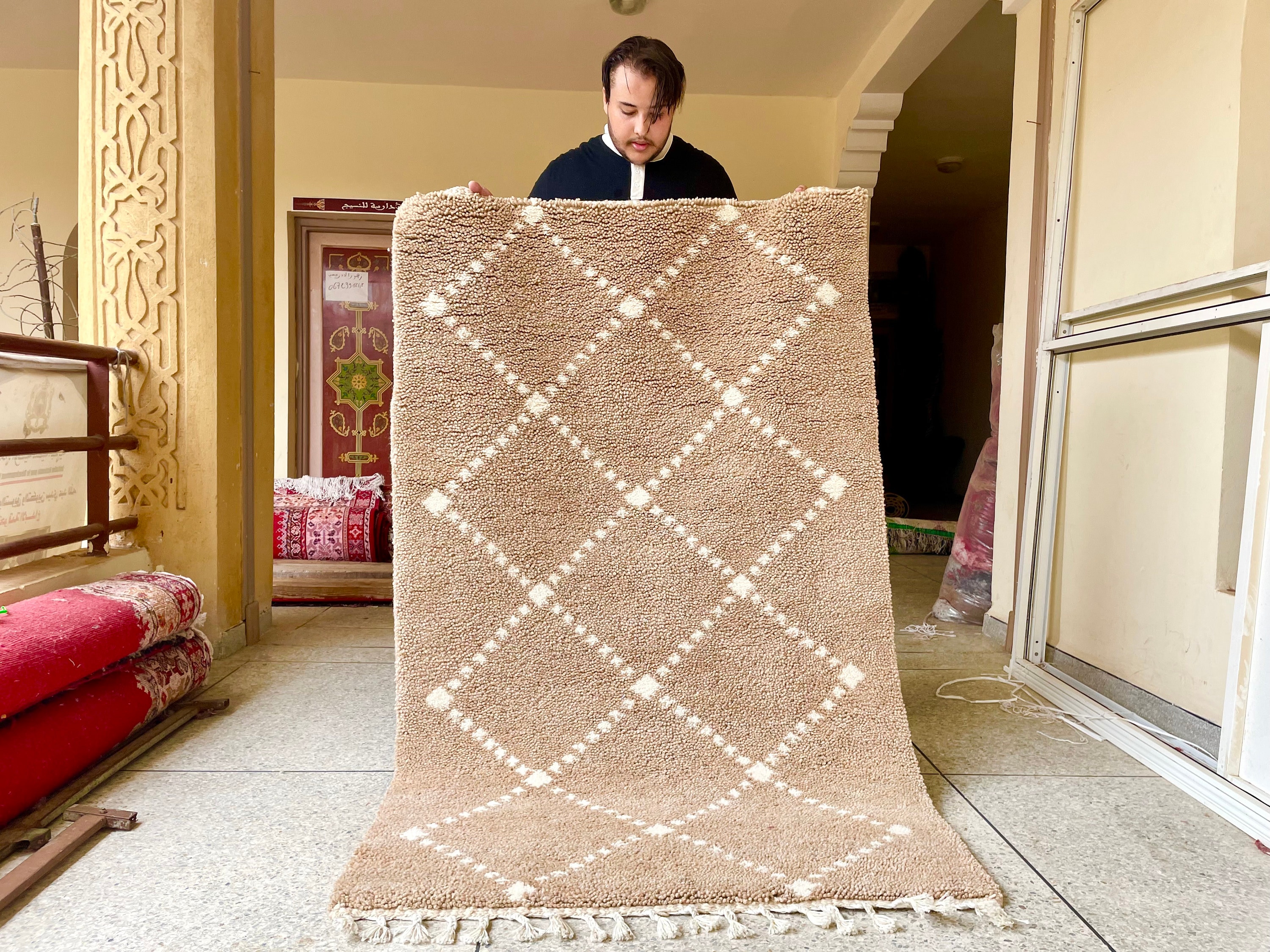 Experience the essence of Moroccan heritage with our 100% authentic Beni Ourain rugs, meticulously handcrafted by Berber artisans from the Atlas Mountains. Made from locally sourced, natural sheep wool, these rugs are both luxurious and eco-friendly, embodying a blend of comfort, elegance, and cultural richness. Their timeless designs and soft, plush texture make them an ideal choice for any home.